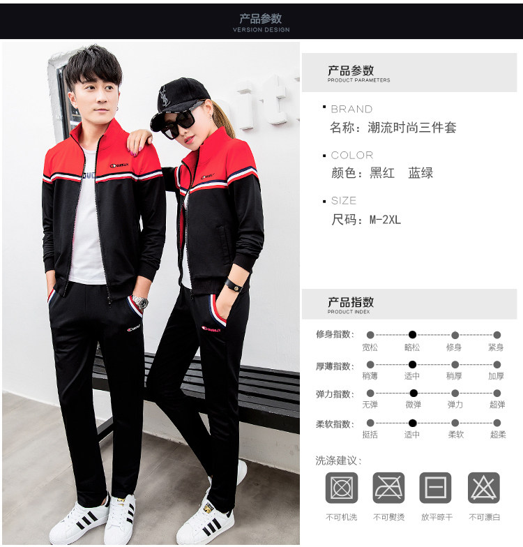 >> 實拍#三件套運動套裝女長袖衛衣外套情侶休閒運動服套裝新款