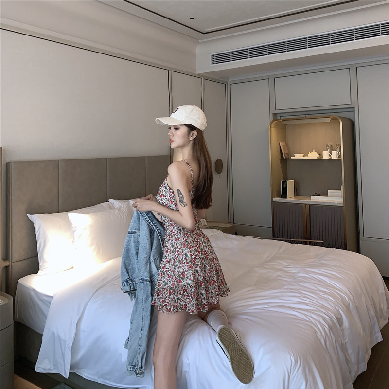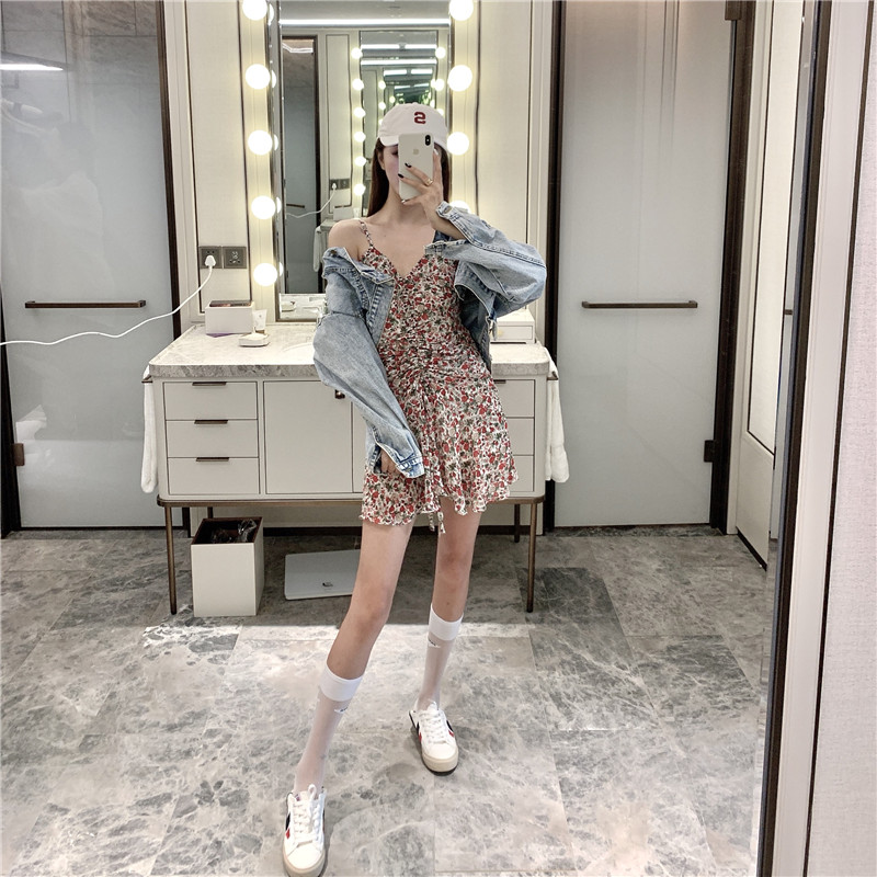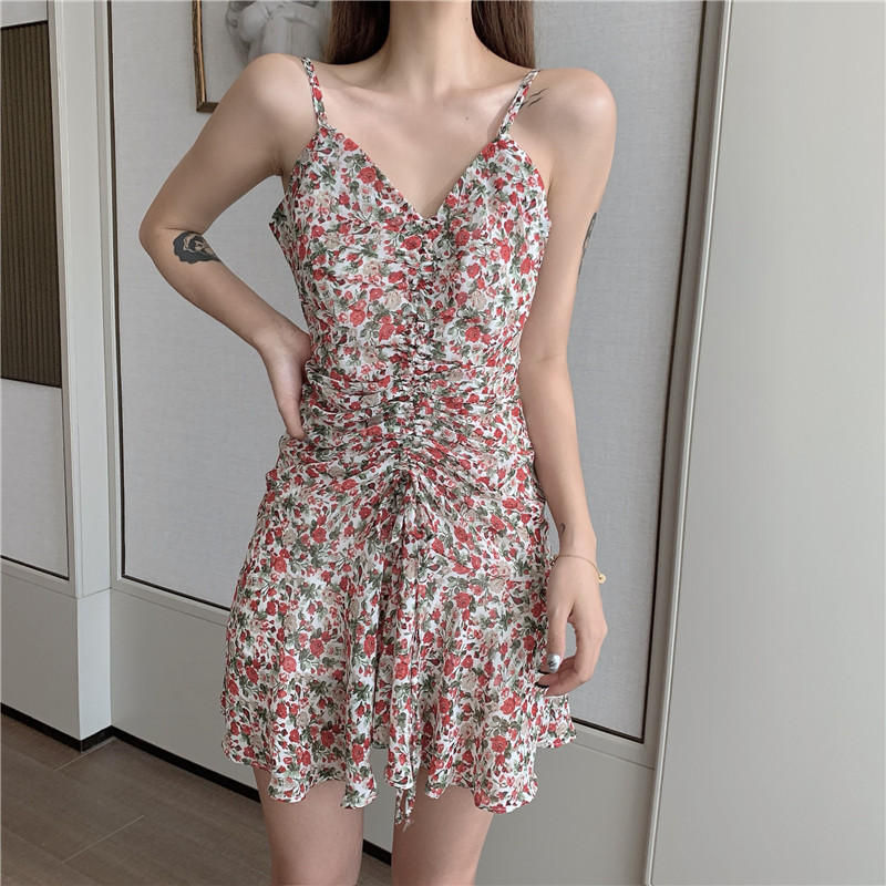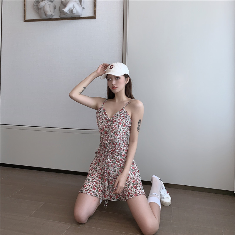 >> 實拍實價 抽繩褶皺V領吊帶連衣裙