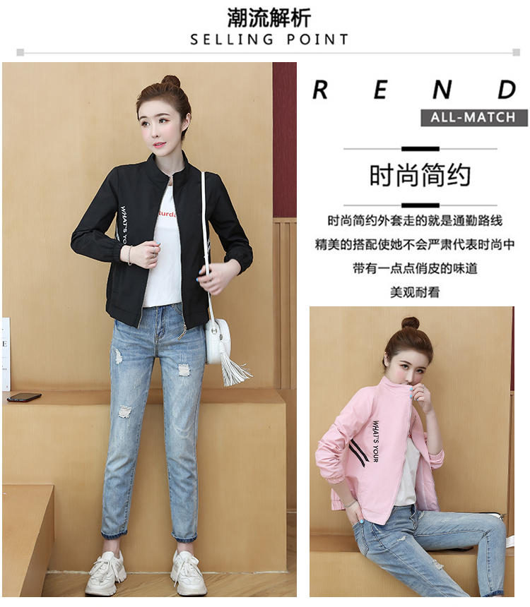 >> 短外套女2019新款春秋裝韓版刺繡字母夾克休閒百搭棒球服上衣女
