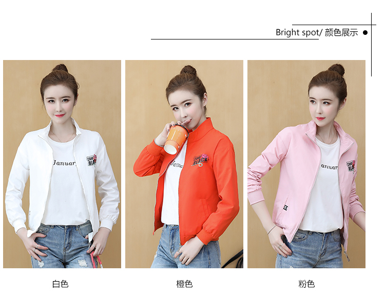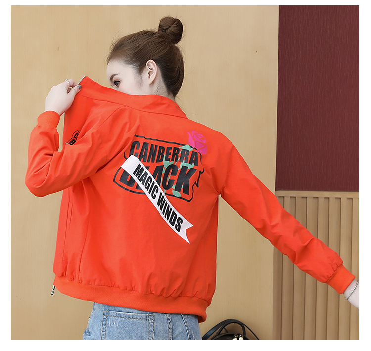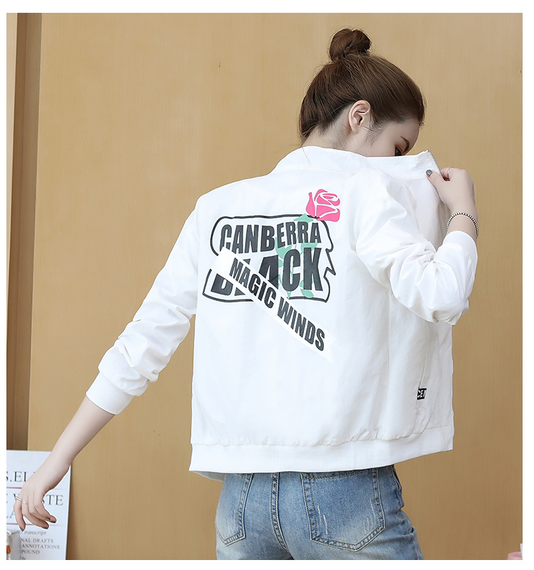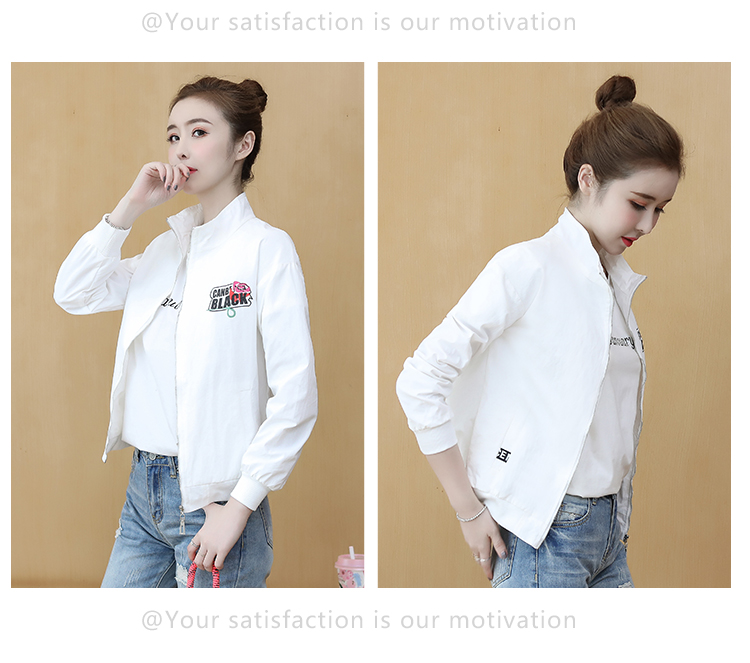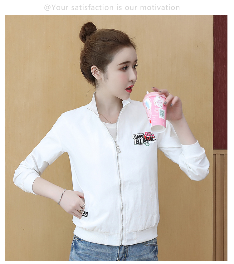 >> 實拍2019秋裝新款印花立領女裝時髦休閒女韓版學生開衫拉鏈短外套