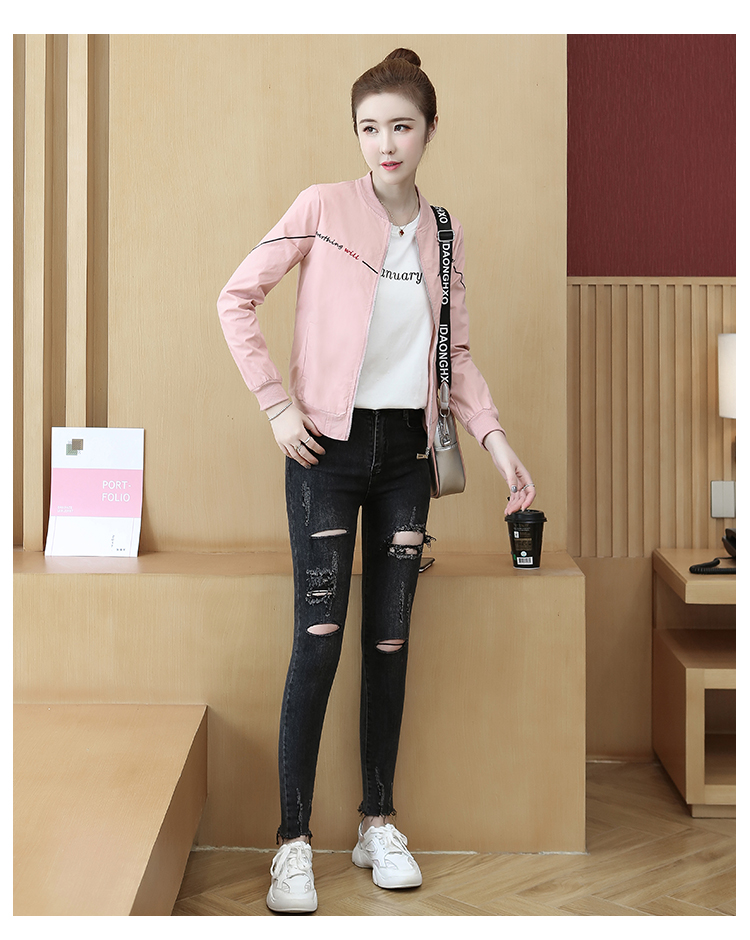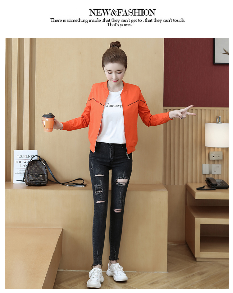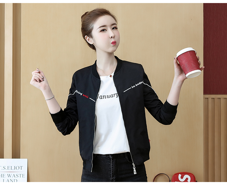>> 2019秋裝新款女裝刺繡時髦休閒女韓版學生開衫拉鏈短款外套女