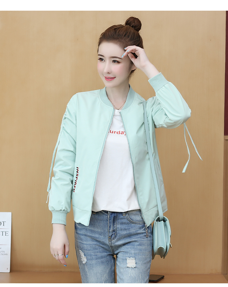 >> 实拍2019秋装新款韩版百搭刺绣短外套女时尚棒球服夹克女潮