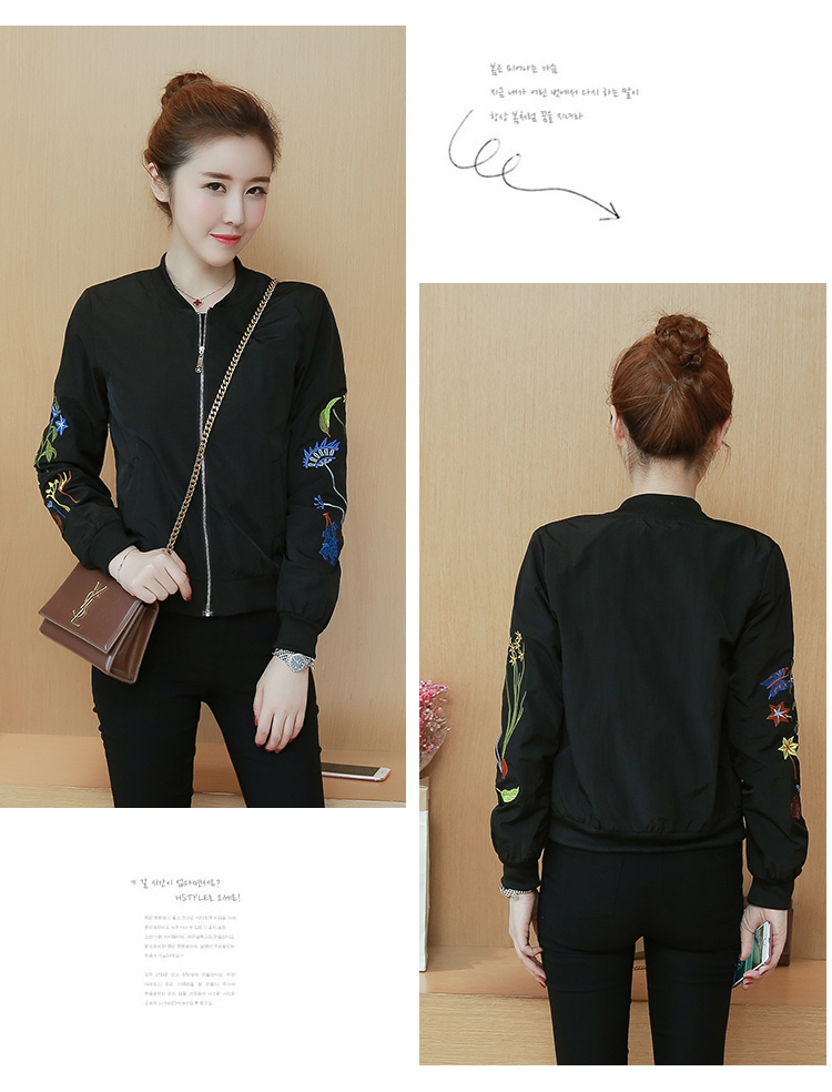 >> 實拍2019秋裝新款韓版百搭刺繡短外套女時尚棒球服女潮