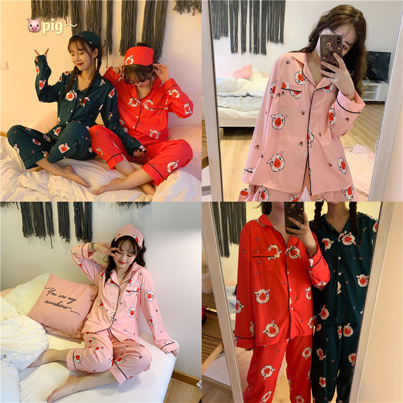 >> 實拍實價卡通幸運福豬印花睡衣家居服套裝