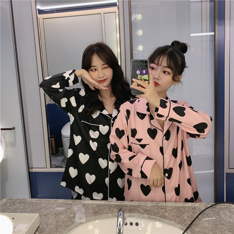 >> 實拍實價韓版長袖寬鬆休閒印花睡衣家居服送眼罩