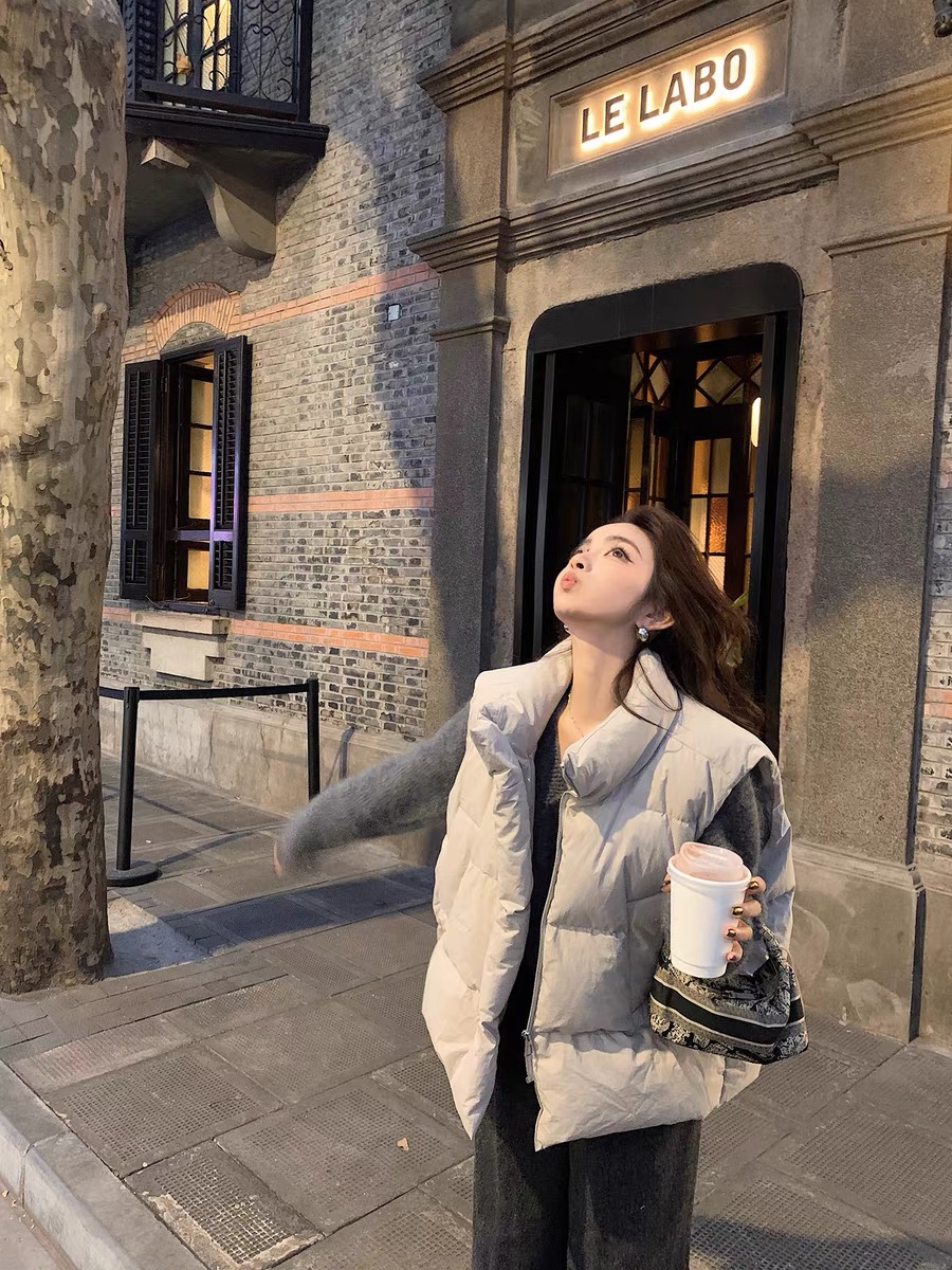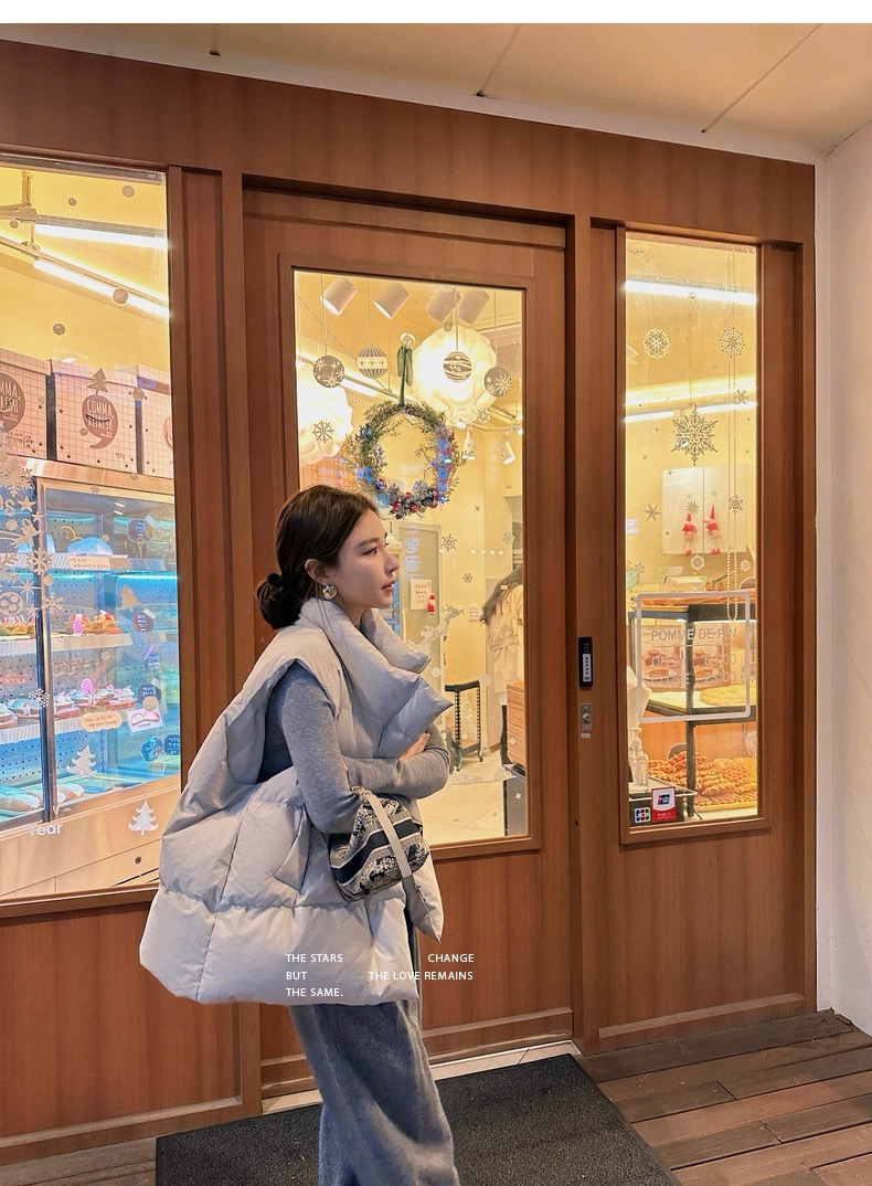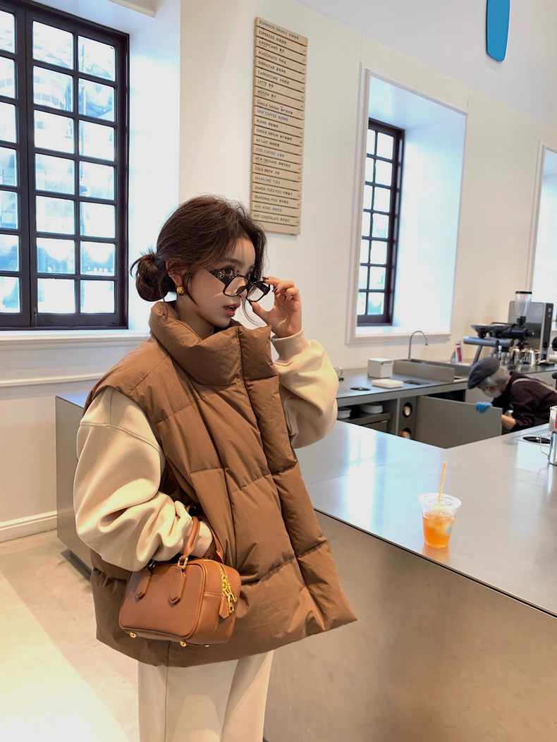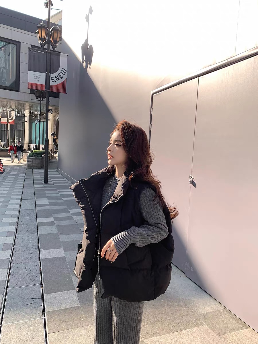 >> Lilylikes 羽絨棉服小歐包新款韓版寬松立領水洗精梳棉馬甲外套女