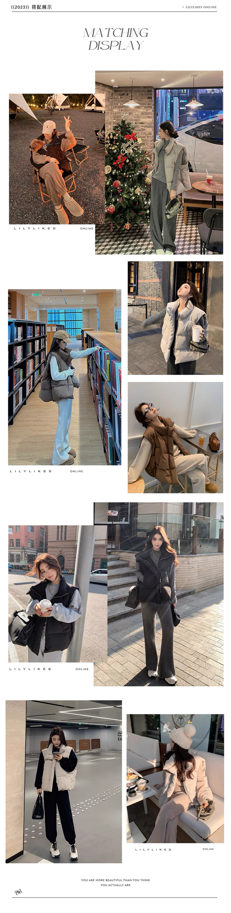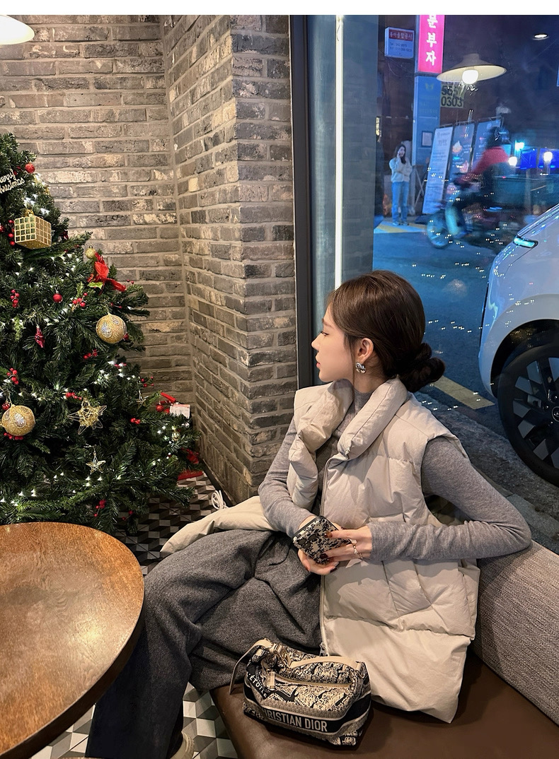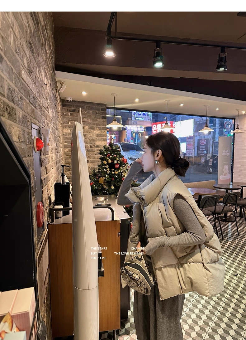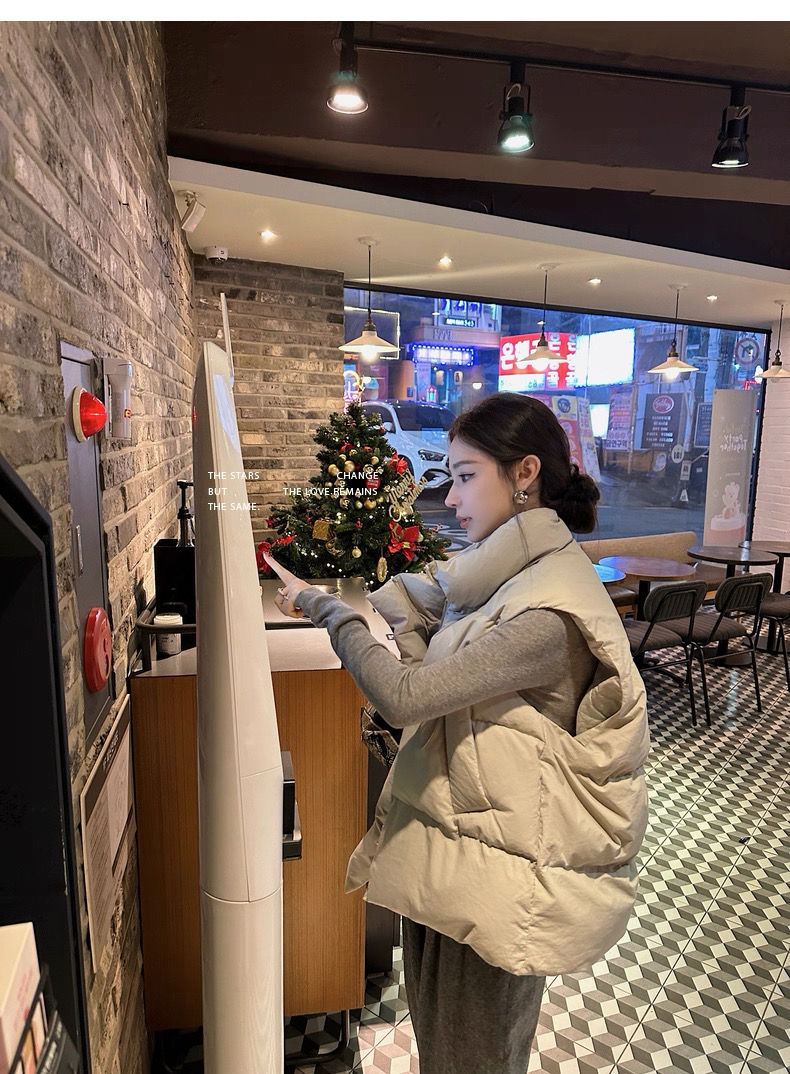 >> Lilylikes 羽絨棉服小歐包新款韓版寬松立領水洗精梳棉馬甲外套女