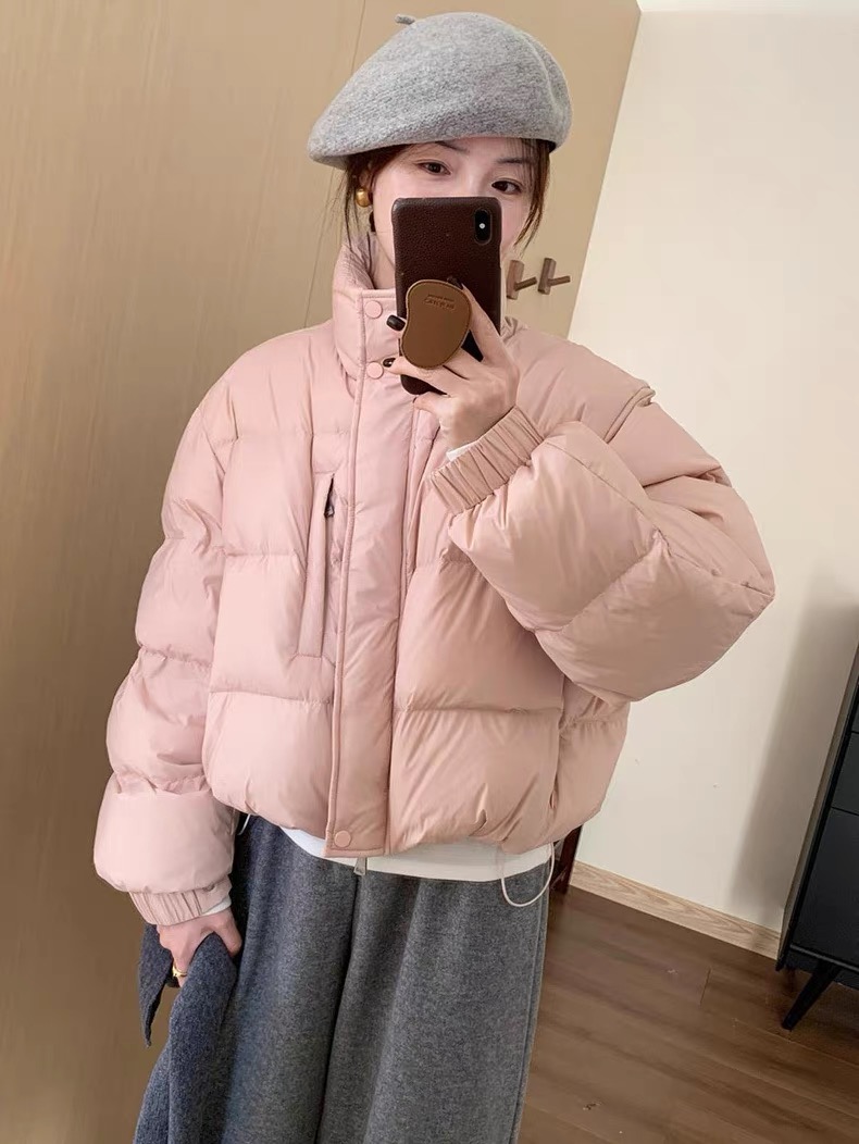 >> 韓系立領拉鏈羽絨棉服2025冬新加厚寬松包暖面包服小個子外套
