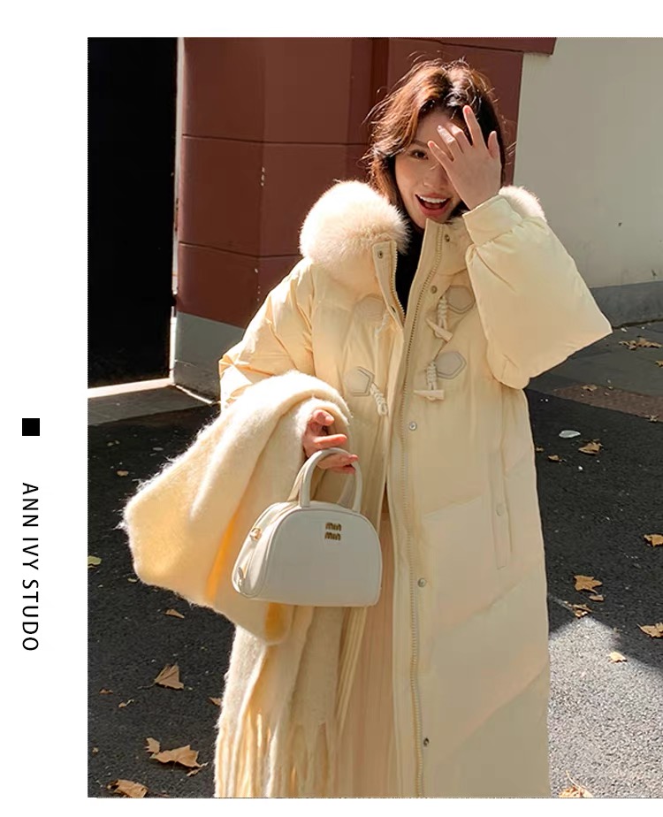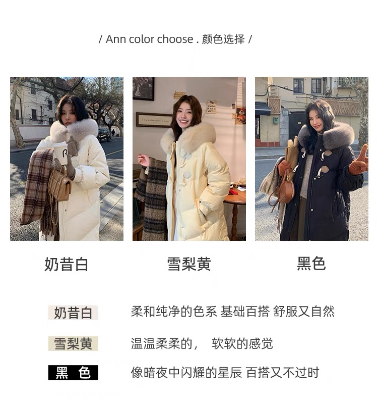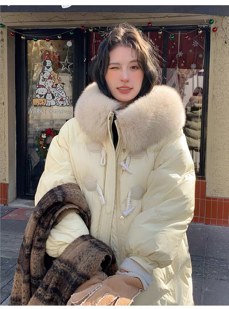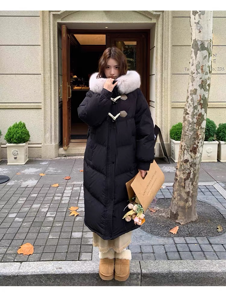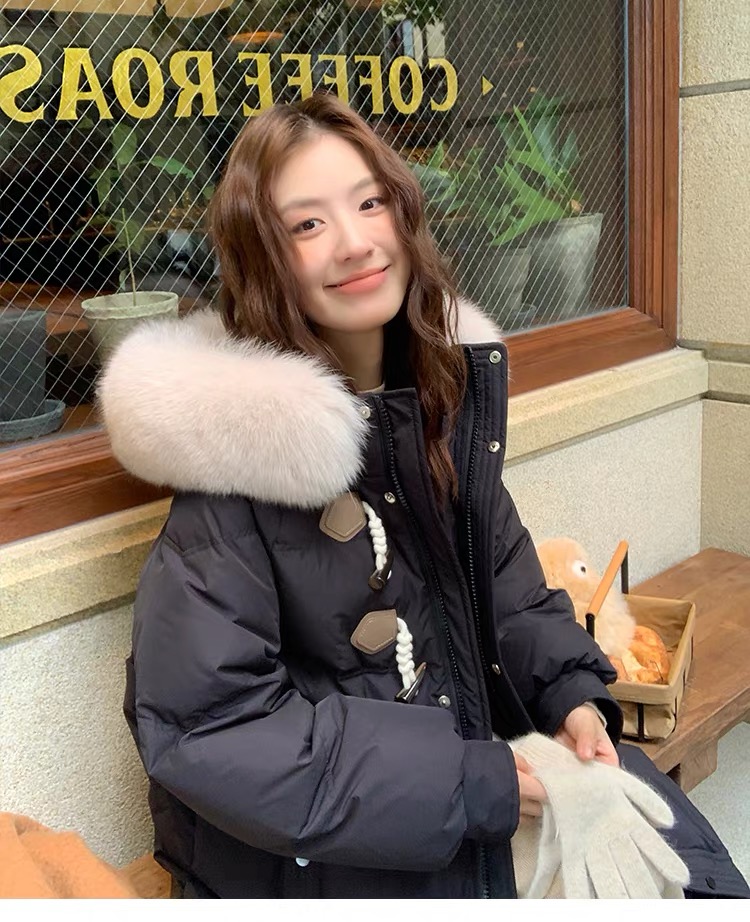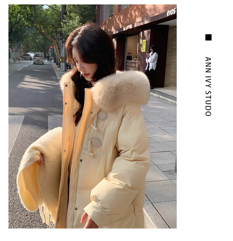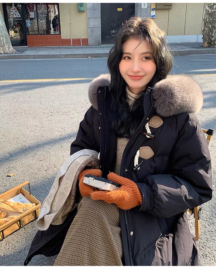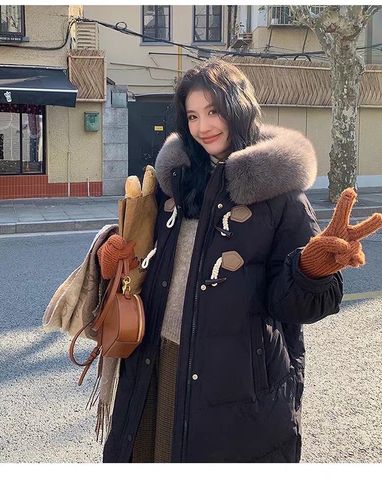 >> 韓版羽絨棉服女冬季2025新款中長款牛角扣設計感大毛領加厚棉襖女