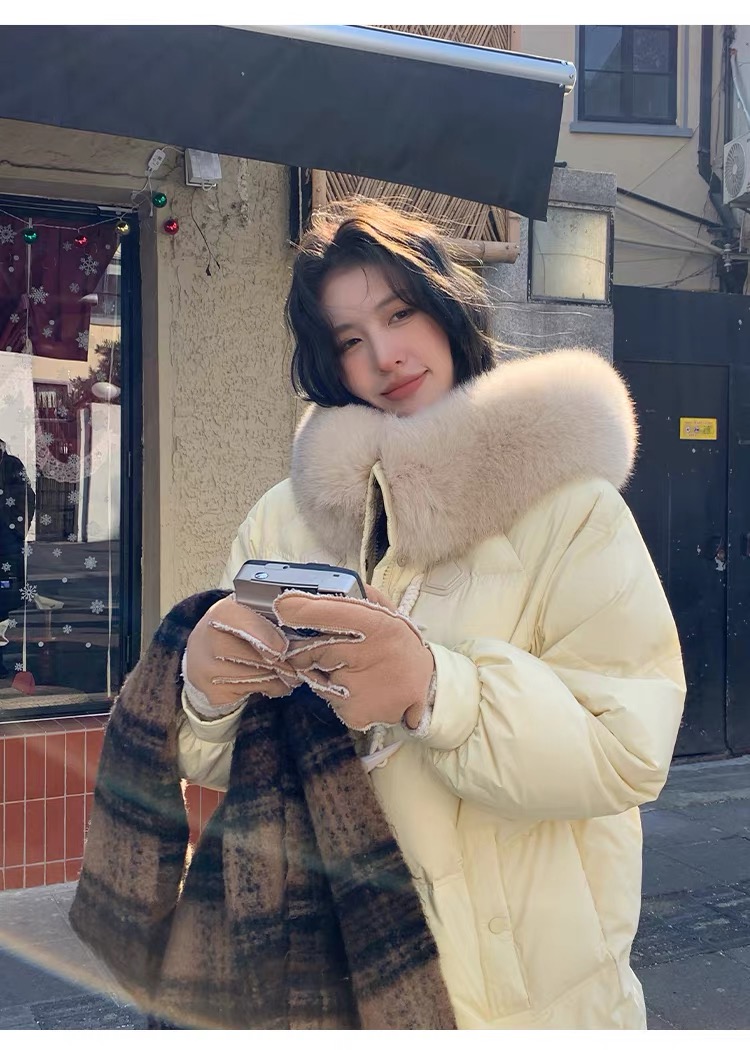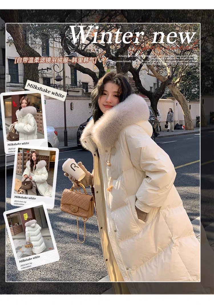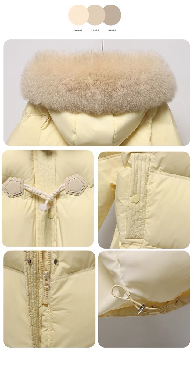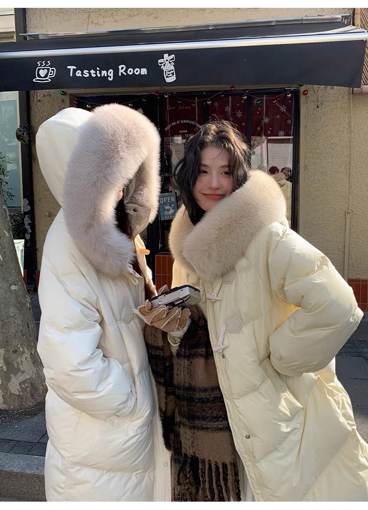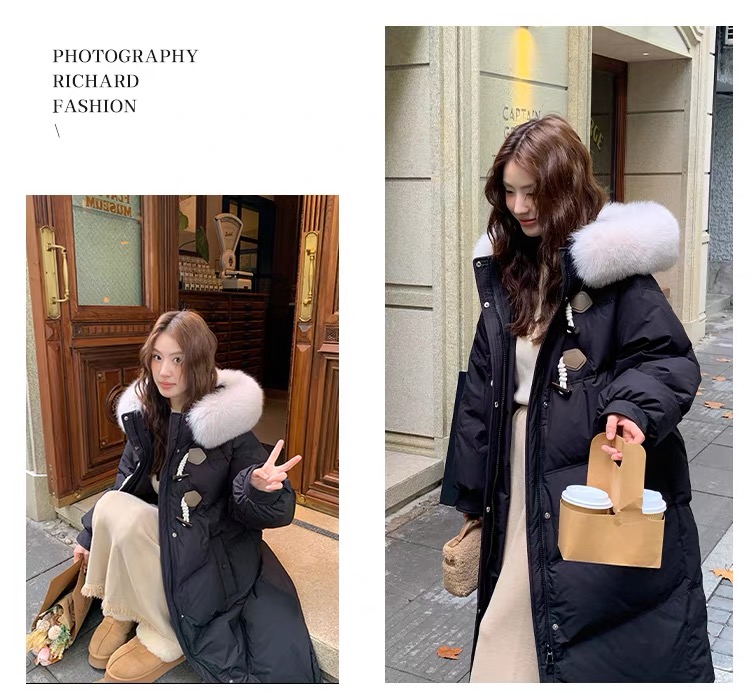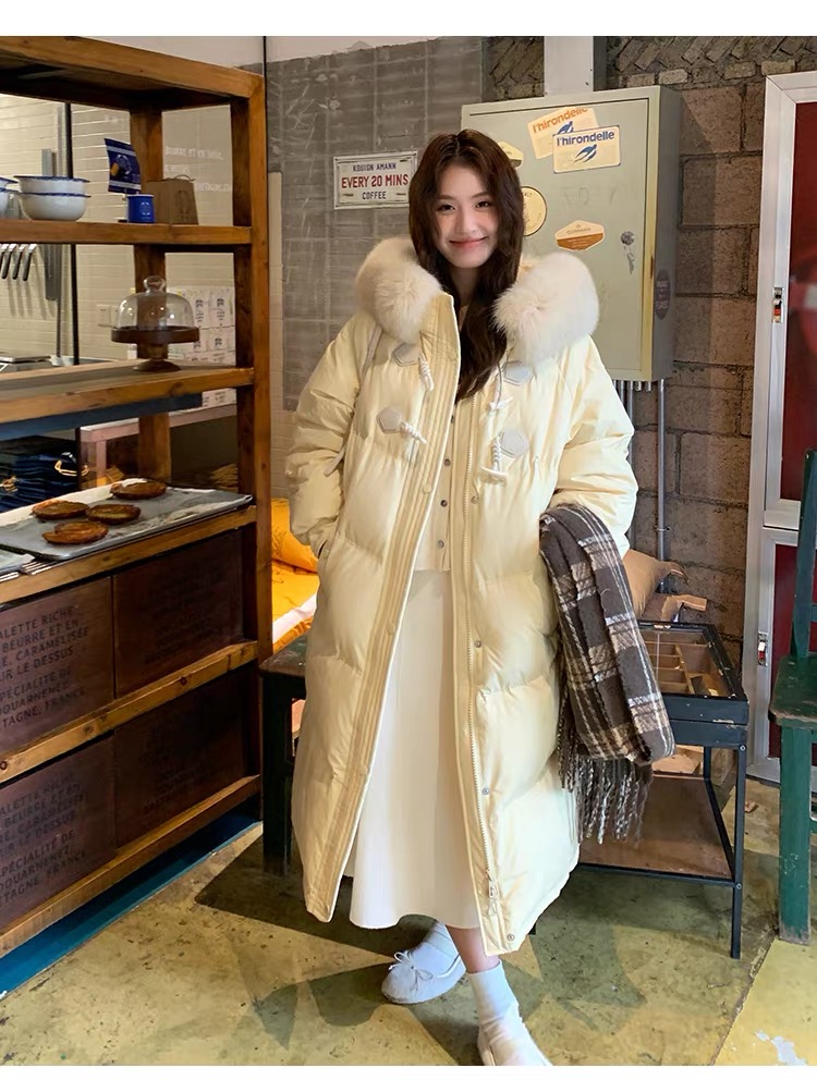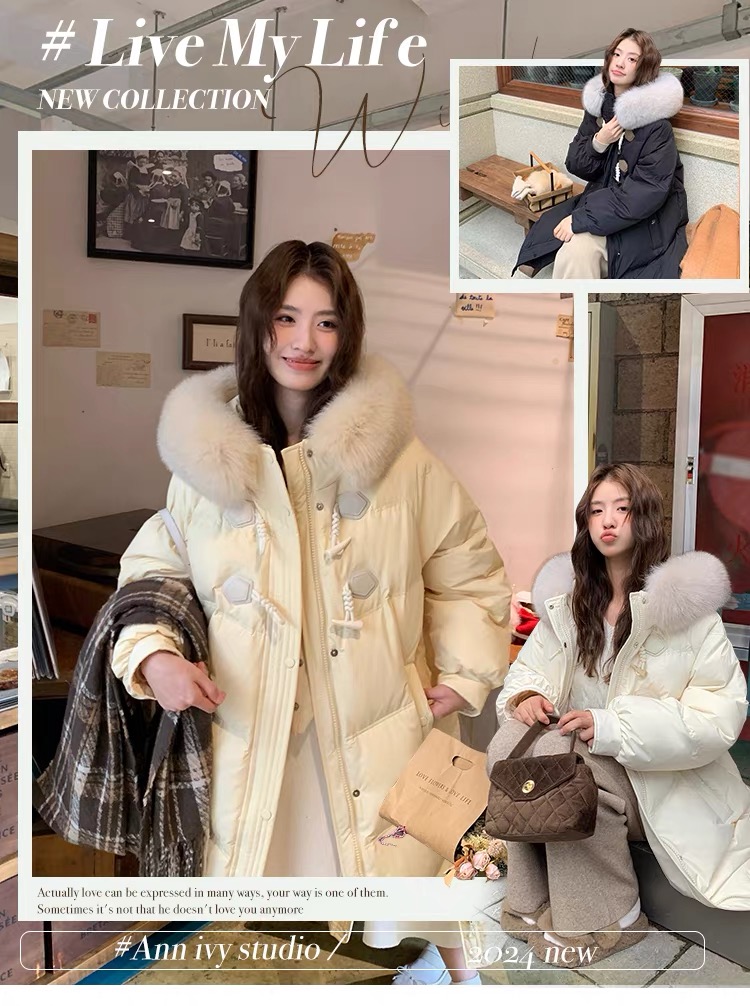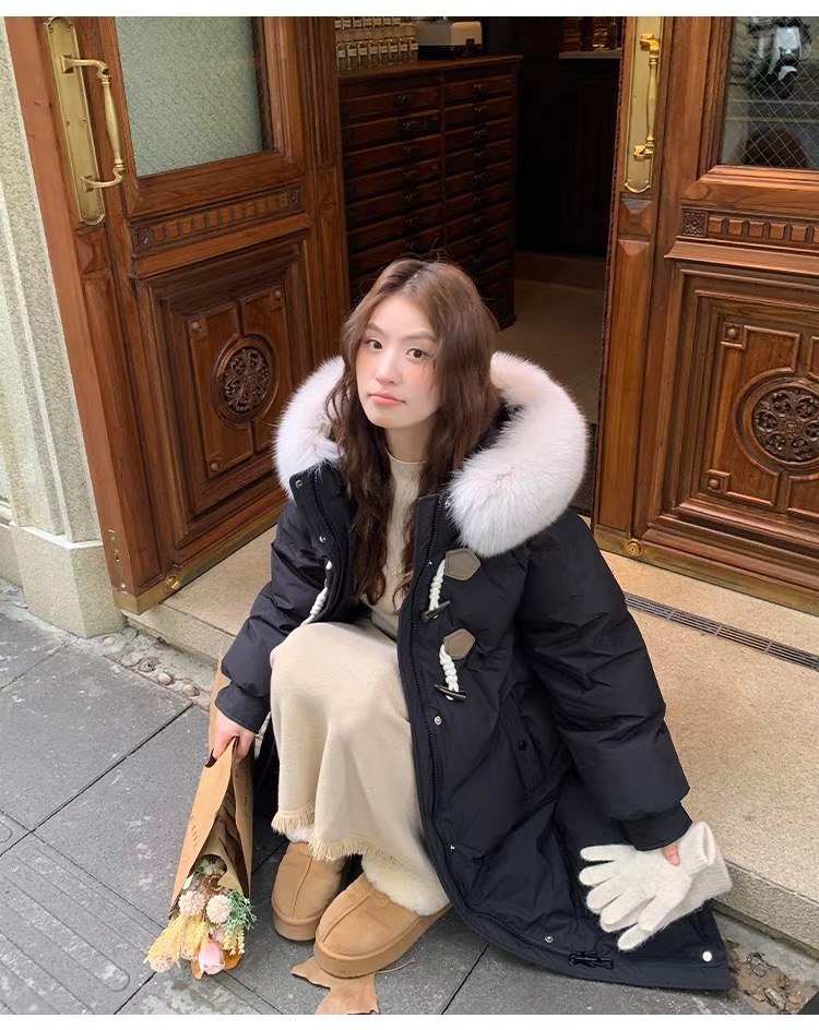 >> 韓版羽絨棉服女冬季2025新款中長款牛角扣設計感大毛領加厚棉襖女