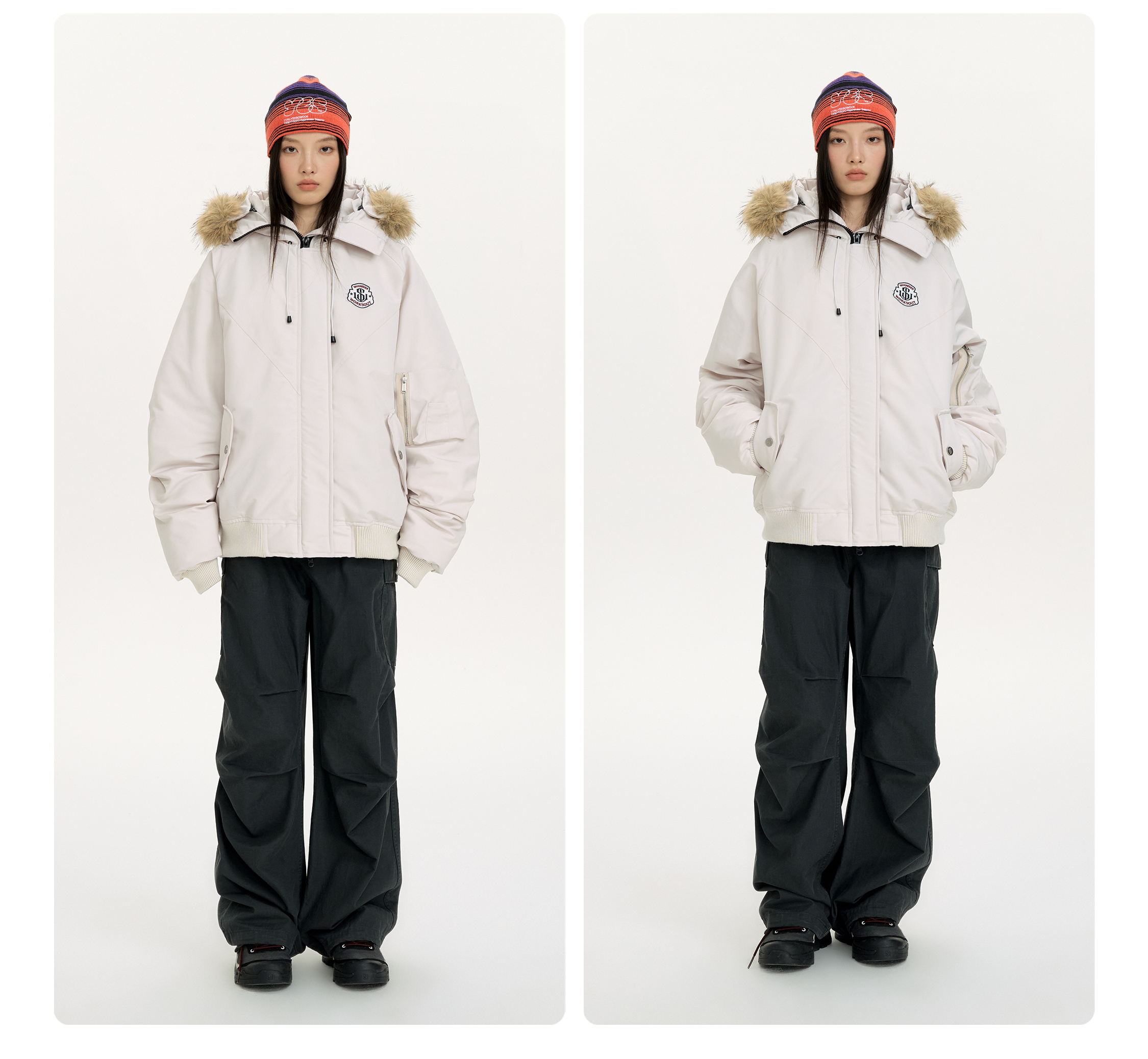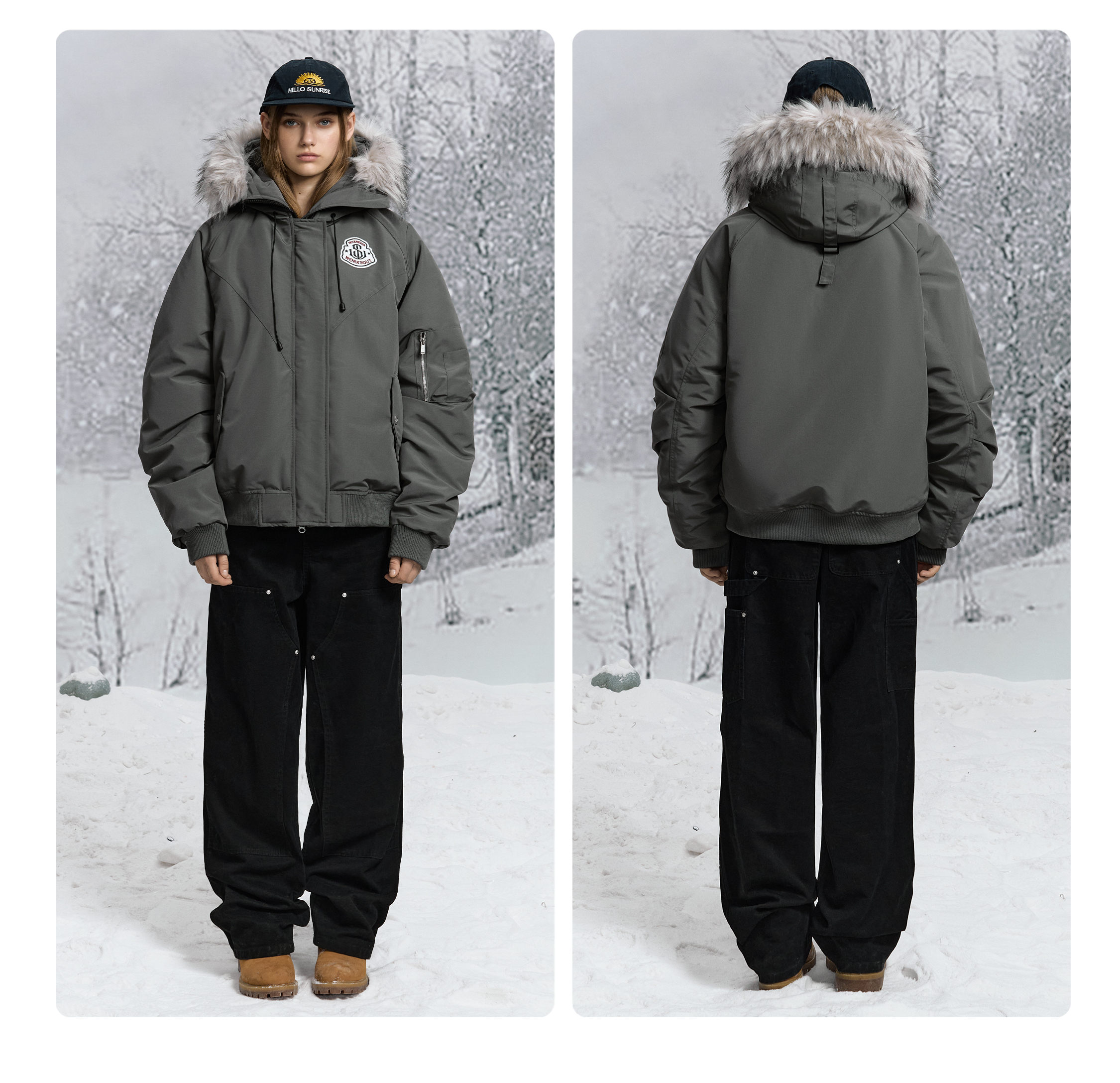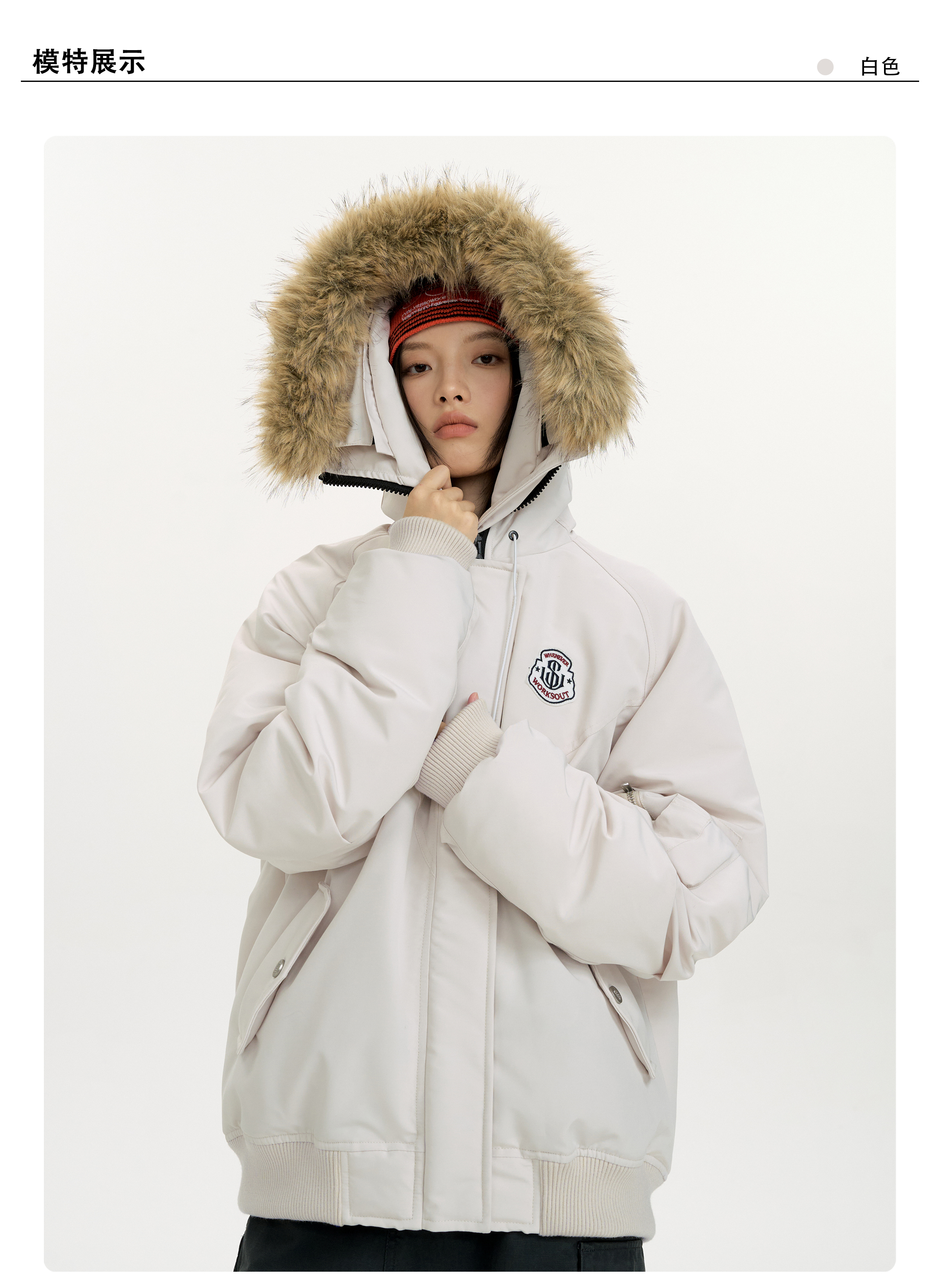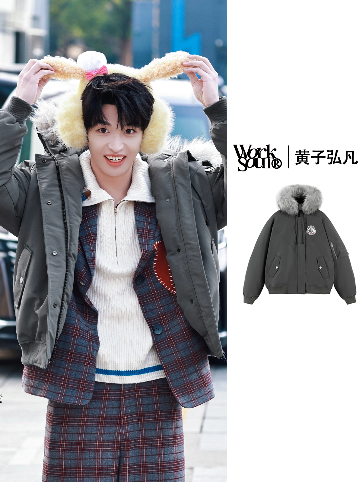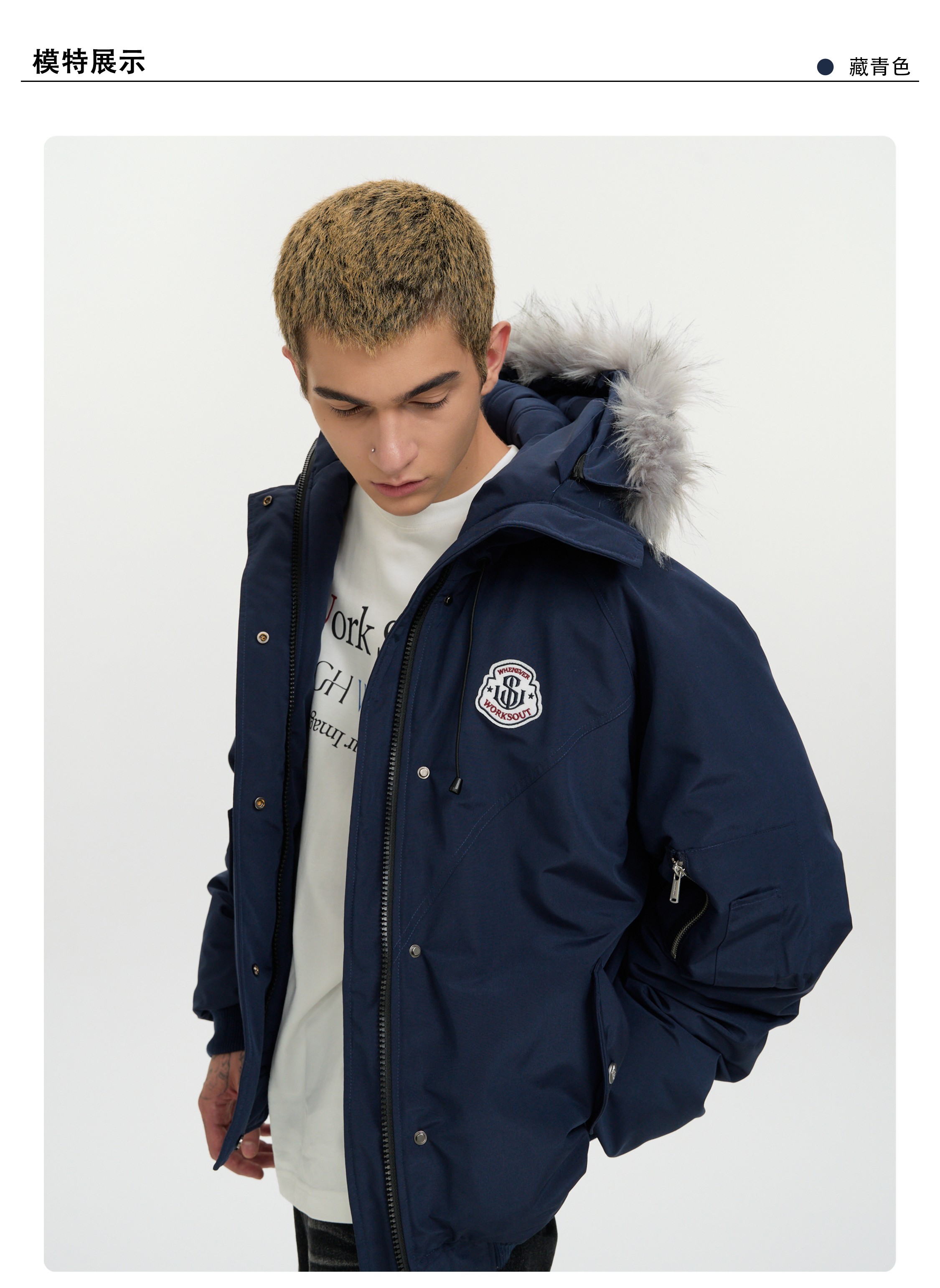 >> 黃子弘凡同款NICEBAD原WORKSOUT連帽毛領派克羽絨棉服復古保暖
