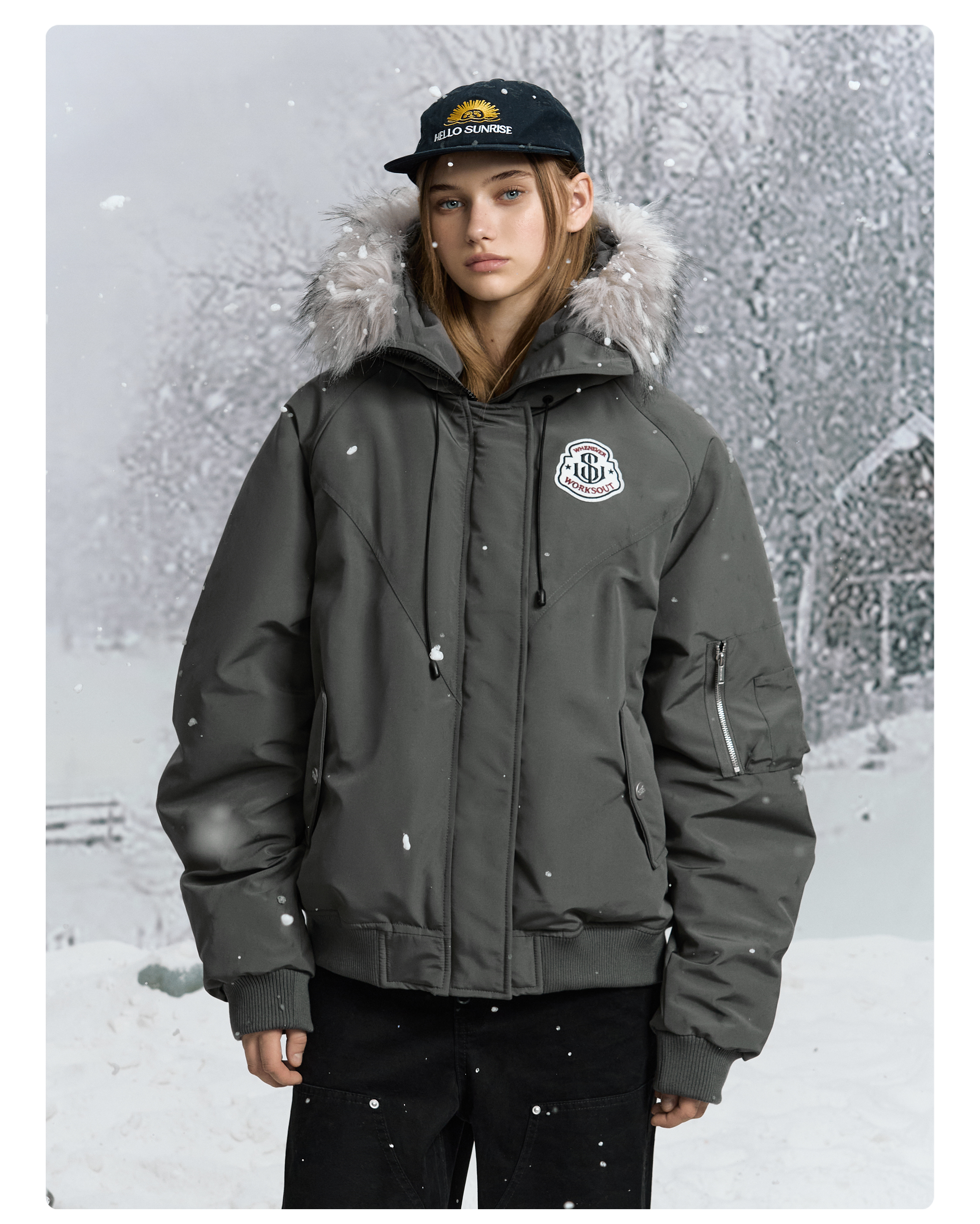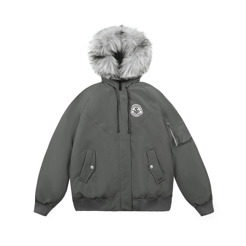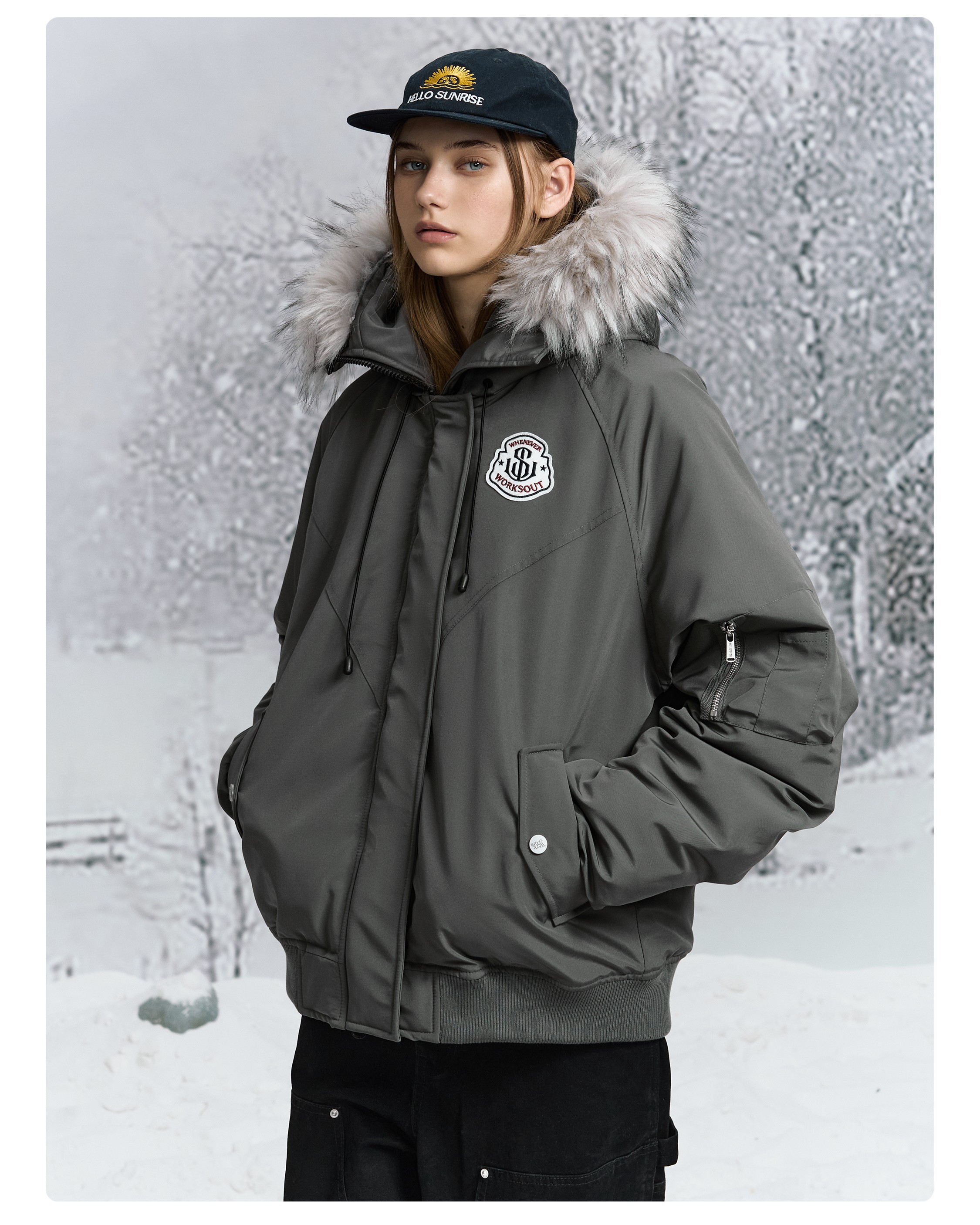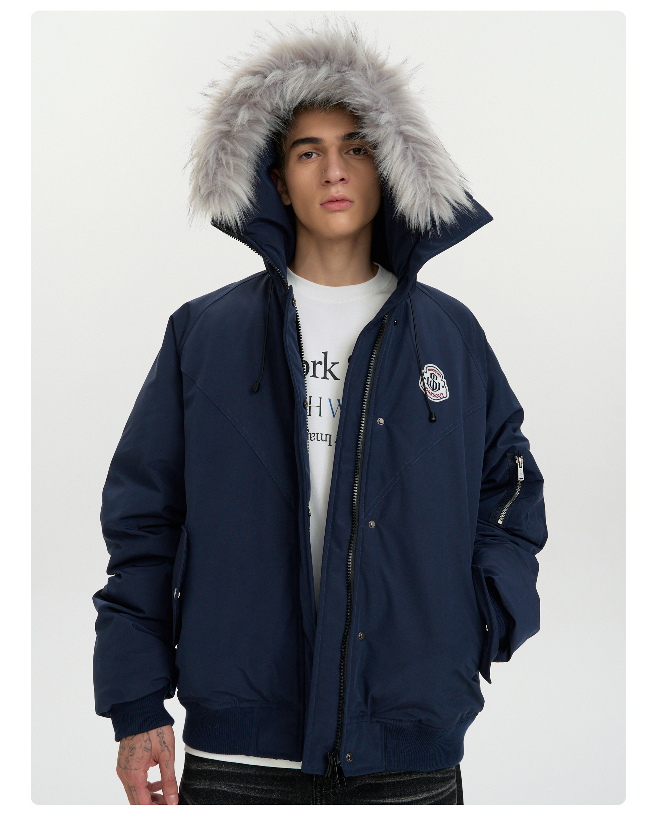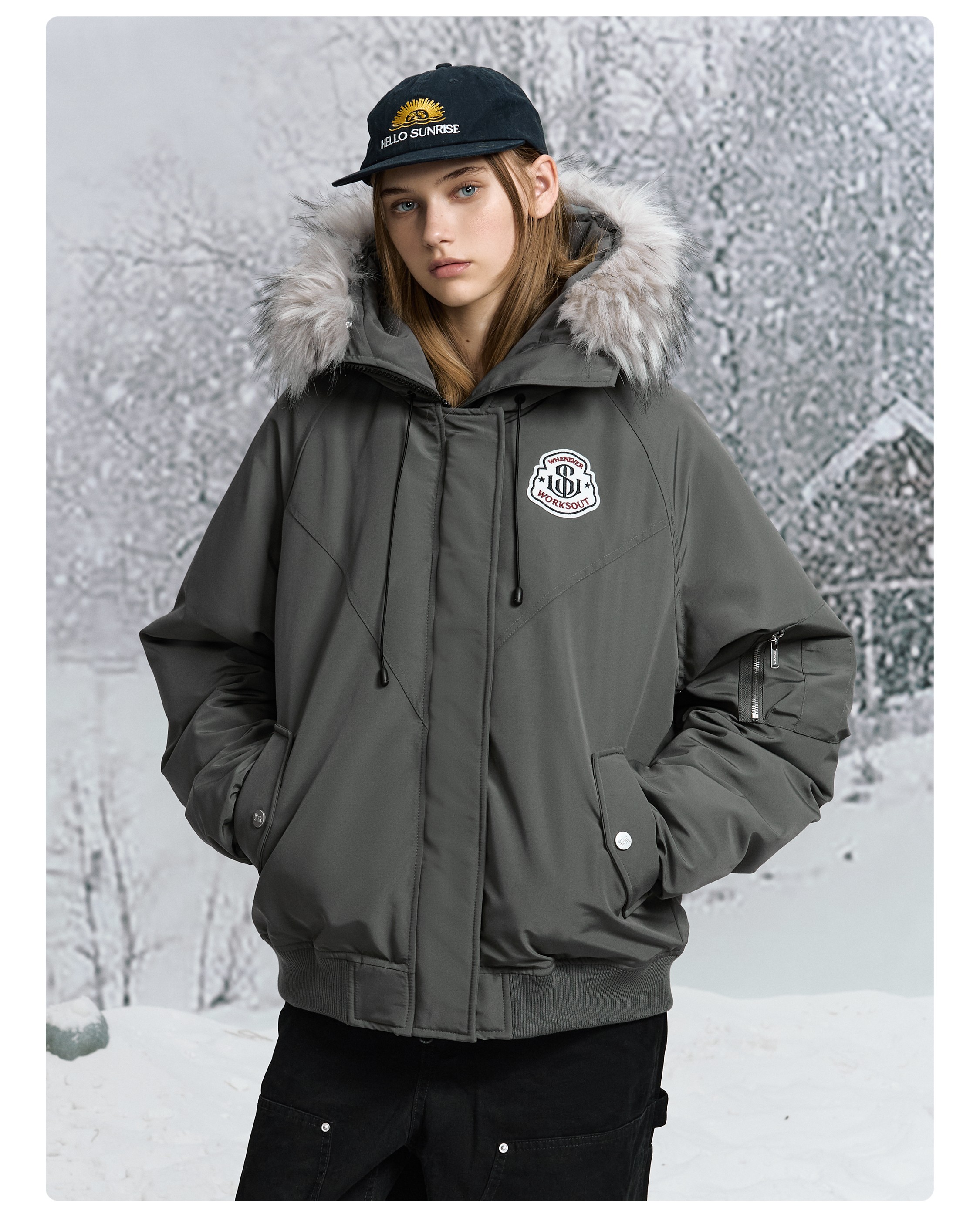 >> 黃子弘凡同款NICEBAD原WORKSOUT連帽毛領派克羽絨棉服復古保暖