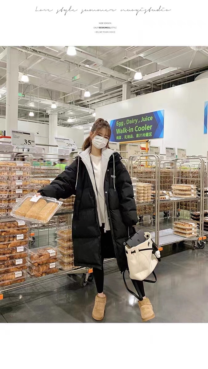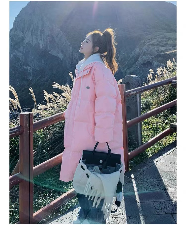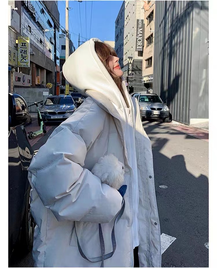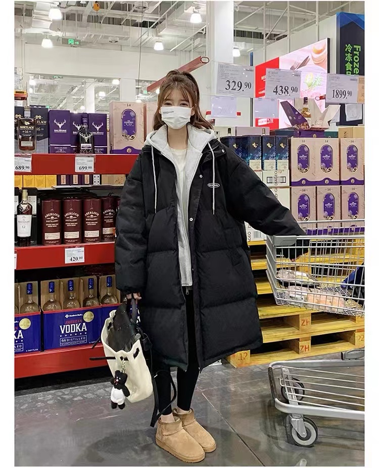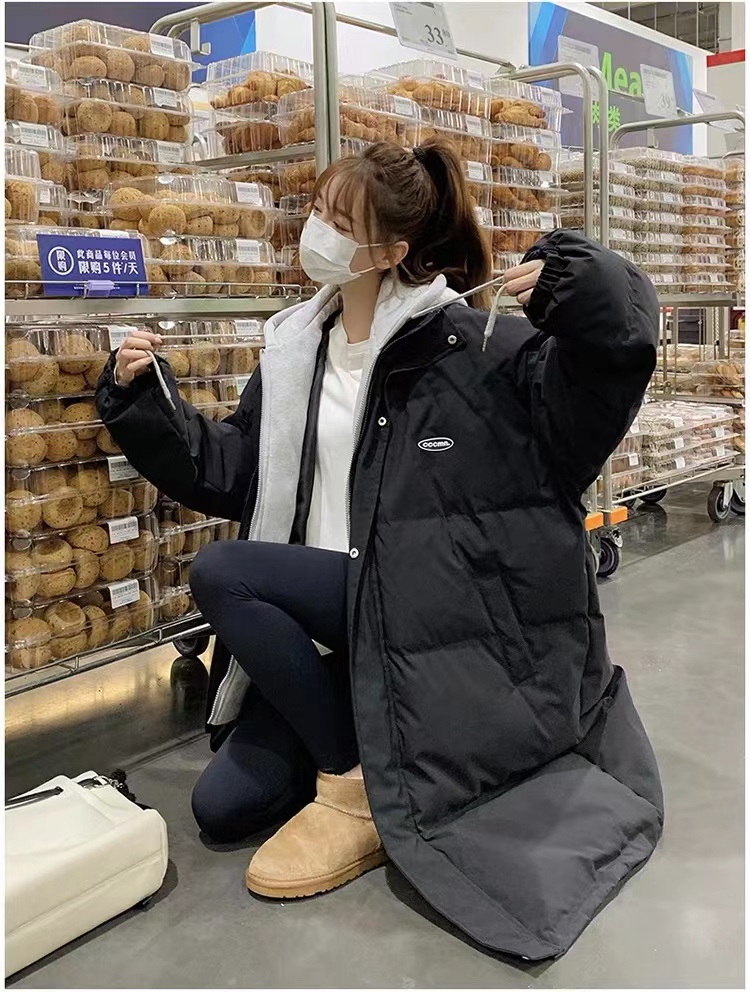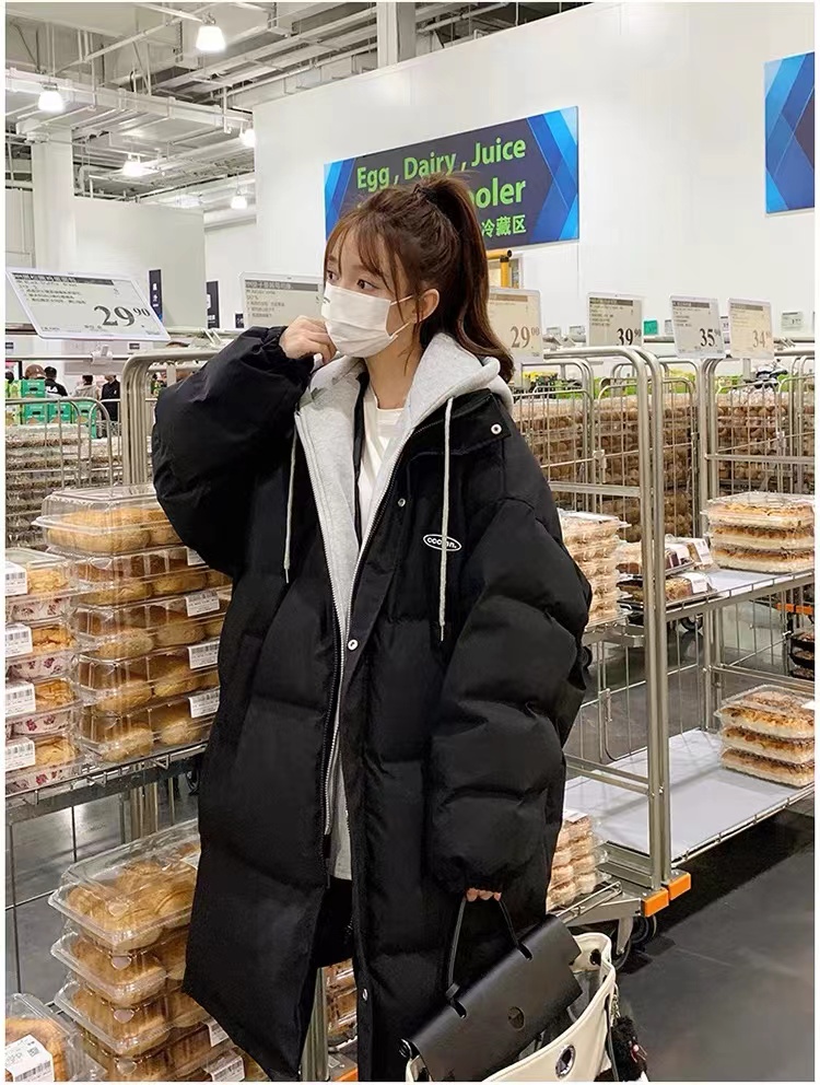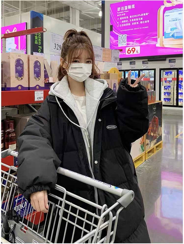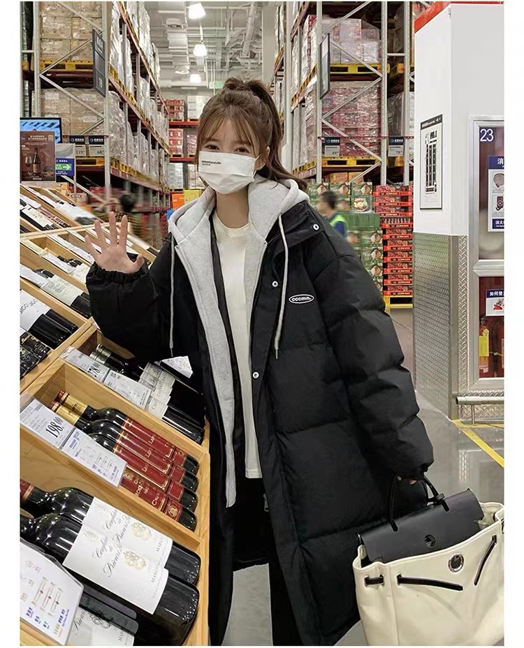 >> 2025學院風假兩件連帽中長款羽絨棉服女加厚冬季新款面包服棉襖潮