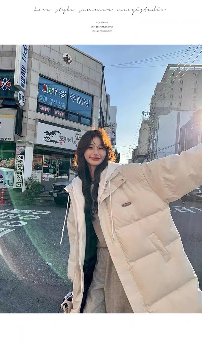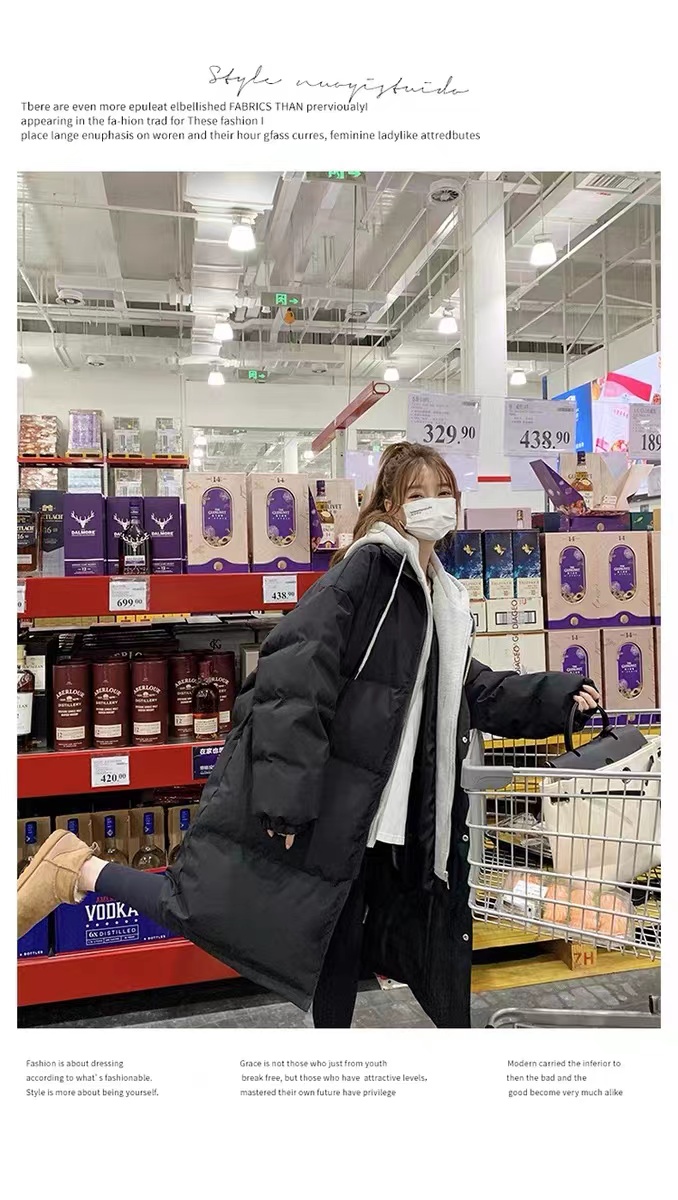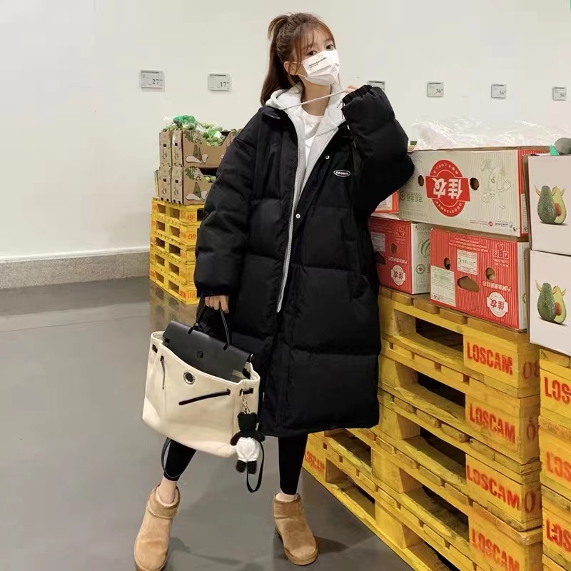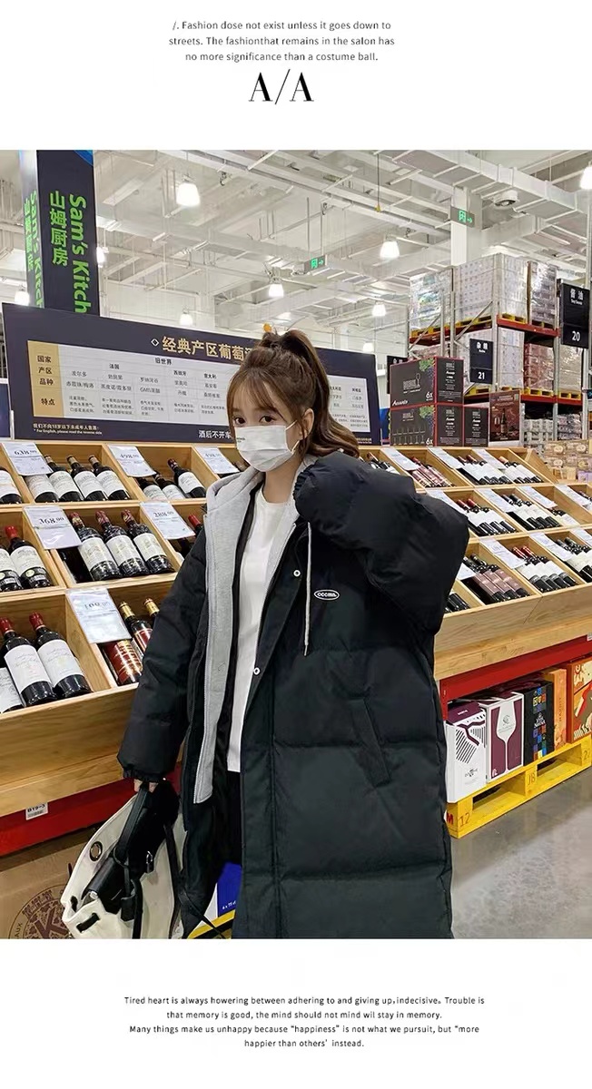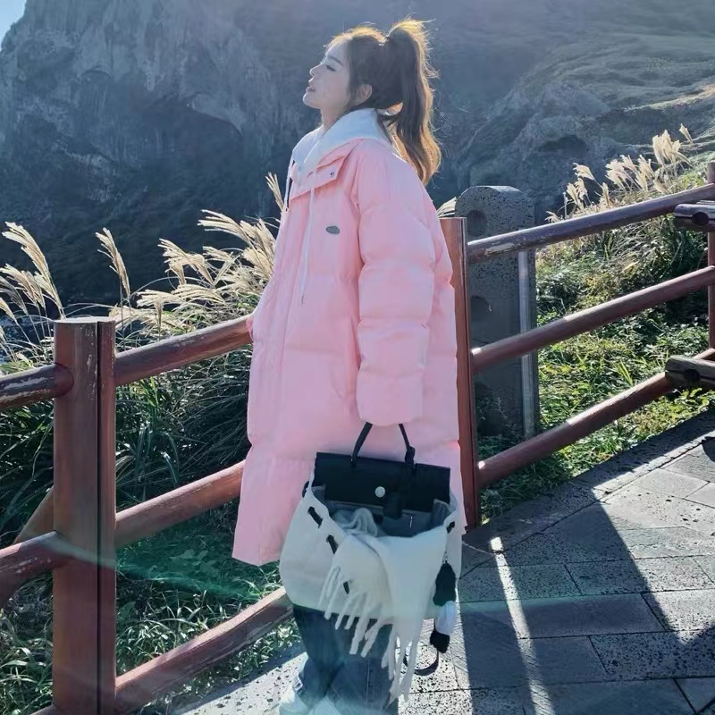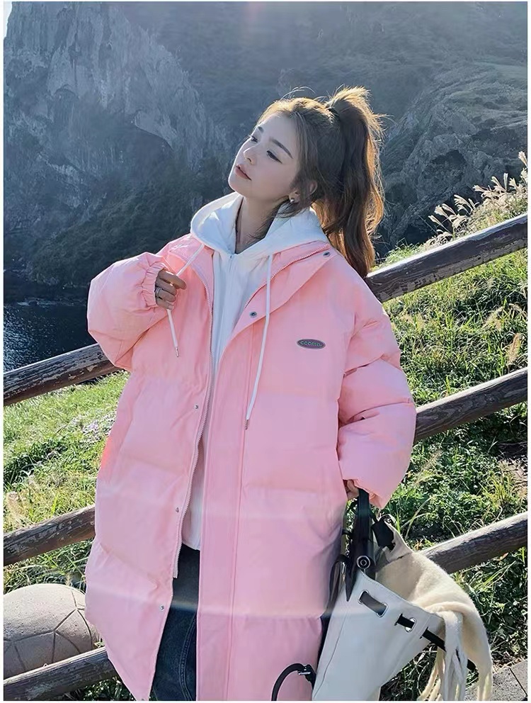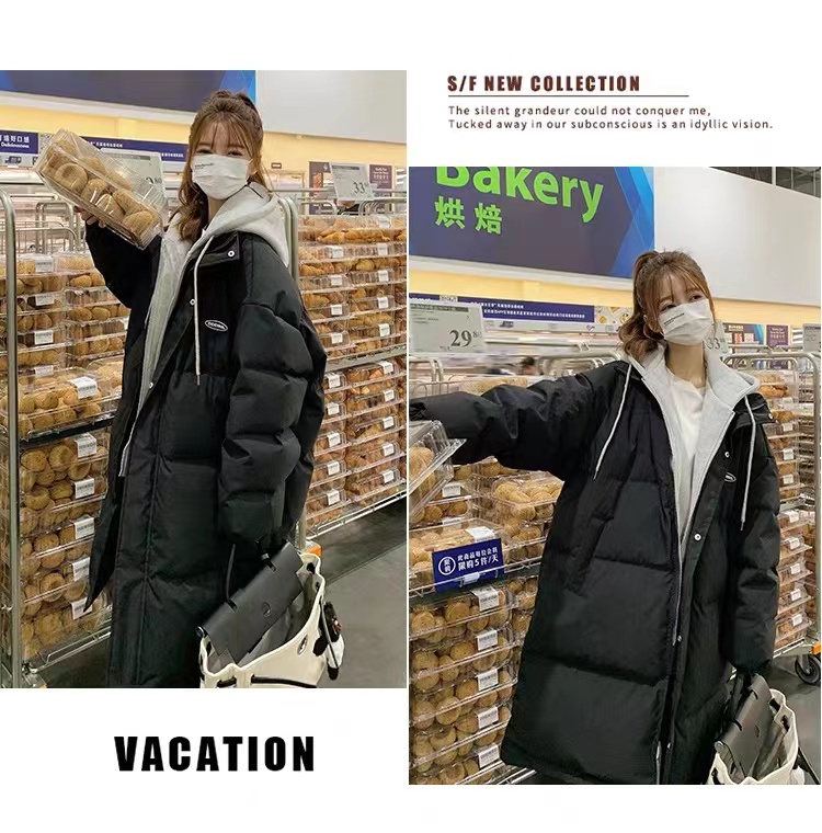>> 2025學院風假兩件連帽中長款羽絨棉服女加厚冬季新款面包服棉襖潮