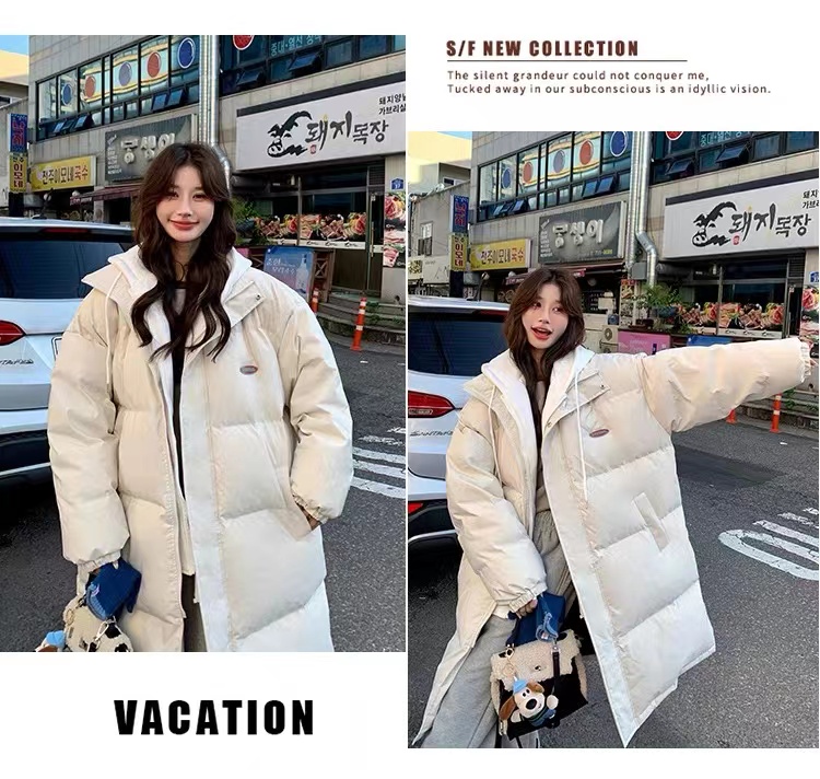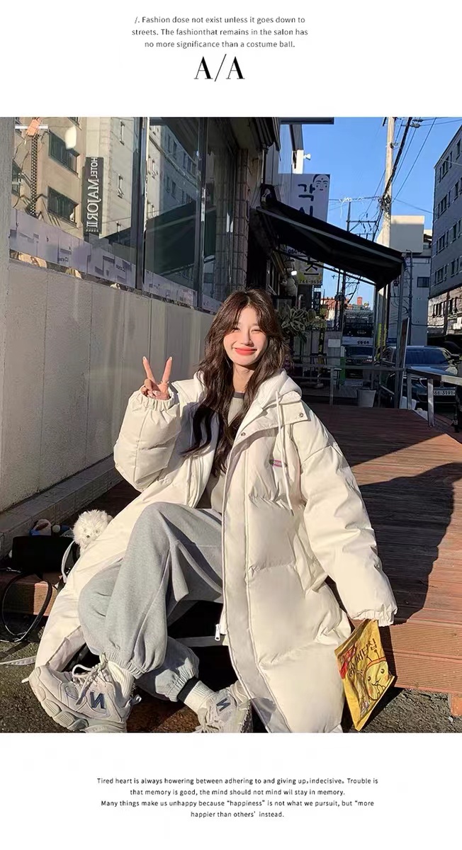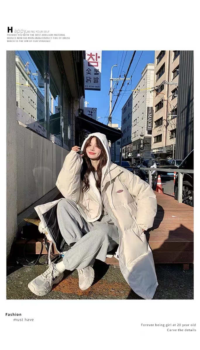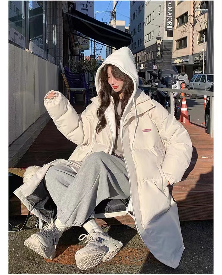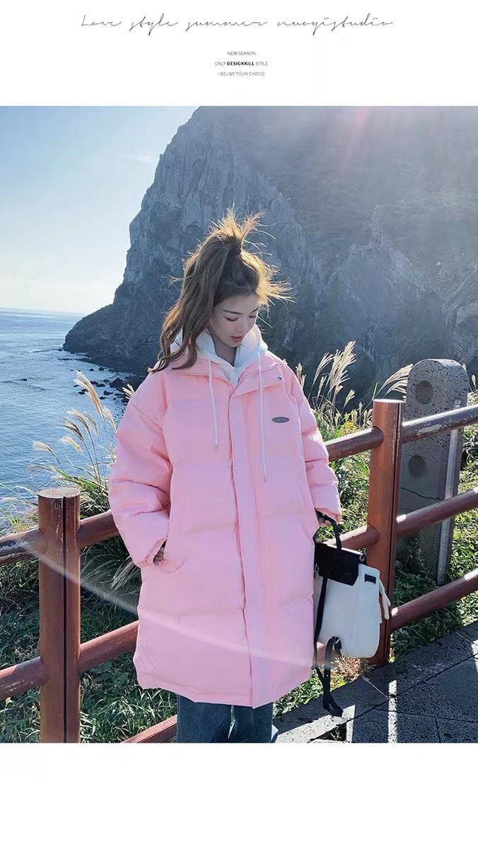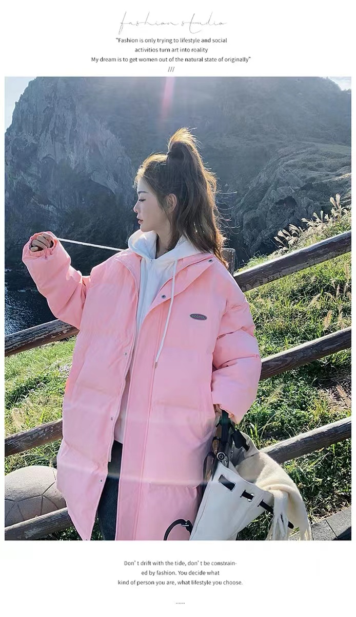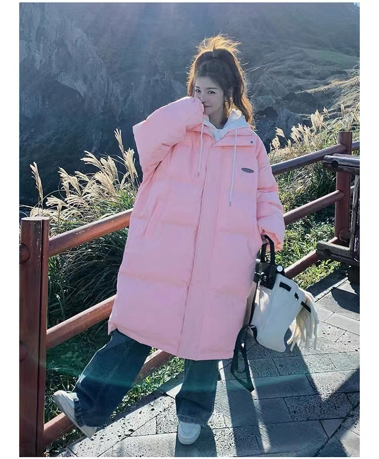 >> 2025學院風假兩件連帽中長款羽絨棉服女加厚冬季新款面包服棉襖潮