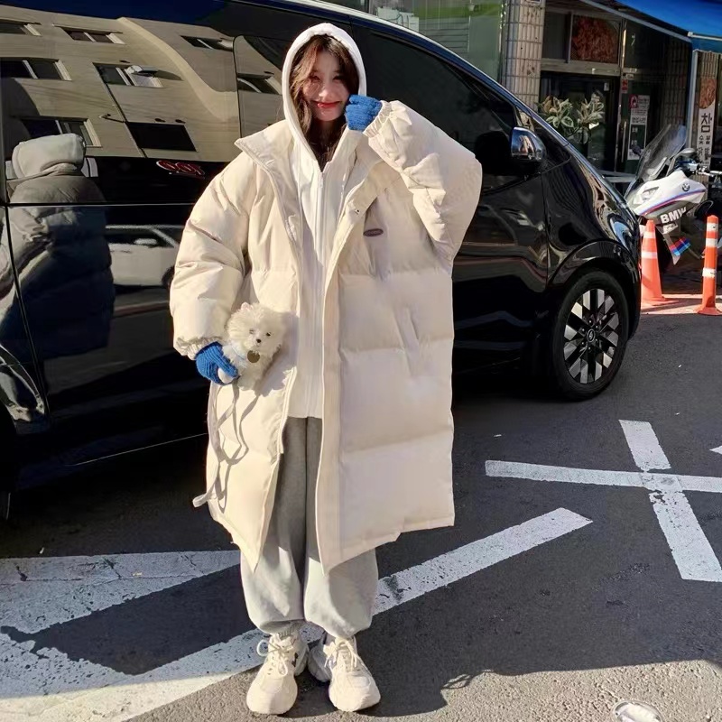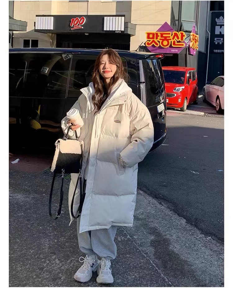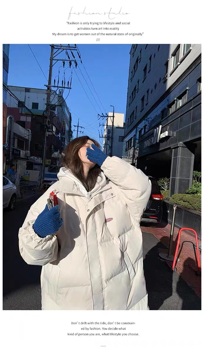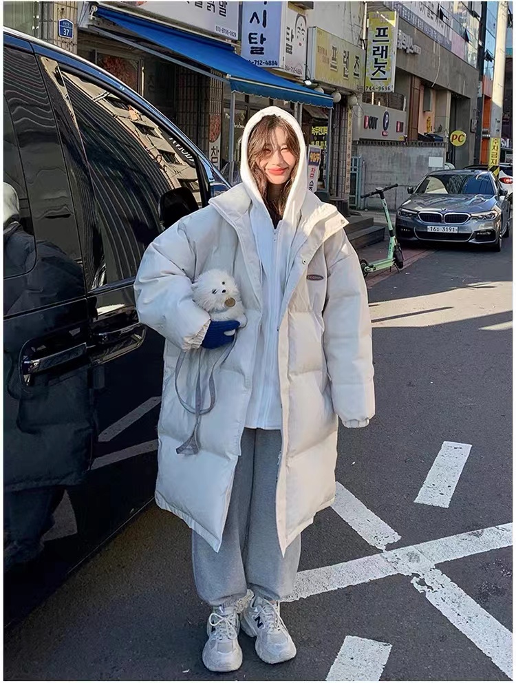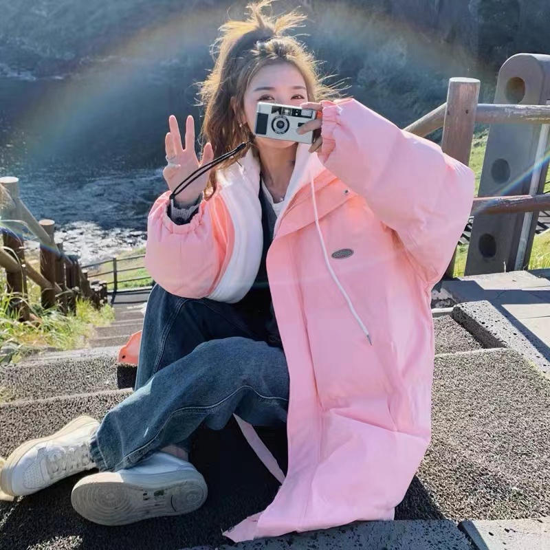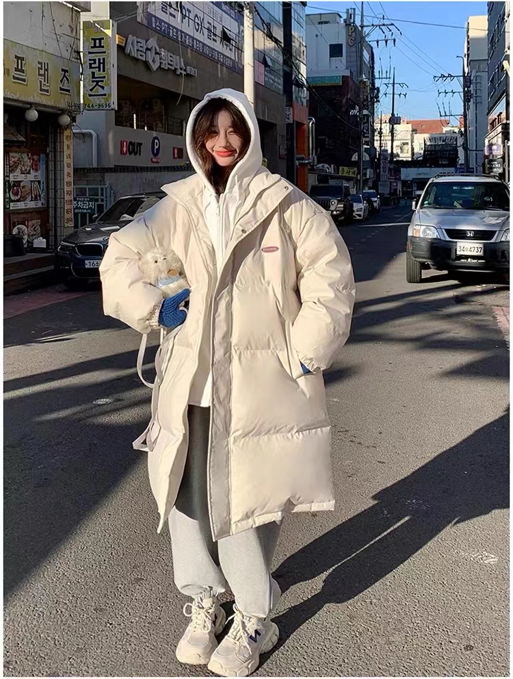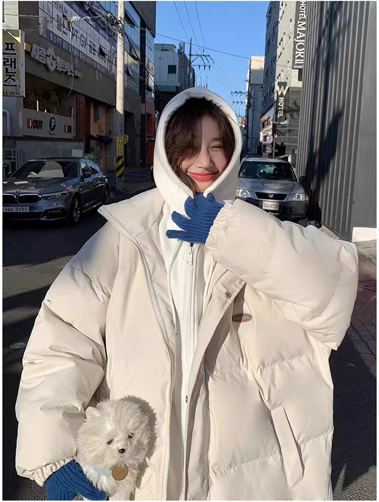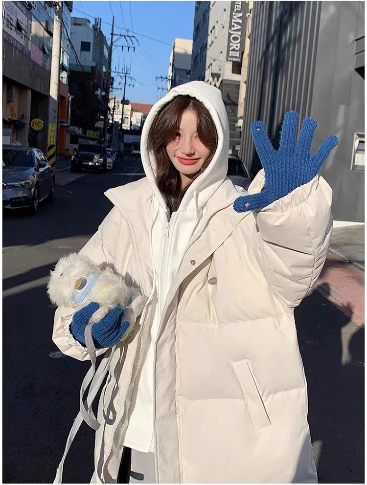 >> 2025學院風假兩件連帽中長款羽絨棉服女加厚冬季新款面包服棉襖潮