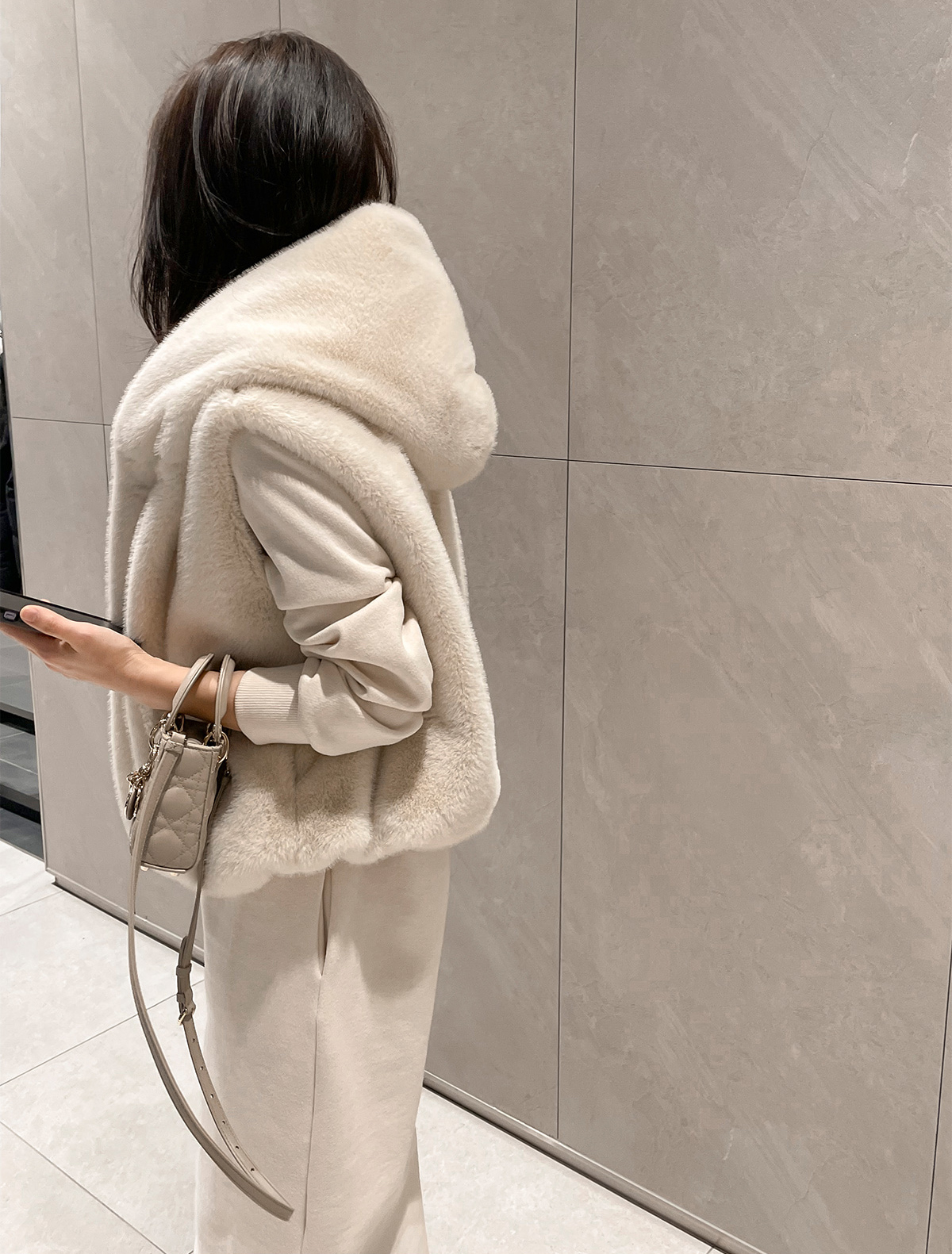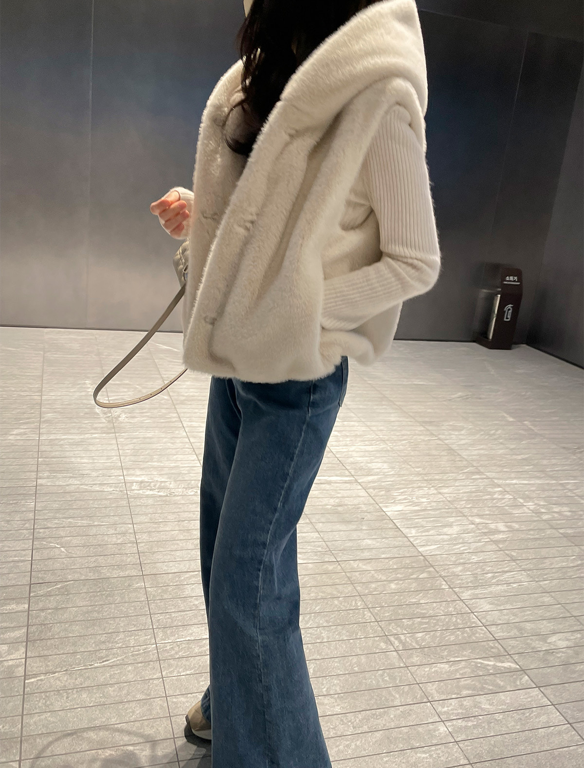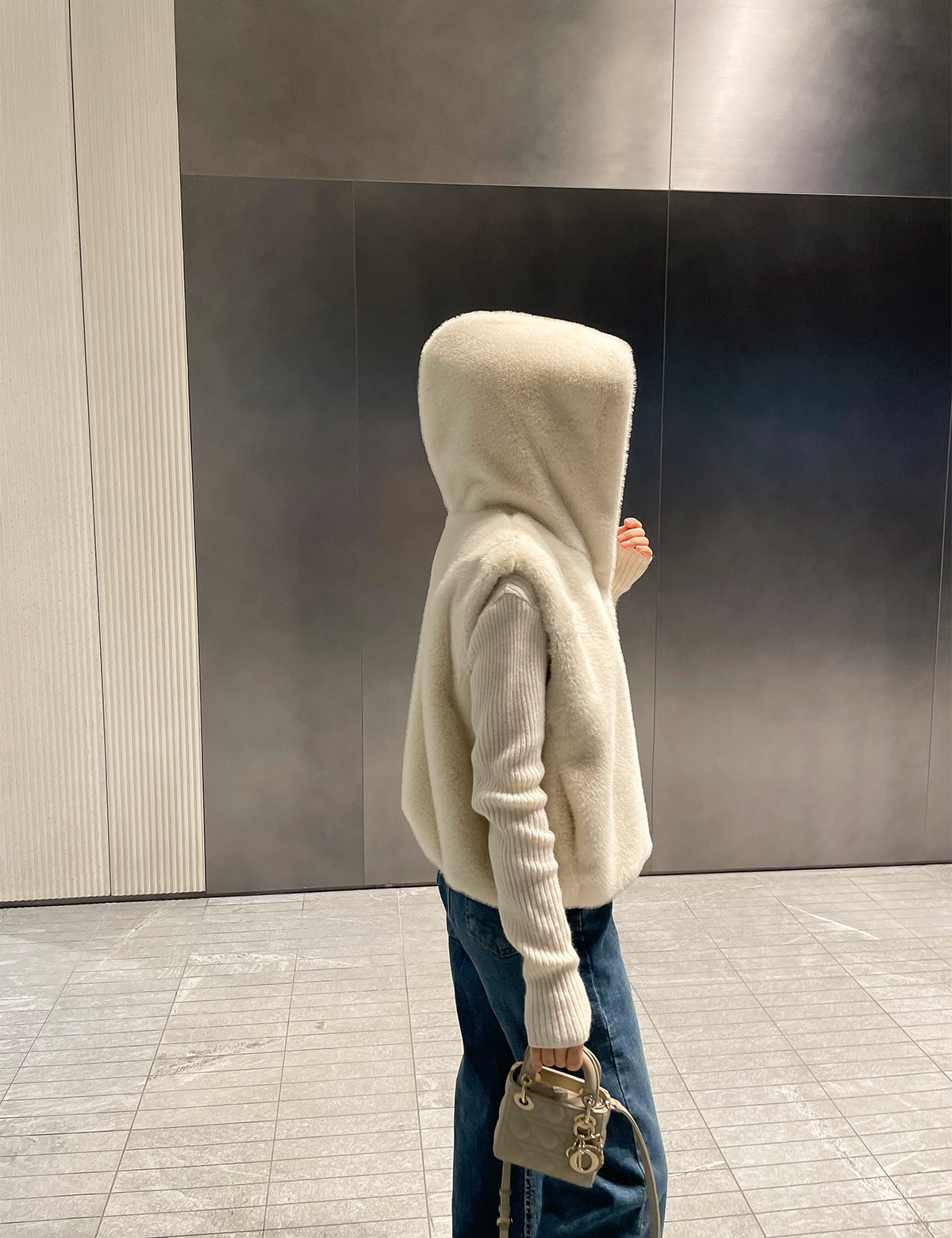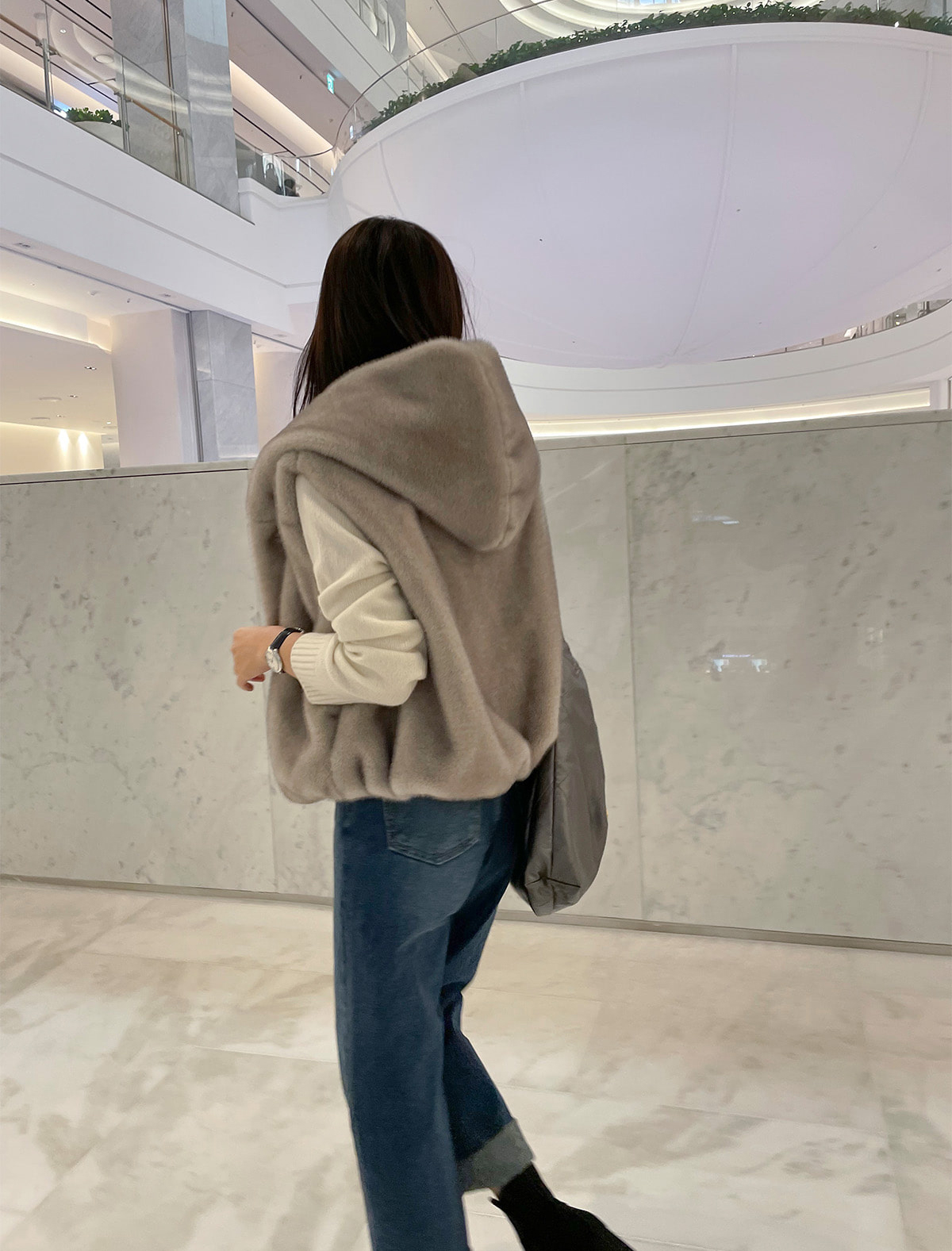 >> 大氣奢華 韓國Chic毛毛馬甲 連帽水貂毛皮草寬松坎肩韓版馬夾外套