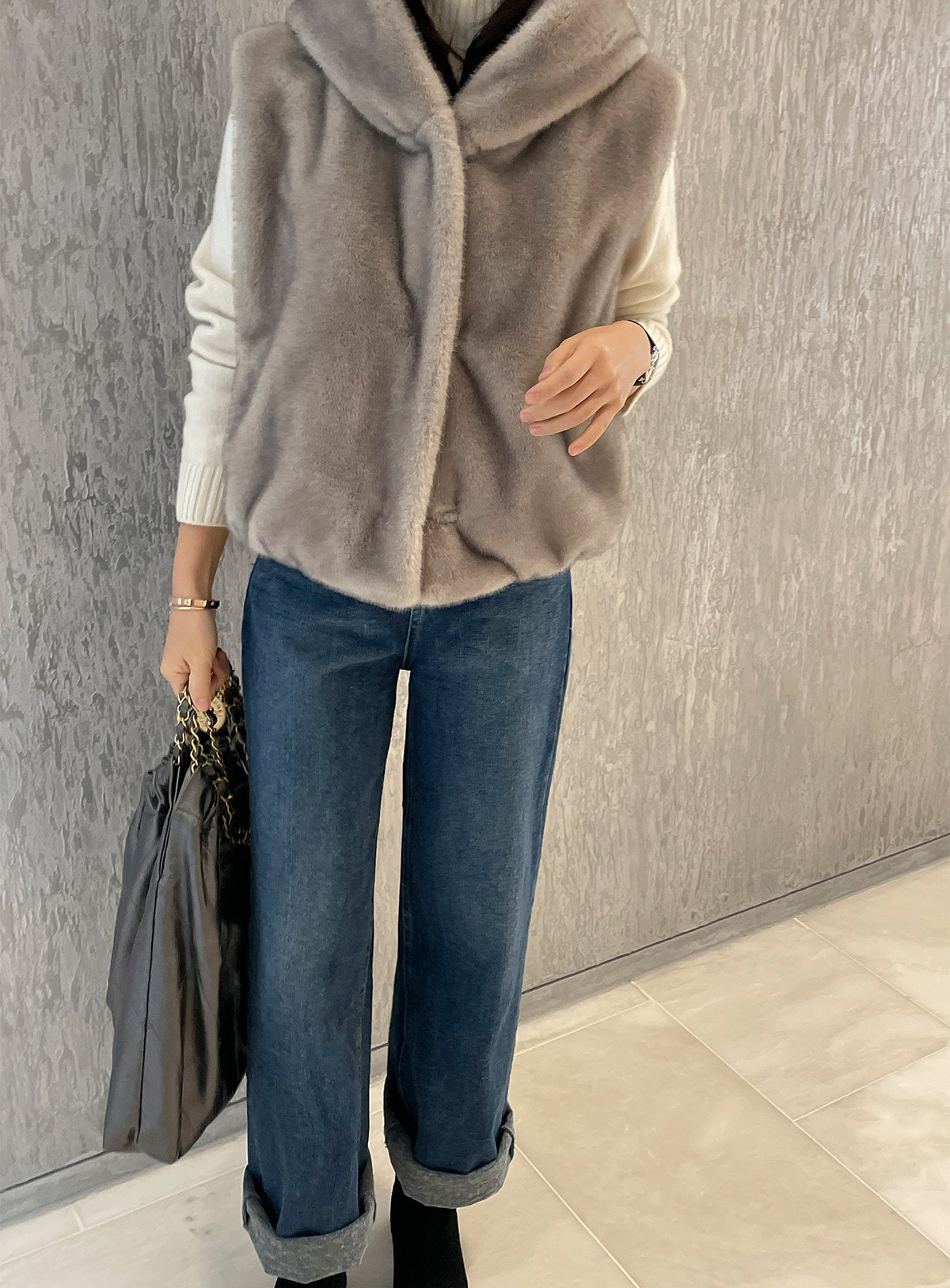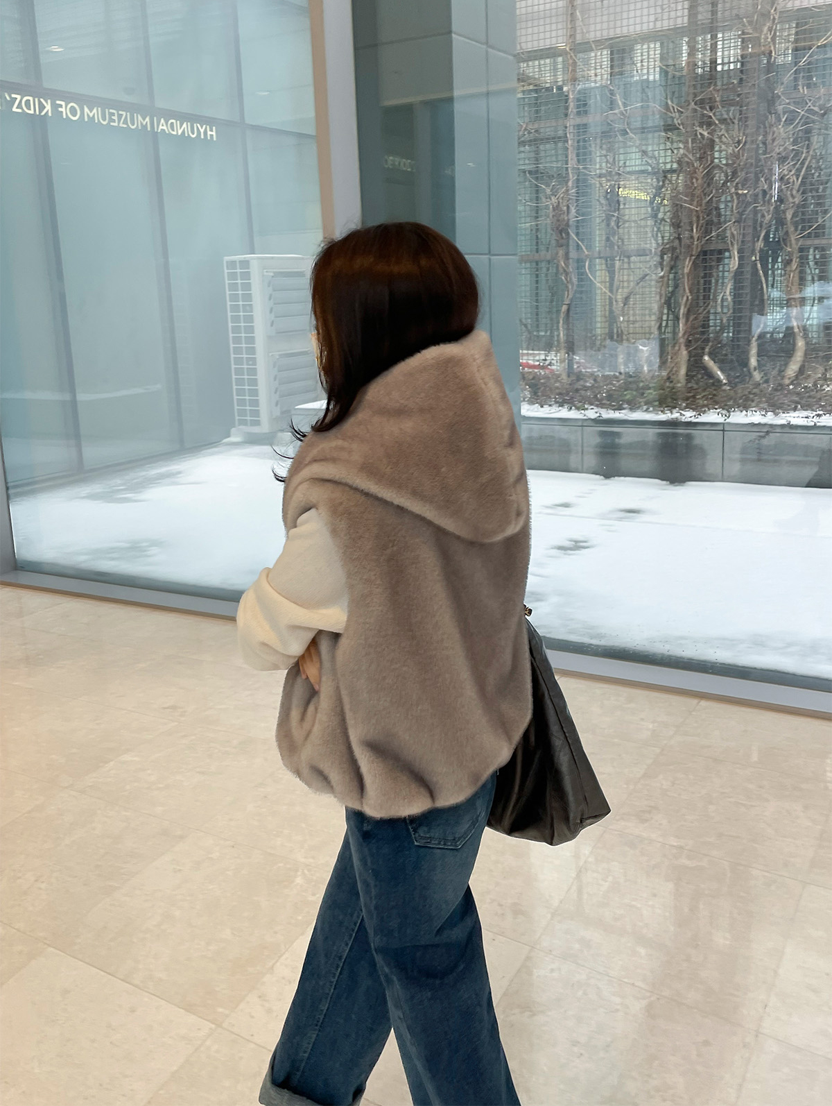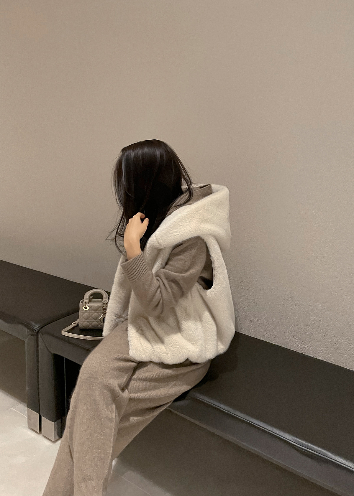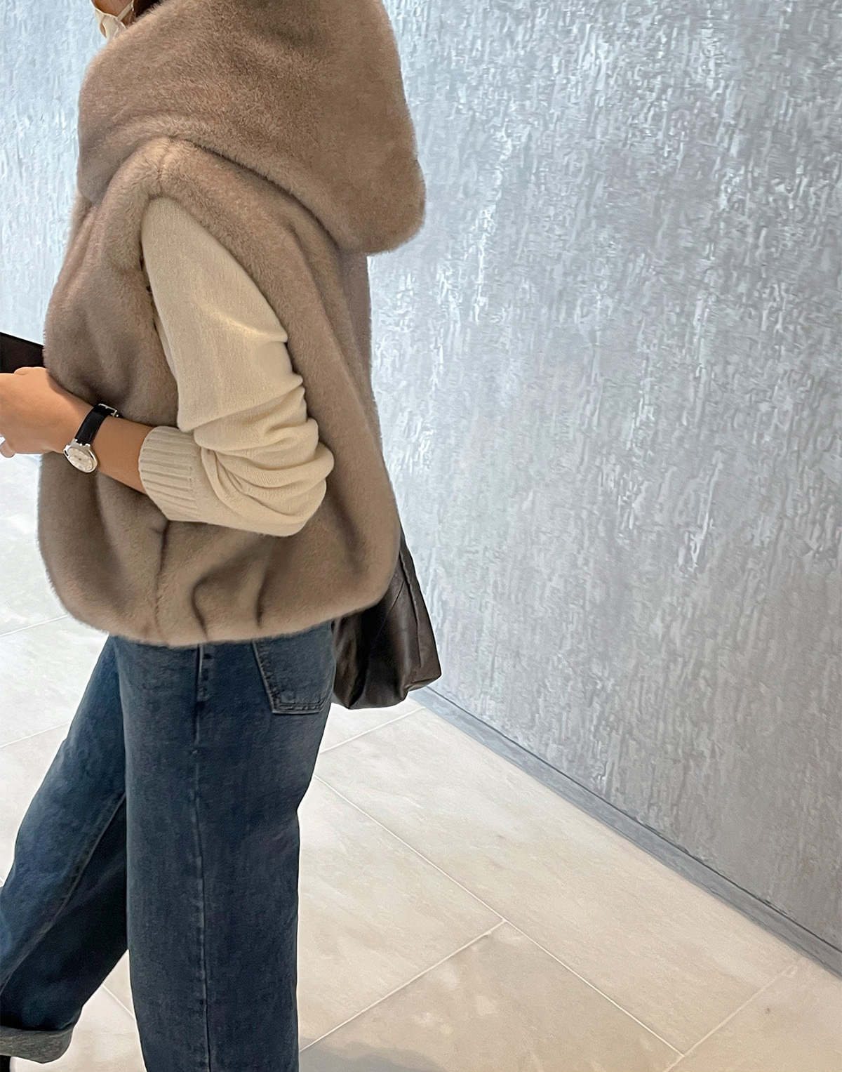 >> 大氣奢華 韓國Chic毛毛馬甲 連帽水貂毛皮草寬松坎肩韓版馬夾外套