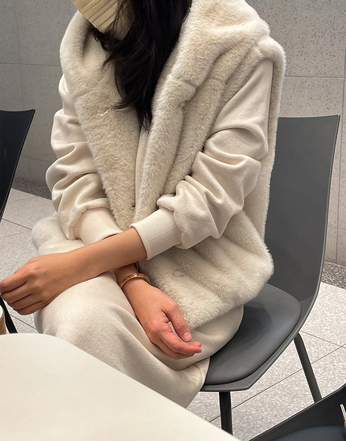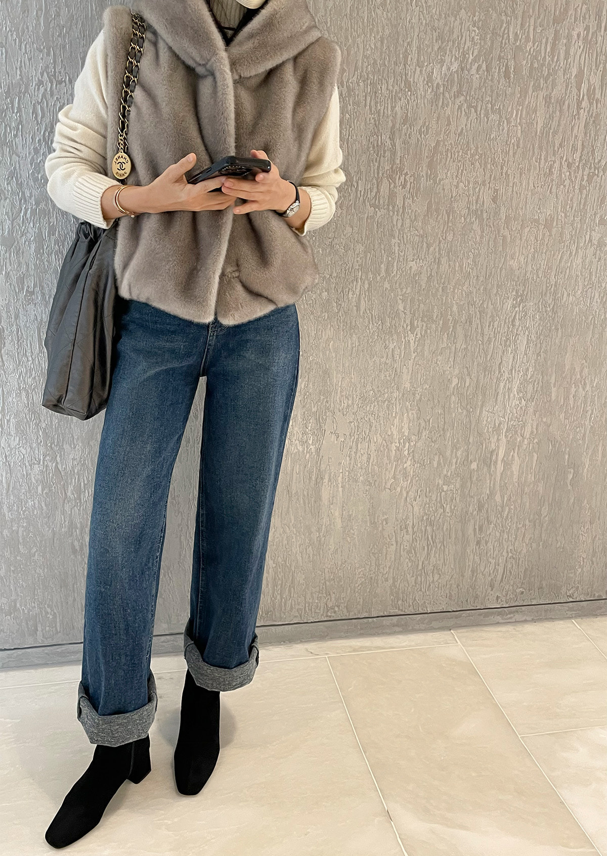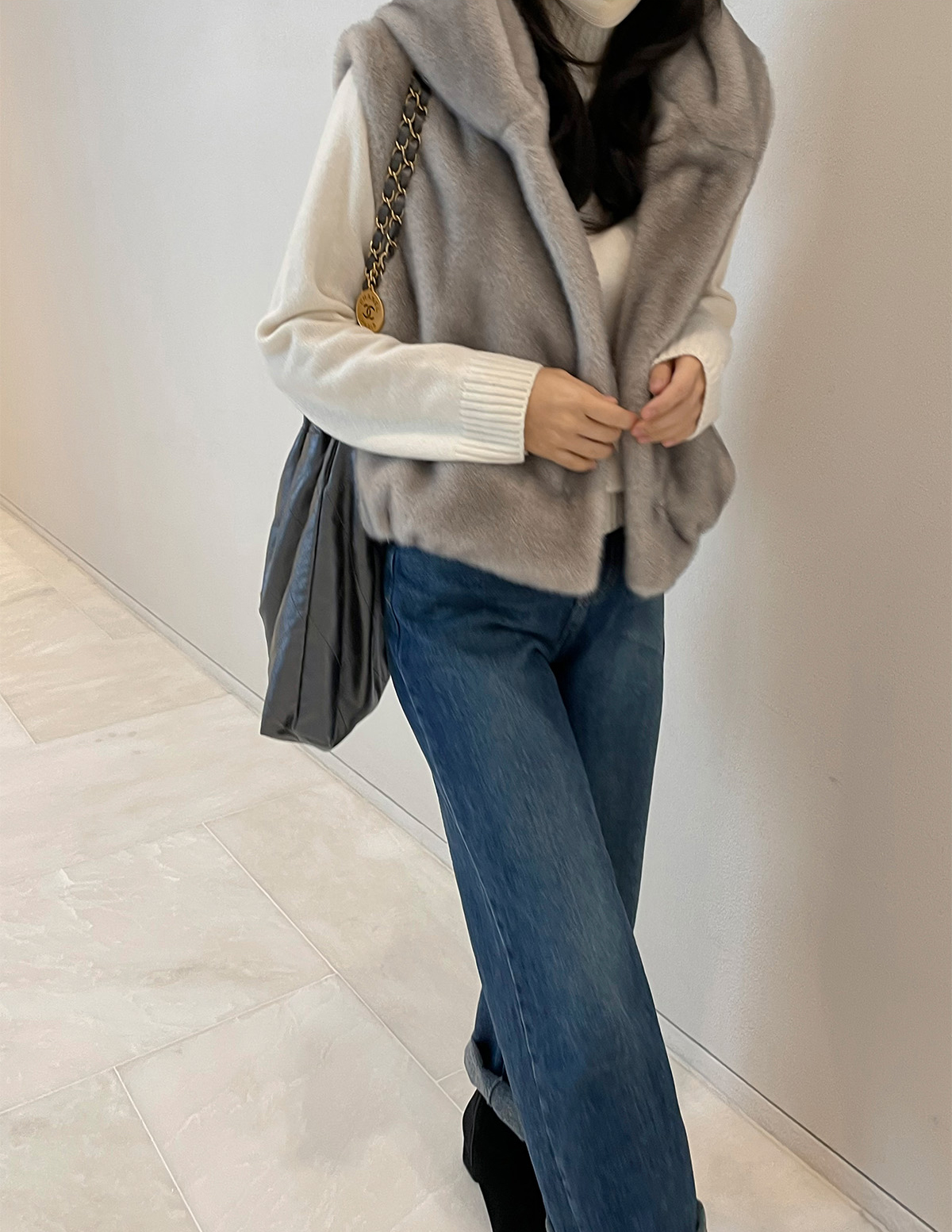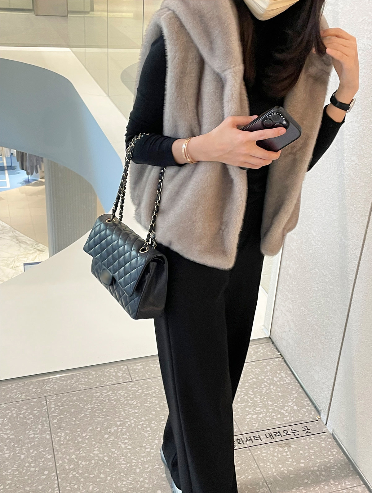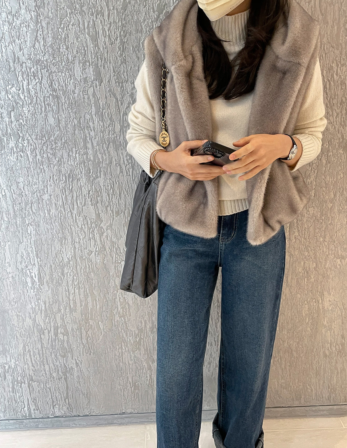 >> 大氣奢華 韓國Chic毛毛馬甲 連帽水貂毛皮草寬松坎肩韓版馬夾外套
