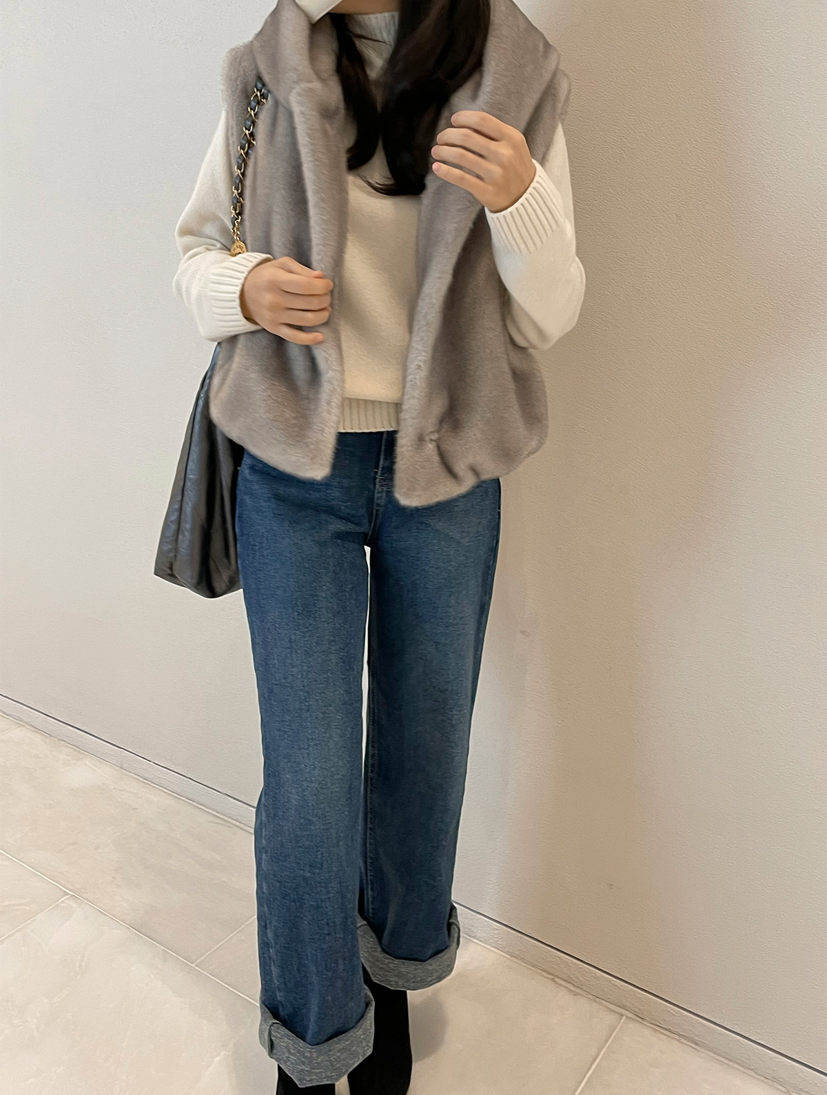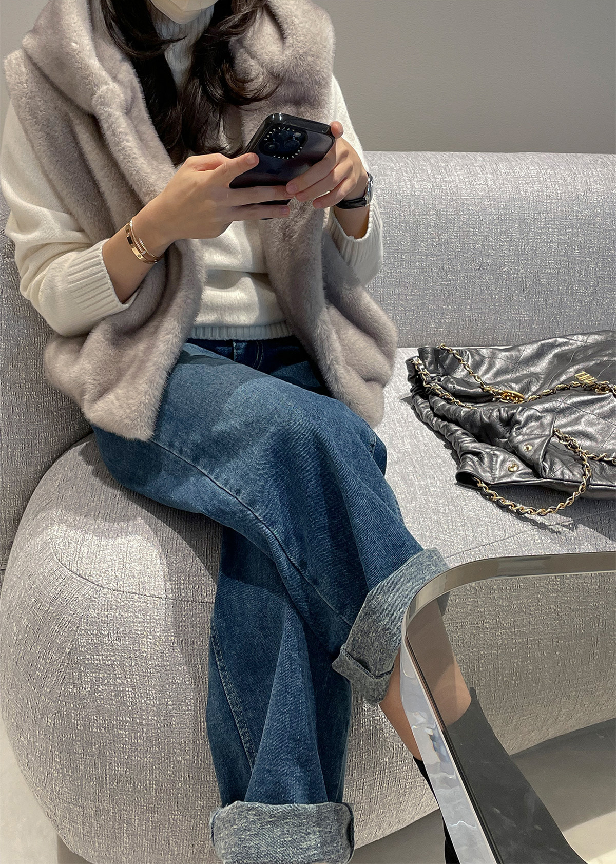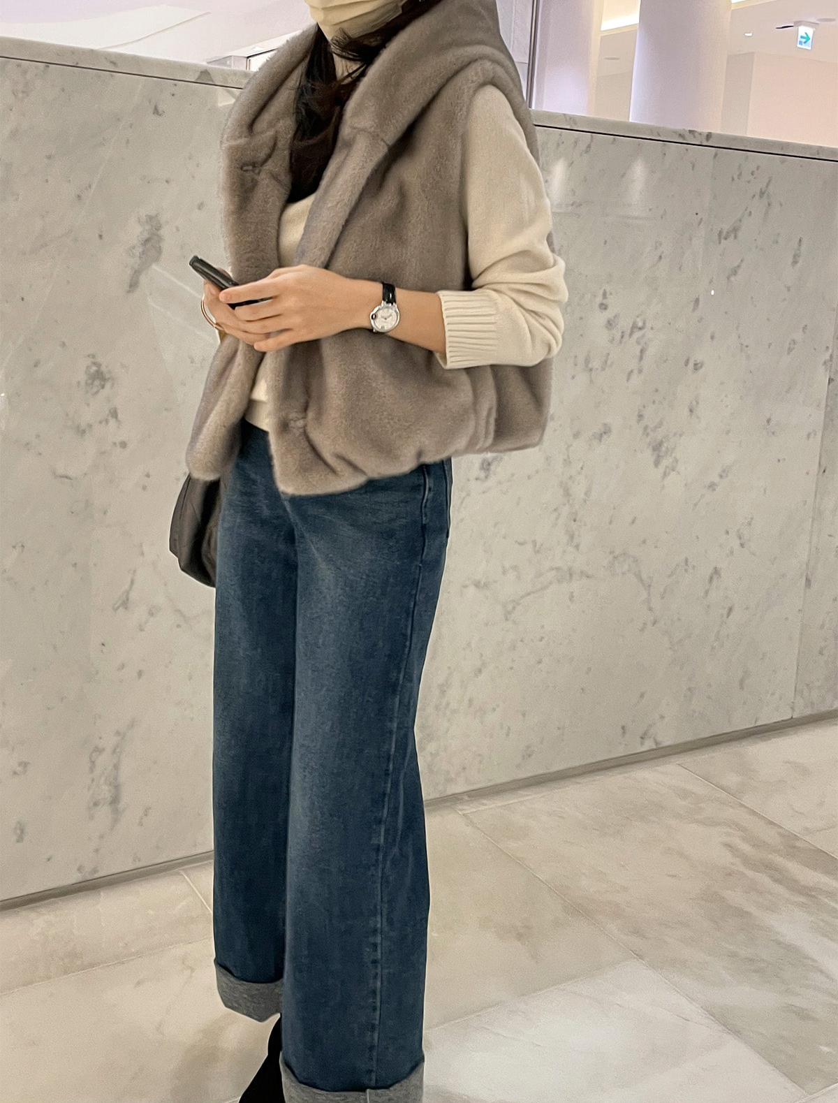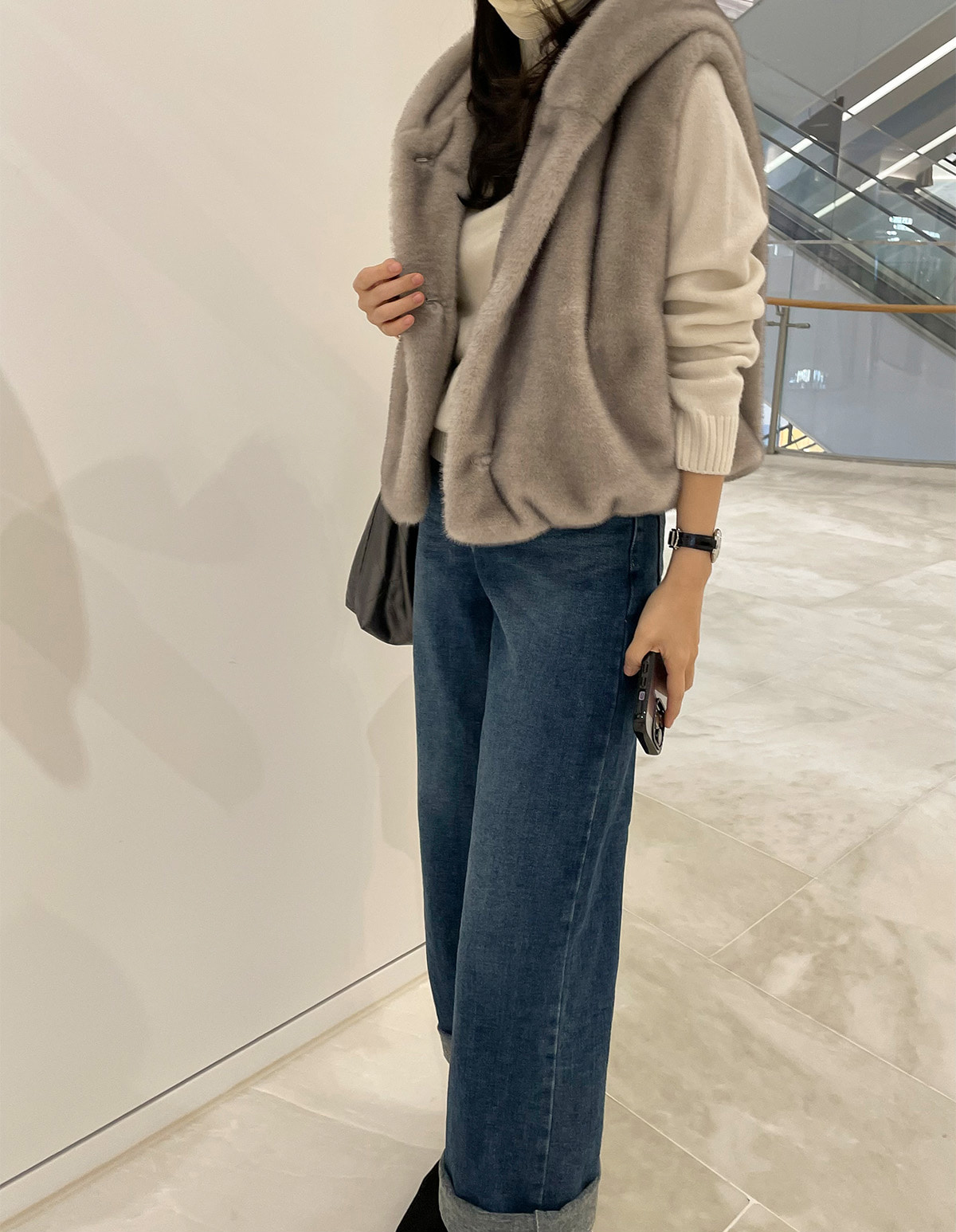 >> 大氣奢華 韓國Chic毛毛馬甲 連帽水貂毛皮草寬松坎肩韓版馬夾外套