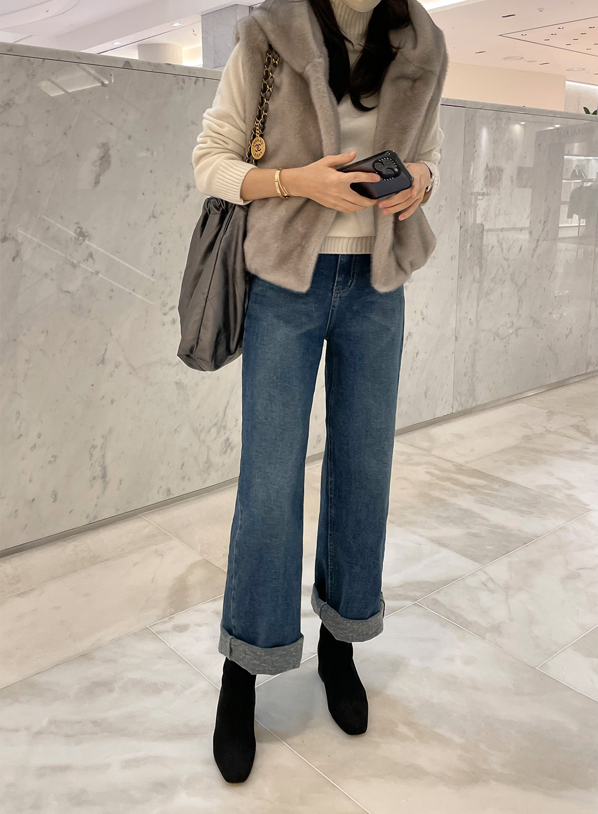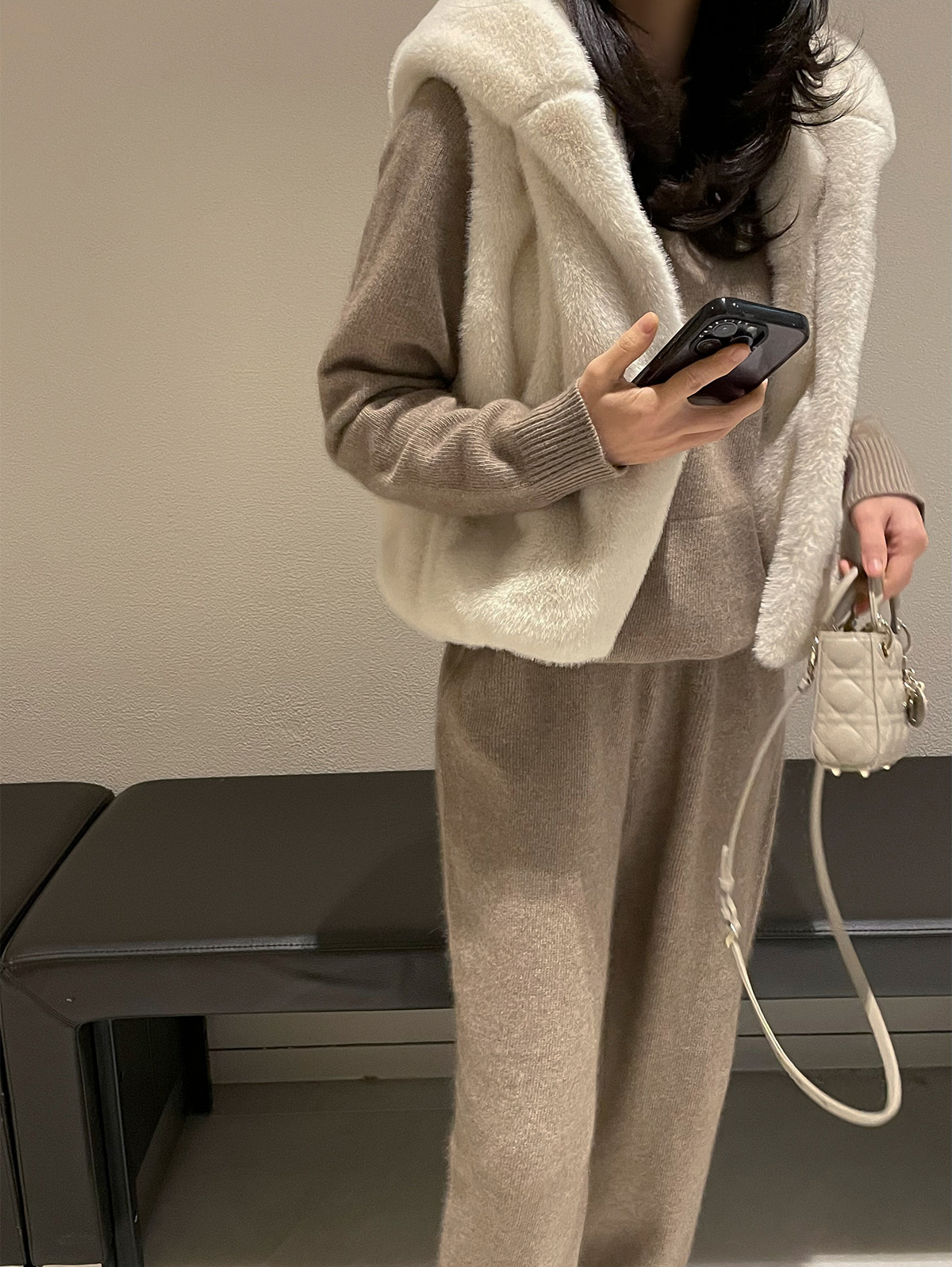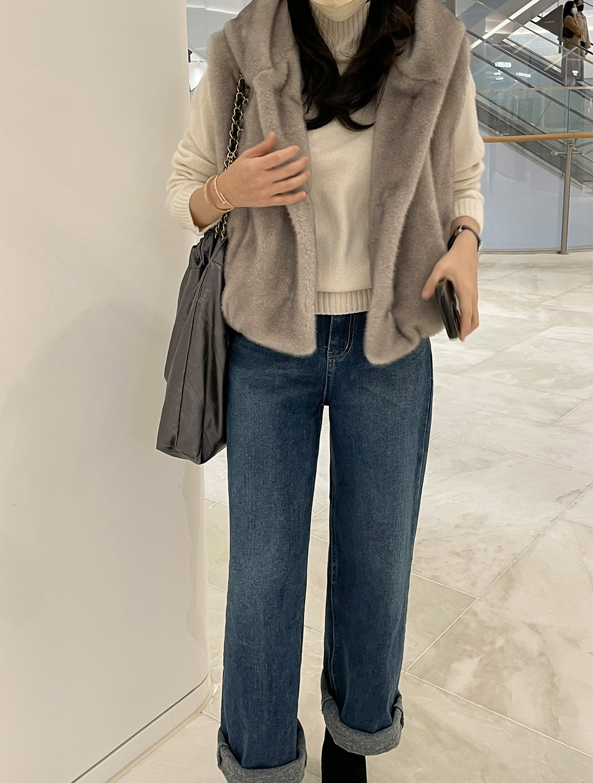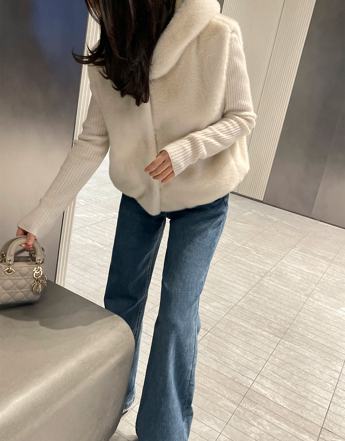 >> 大氣奢華 韓國Chic毛毛馬甲 連帽水貂毛皮草寬松坎肩韓版馬夾外套