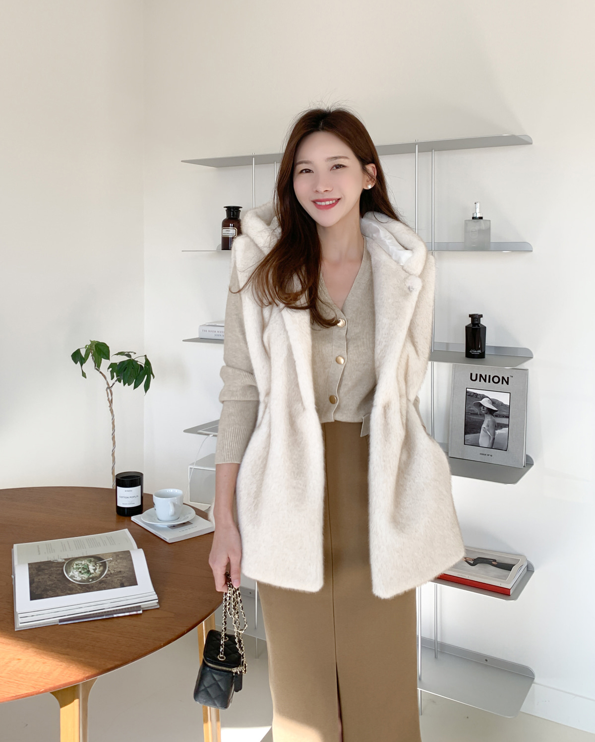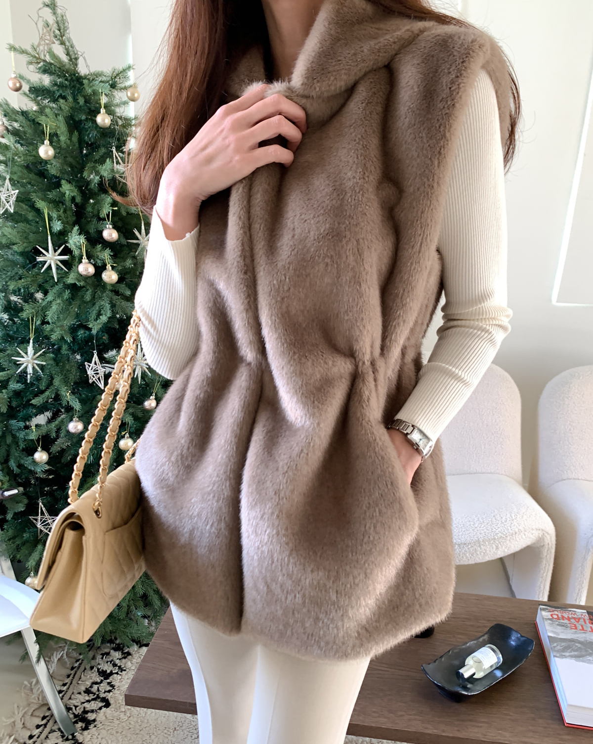>> 高端奢華 韓國Chic水貂毛馬夾皮草外套 連帽毛毛開衫韓版馬甲外套