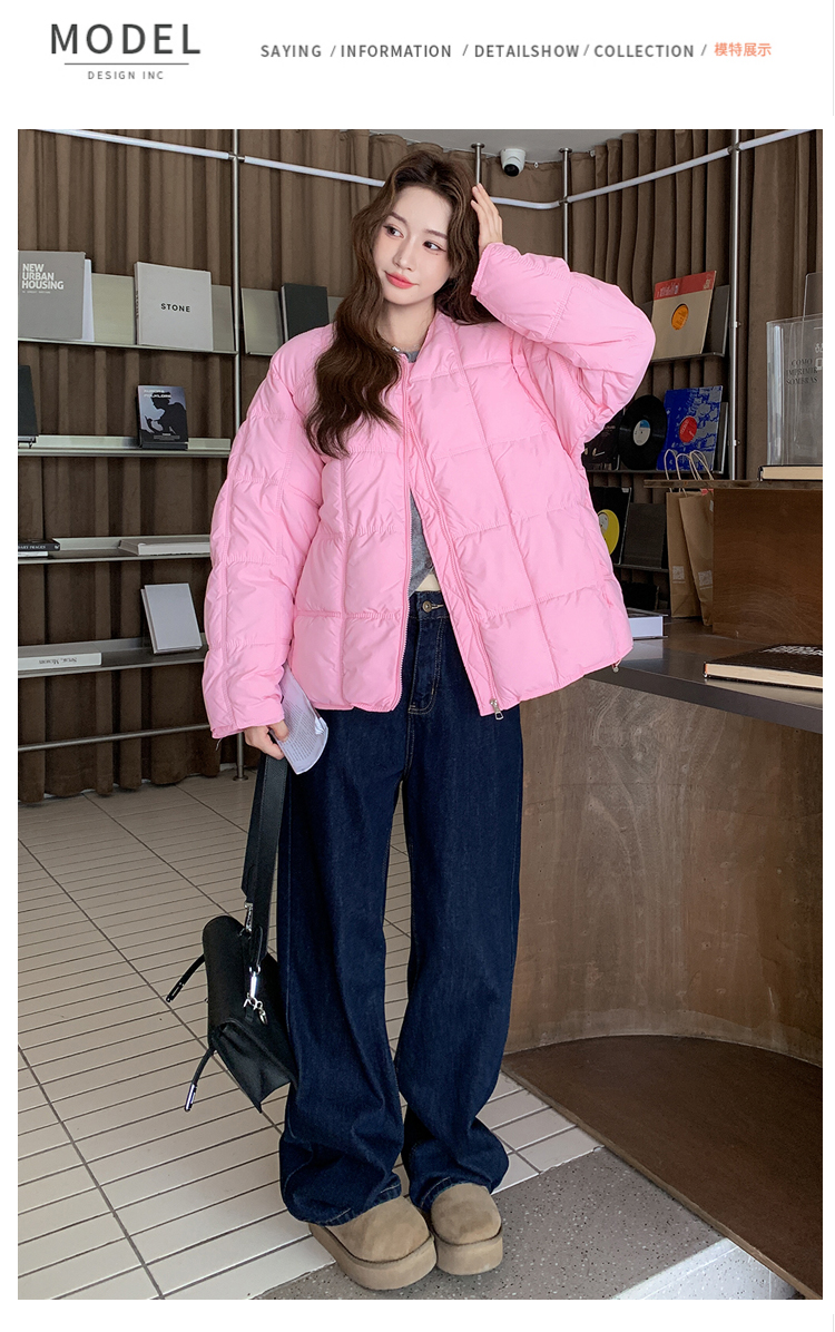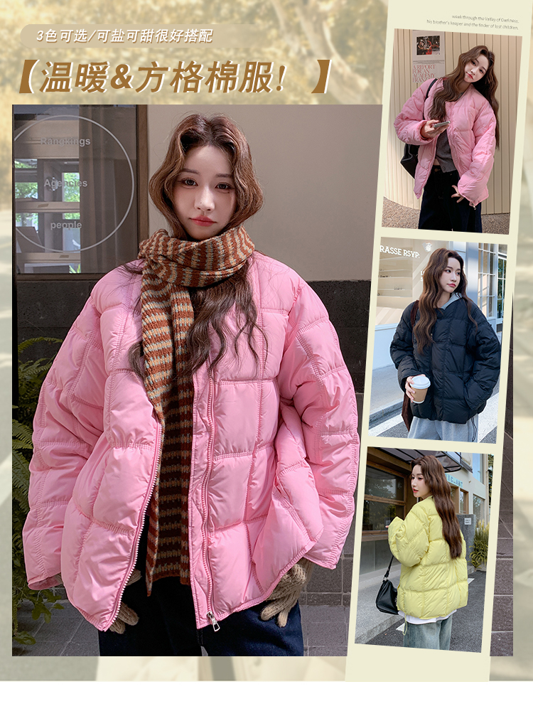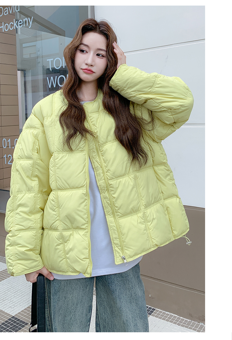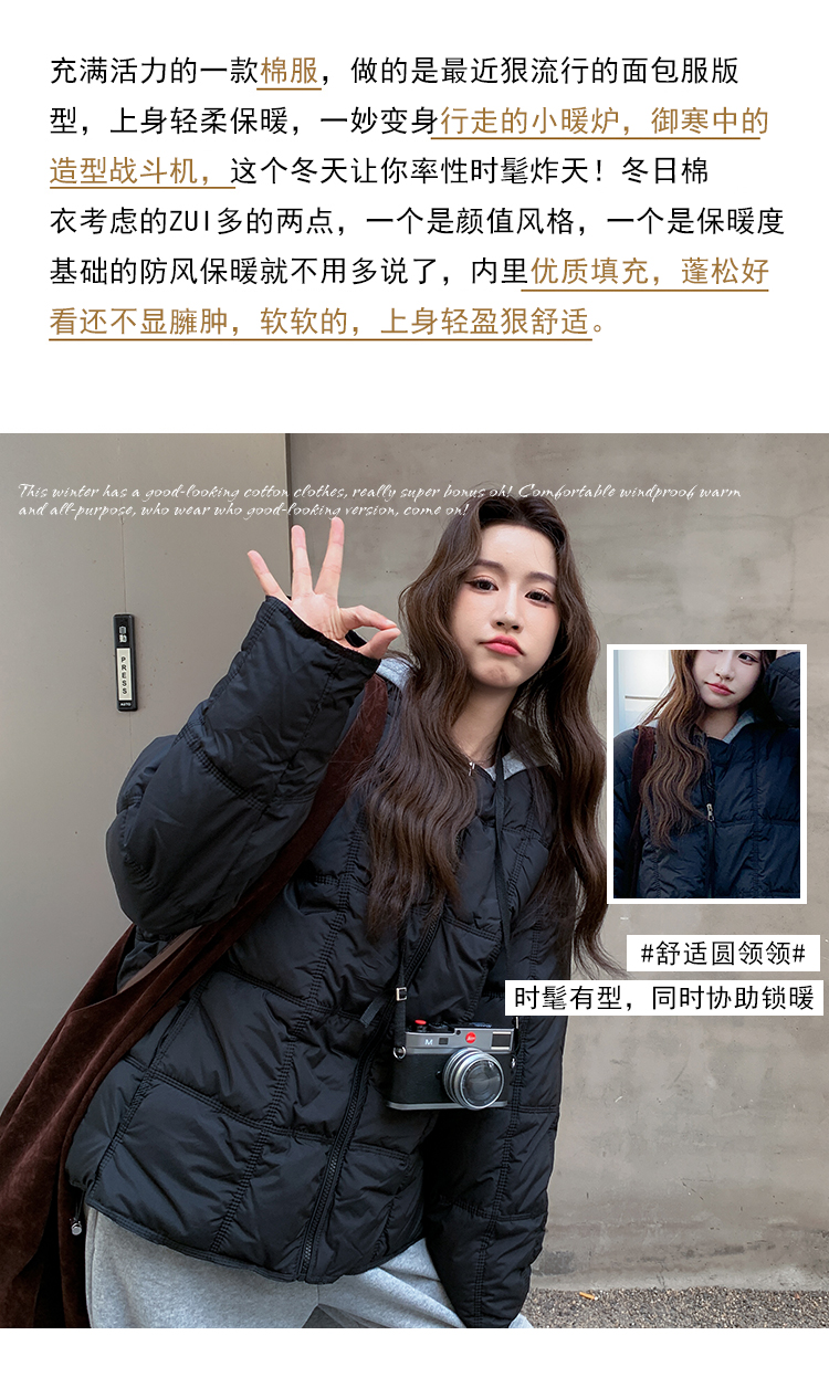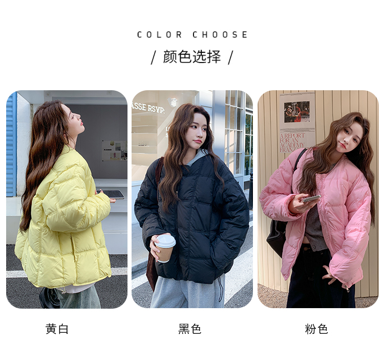>> 羽绒服女2025冬季新款宽松休闲韩系圆领加厚大码棉衣外套