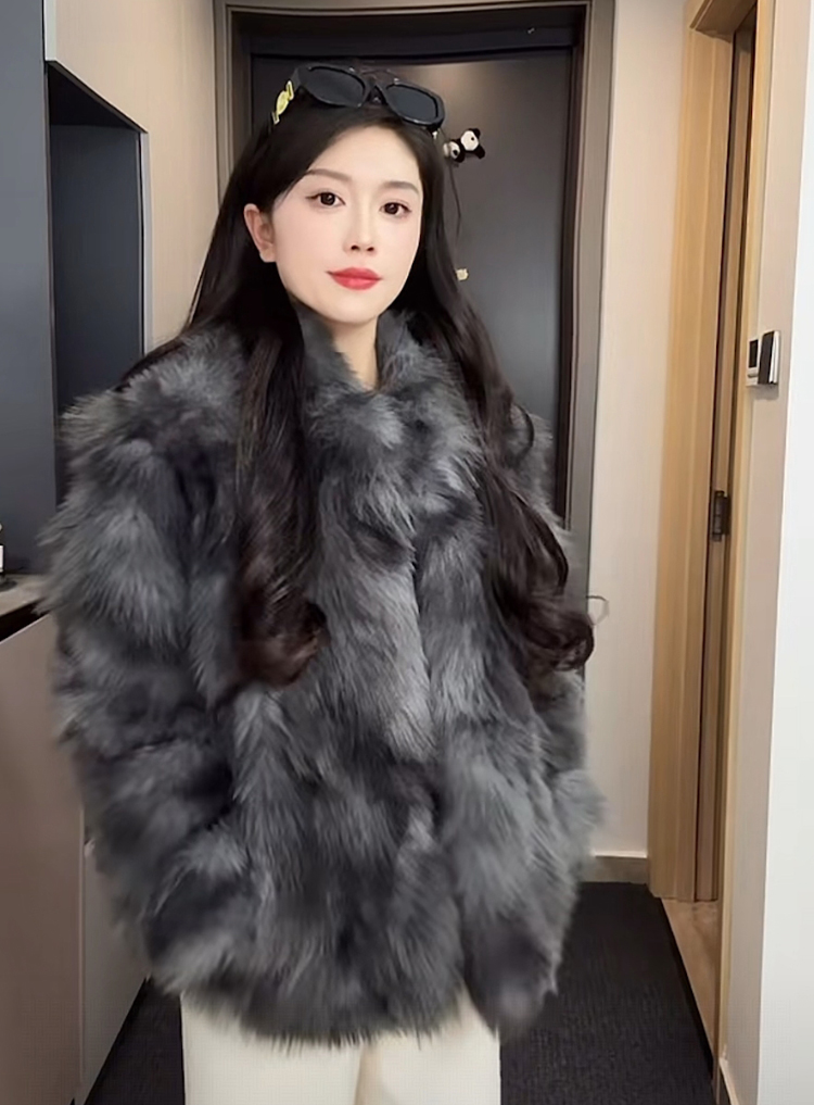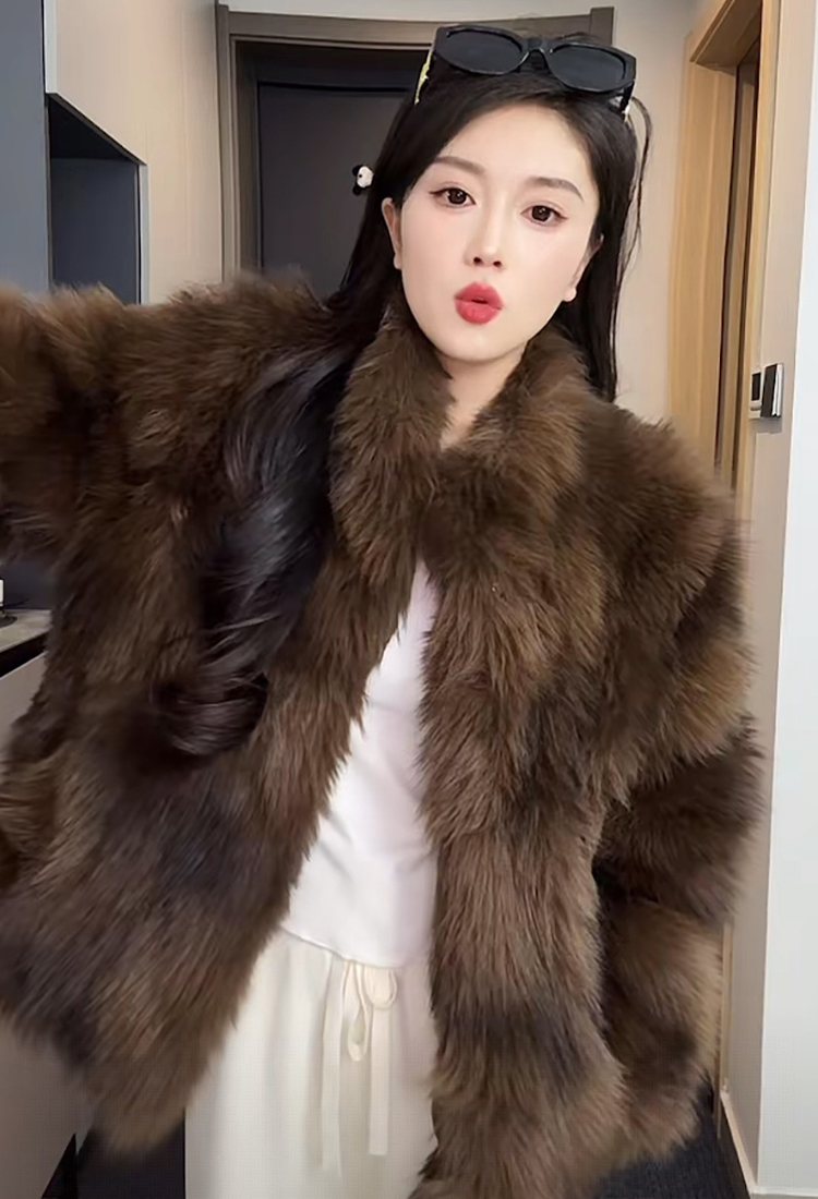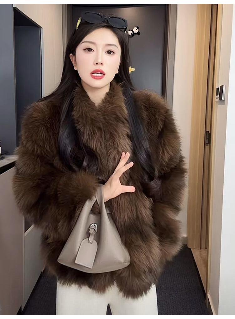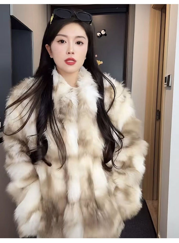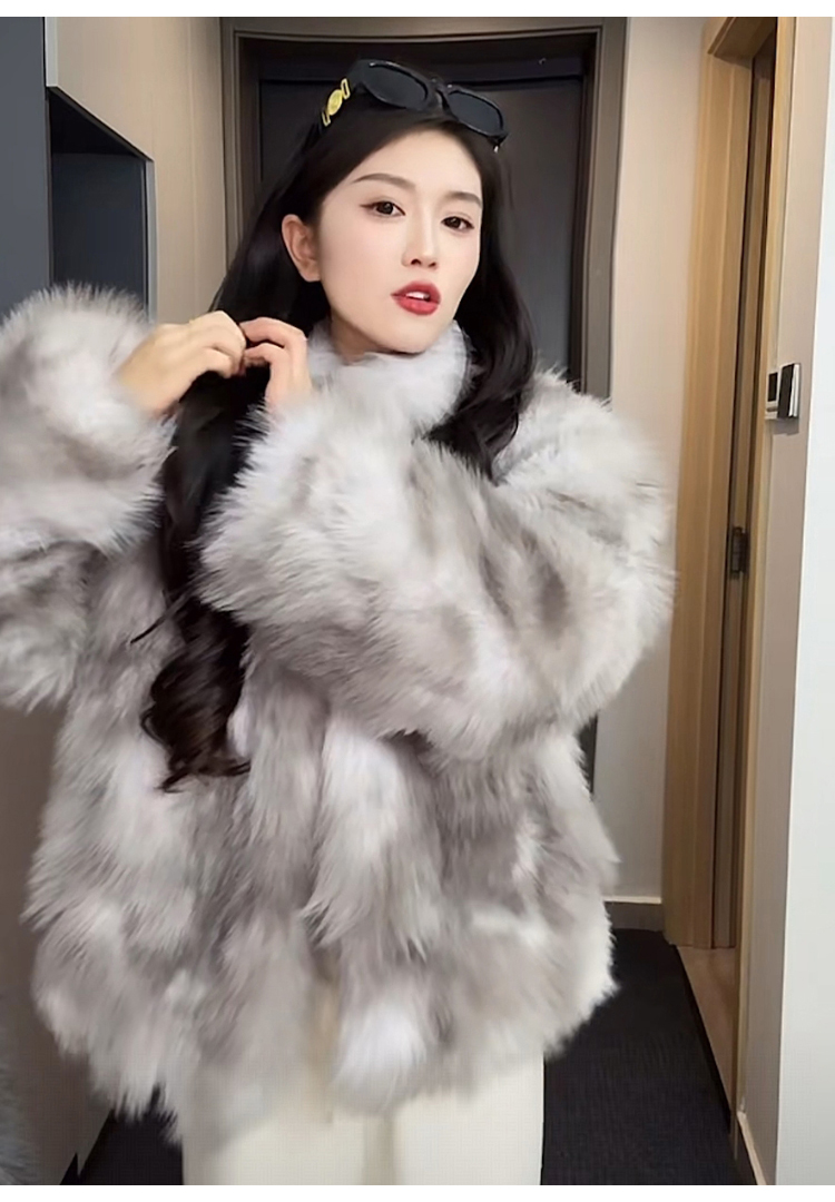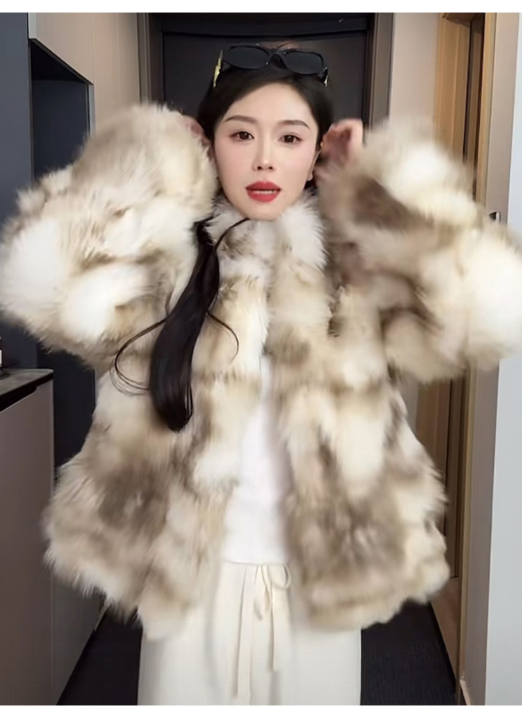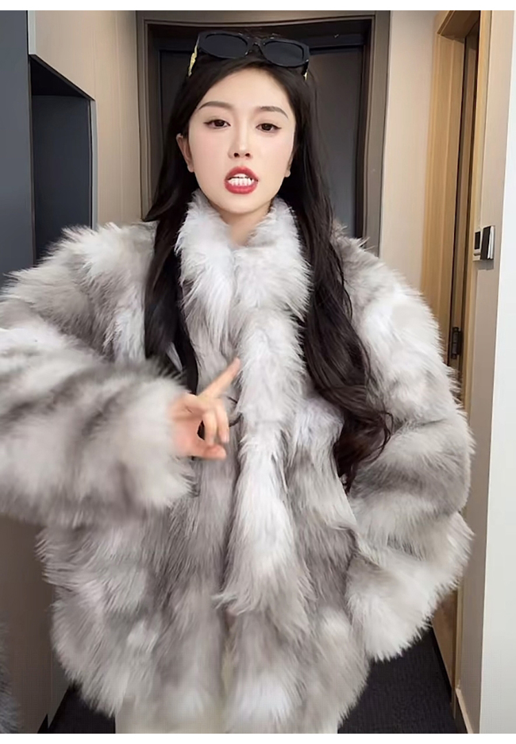 >> 环保狐狸毛皮草女冬季新款双色高级感气质短款加厚保暖仿毛毛外套