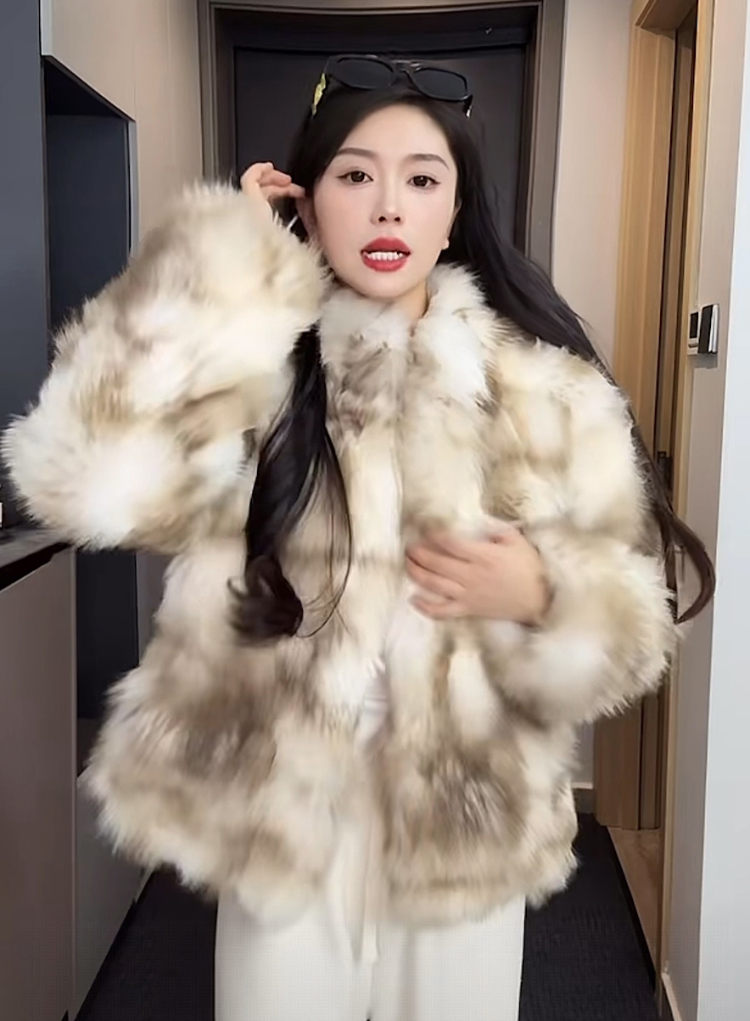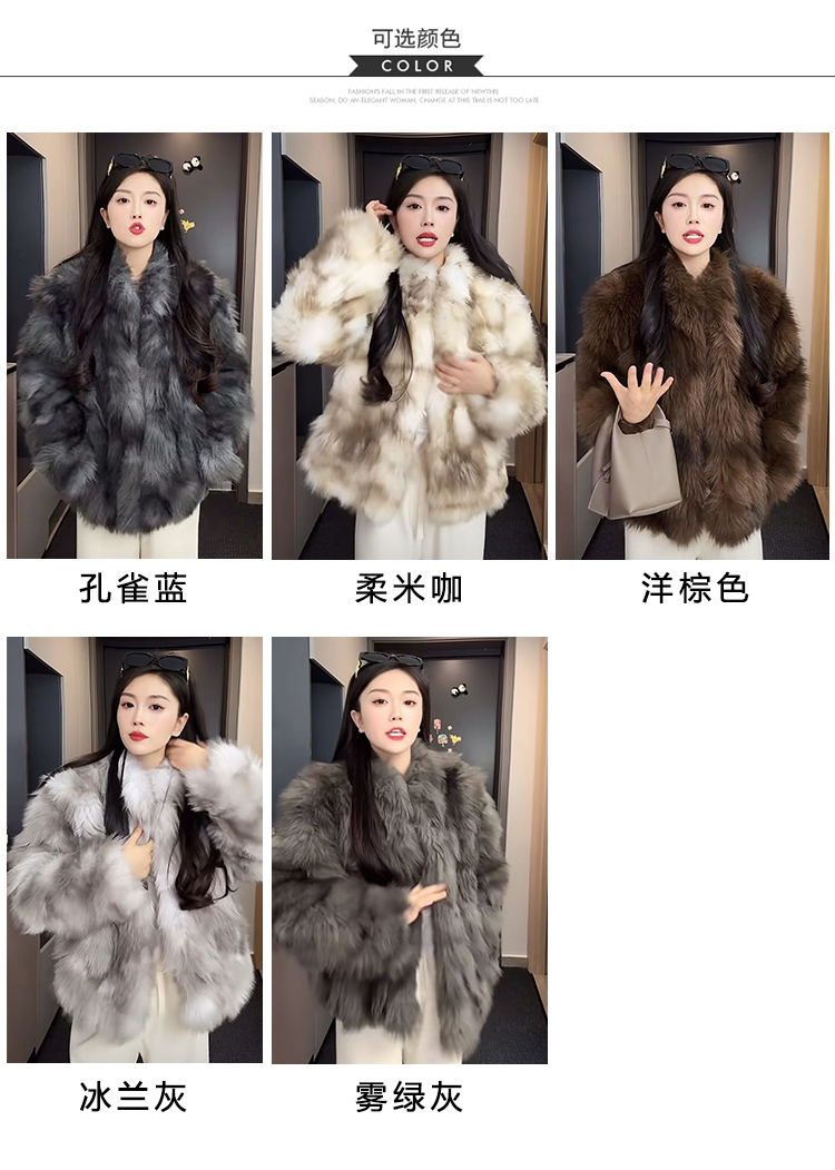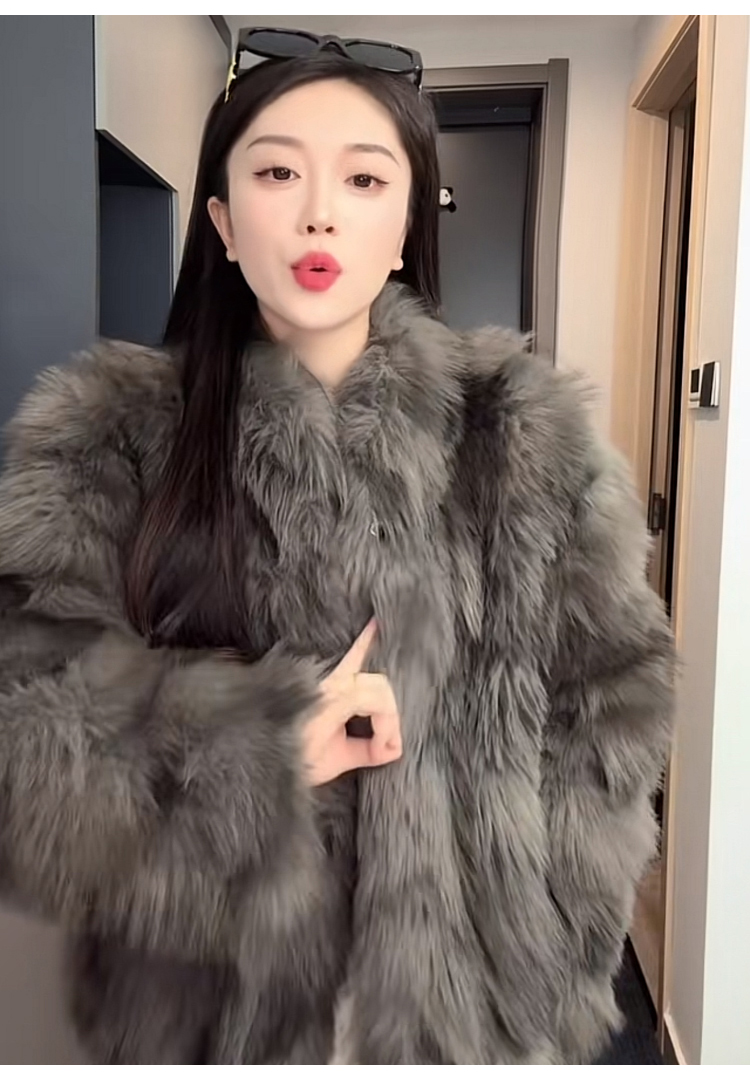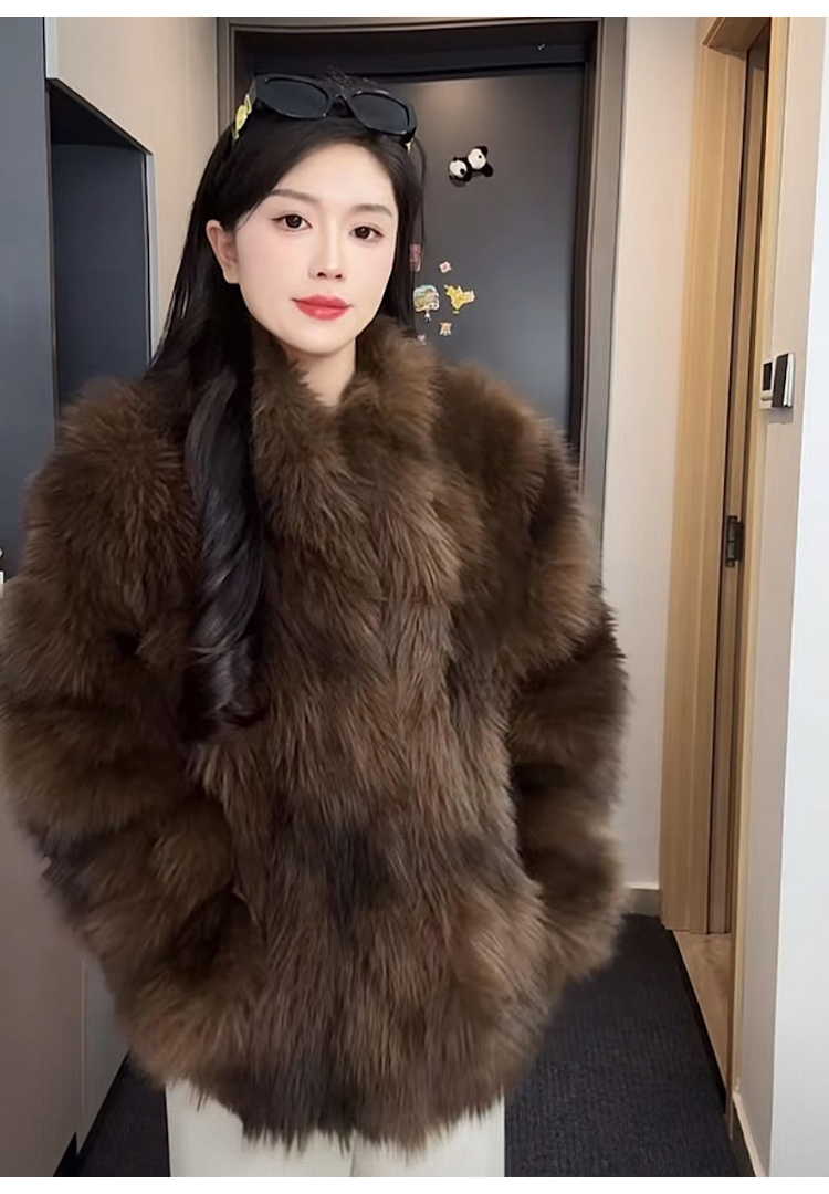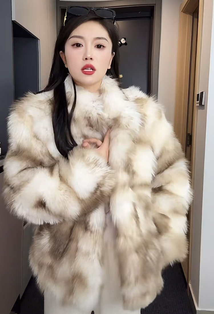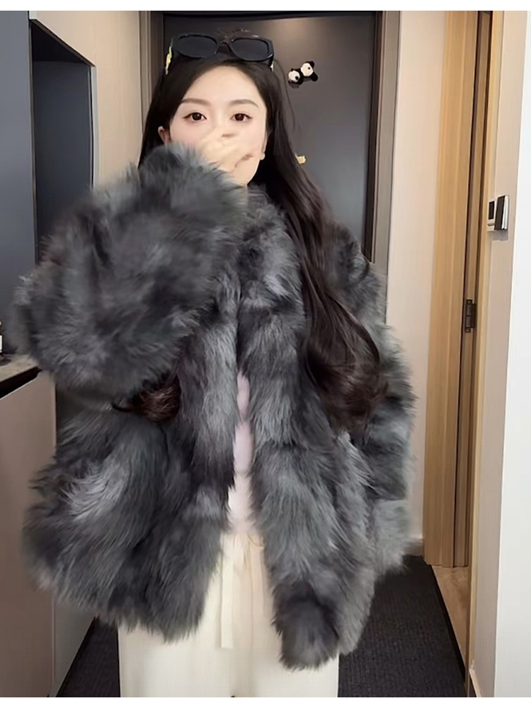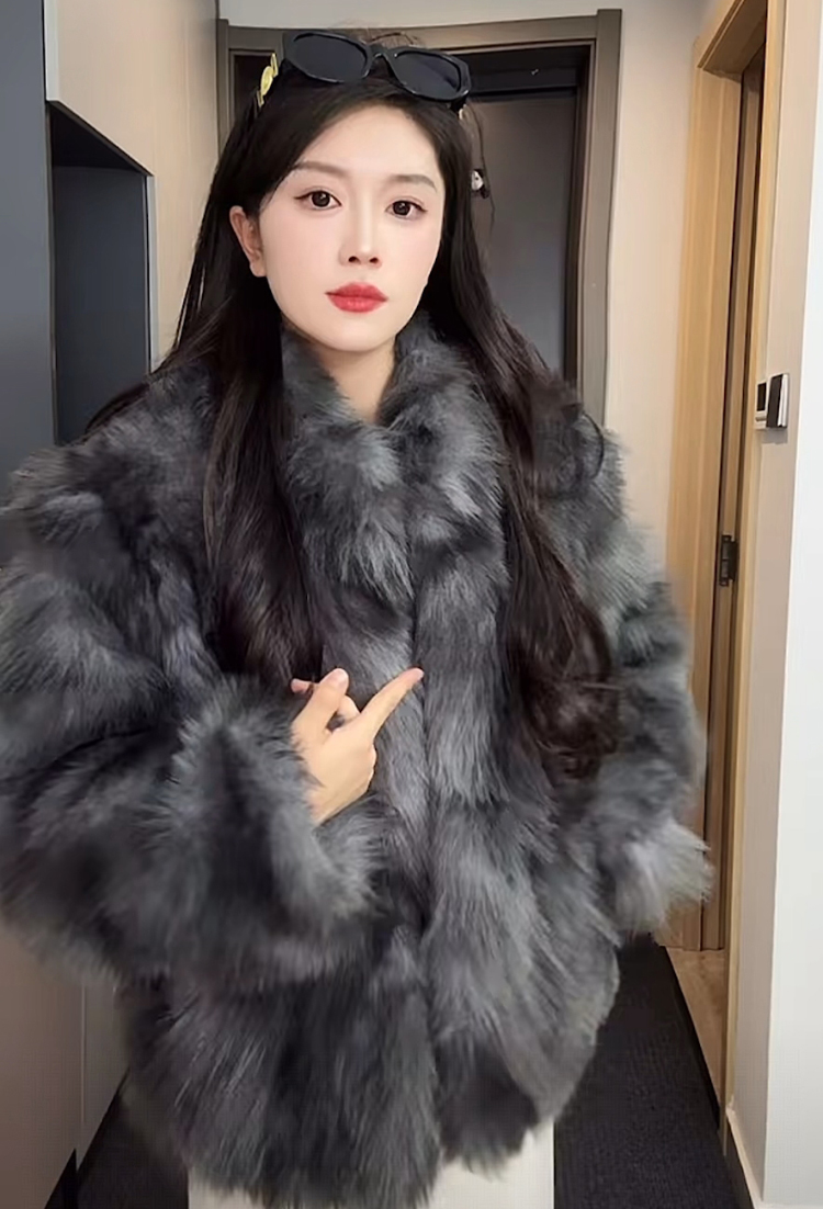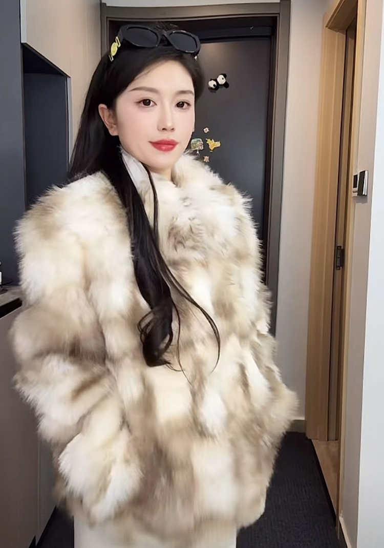 >> 环保狐狸毛皮草女冬季新款双色高级感气质短款加厚保暖仿毛毛外套