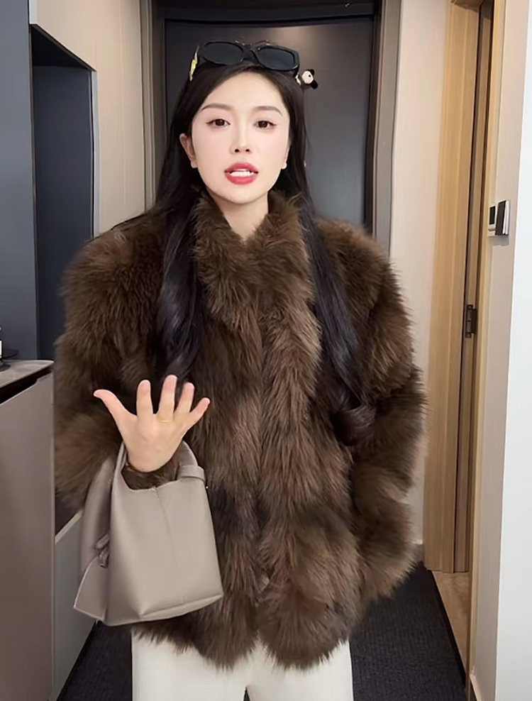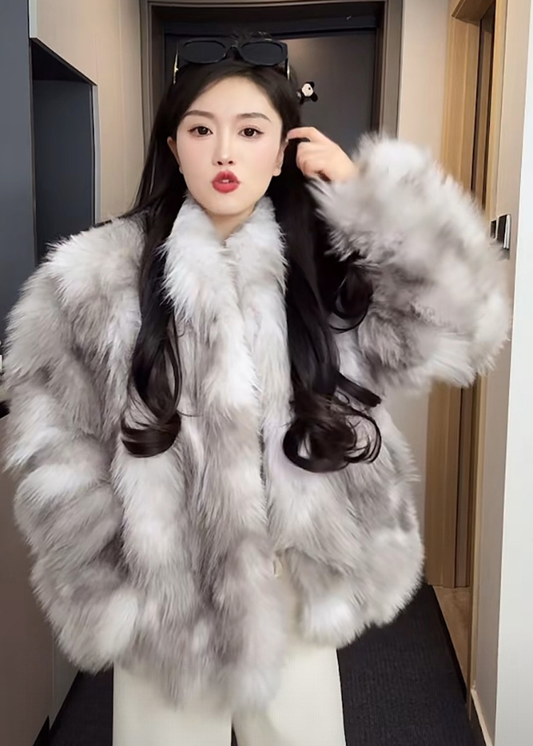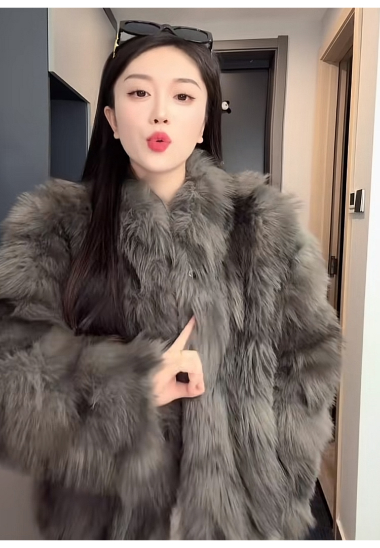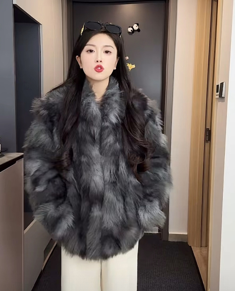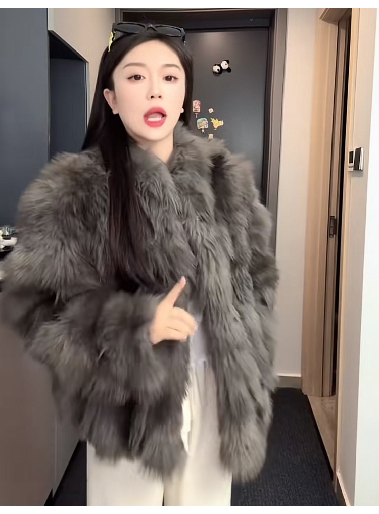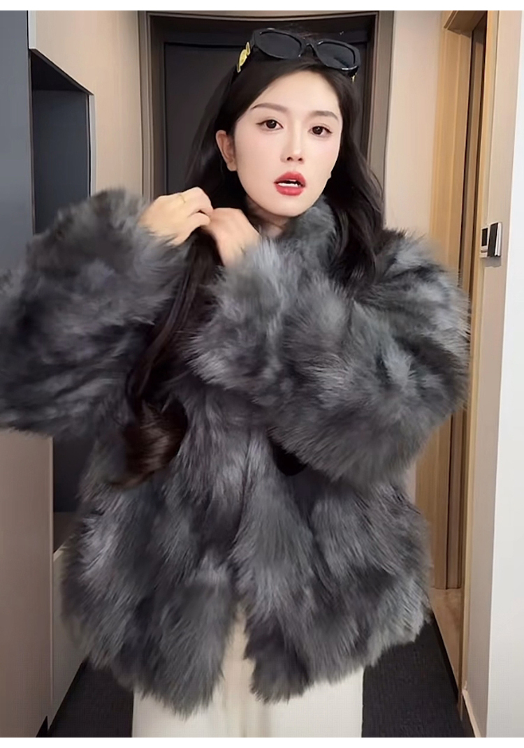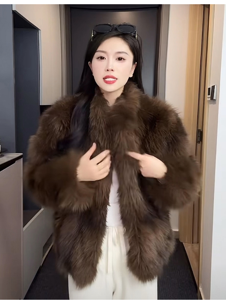 >> 环保狐狸毛皮草女冬季新款双色高级感气质短款加厚保暖仿毛毛外套