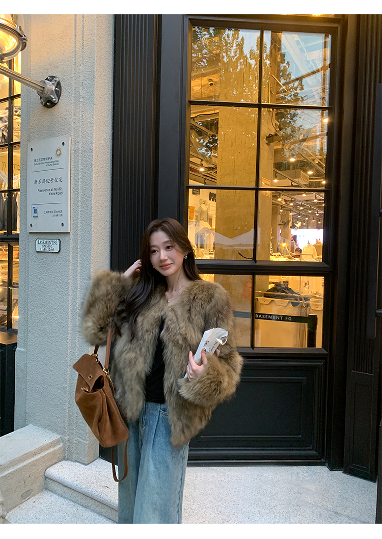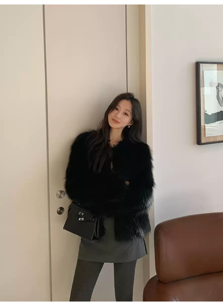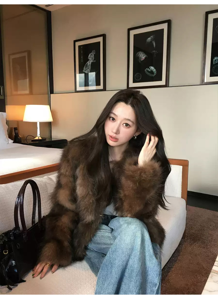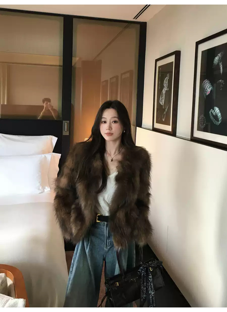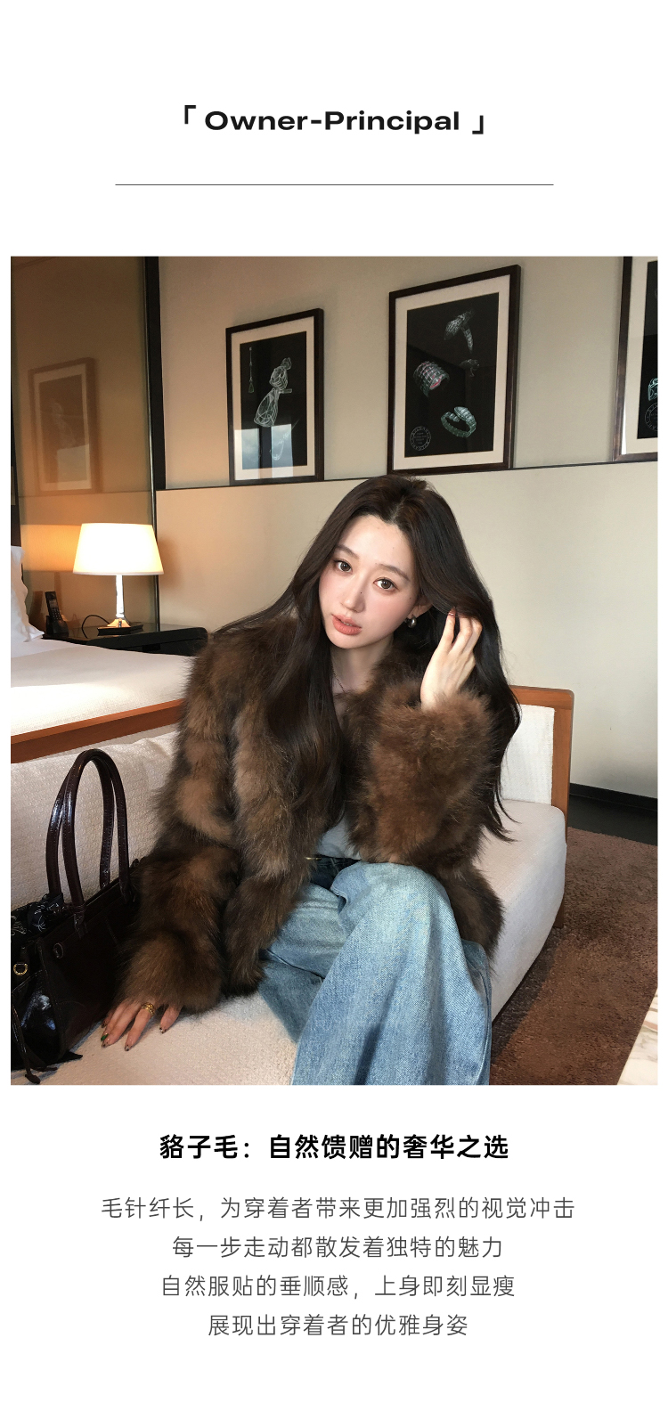 >> 皮草 万年中古 貉子毛皮草大衣女短款秋冬季显瘦毛毛外套女