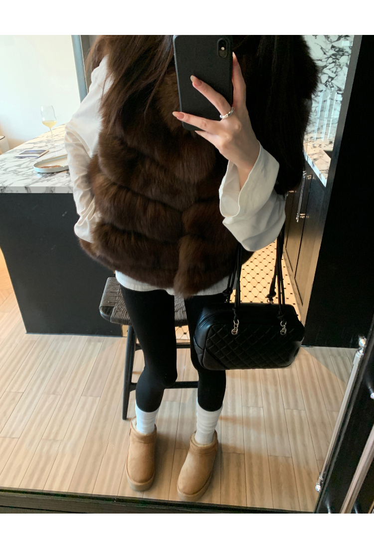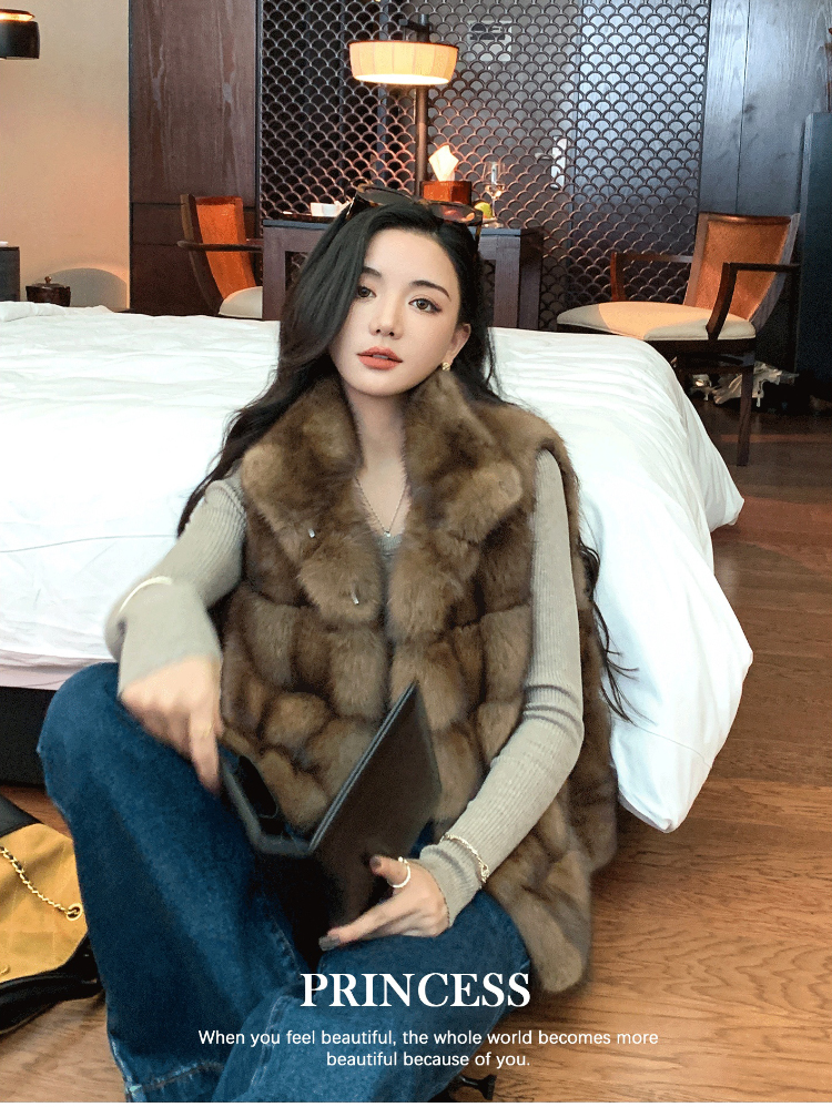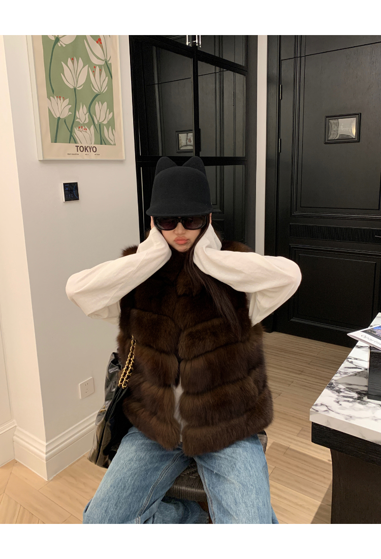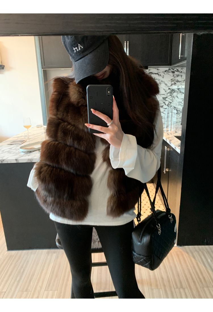 >> 新款毛茸茸仿皮草时尚洋气复古仿貂毛百搭气质女马甲背心外套