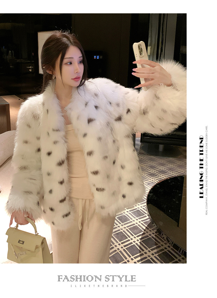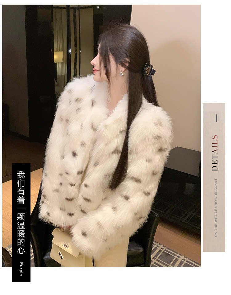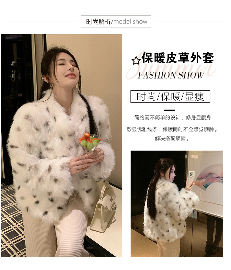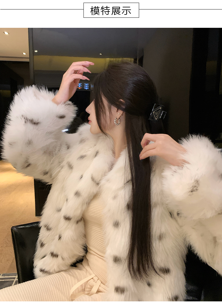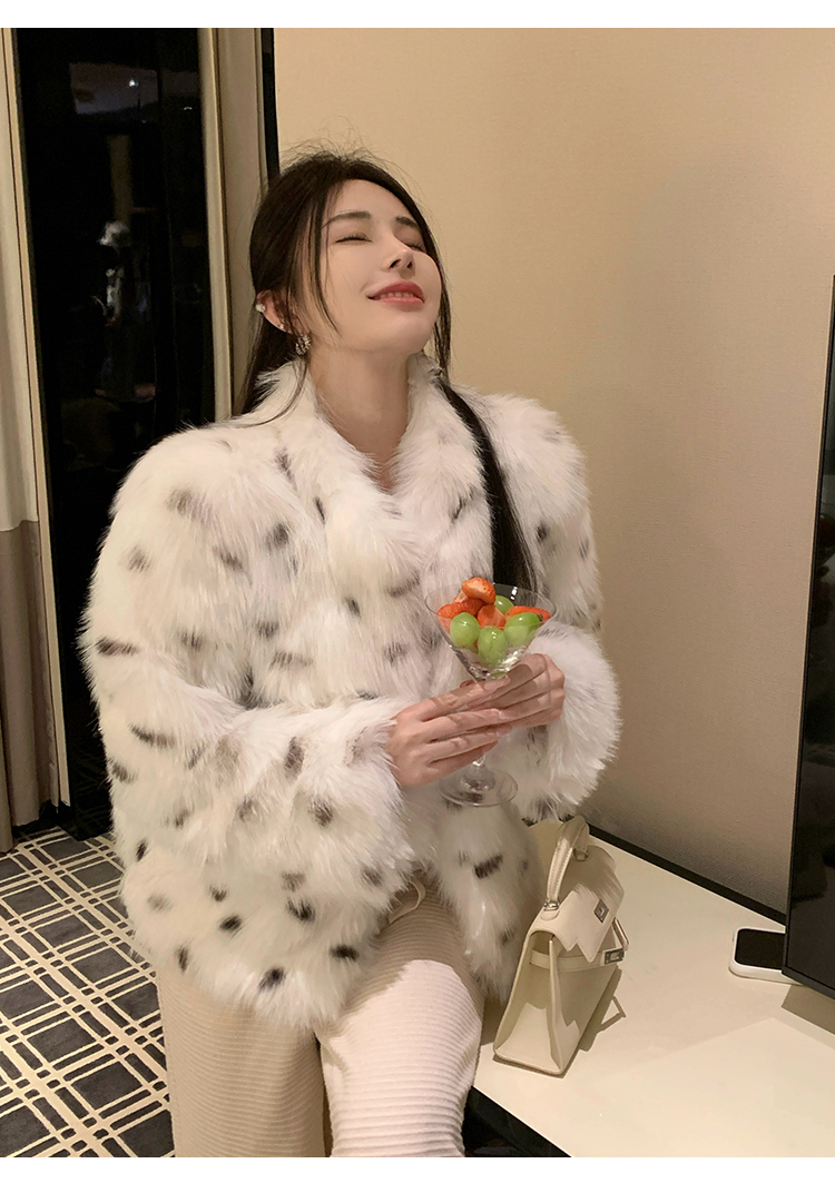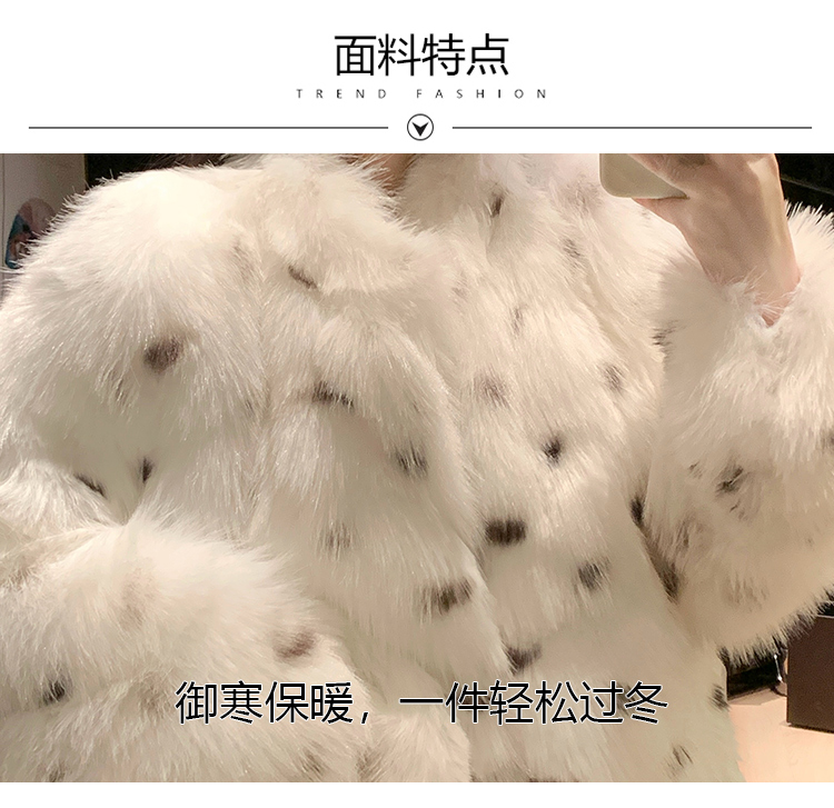 >> 实拍韩版环保皮草翻领仿狐狸毛重工豹纹皮草外套新款女毛毛年轻款