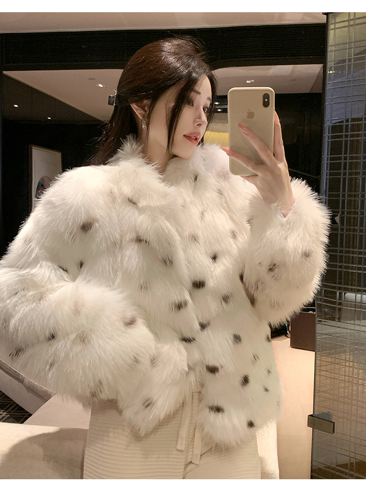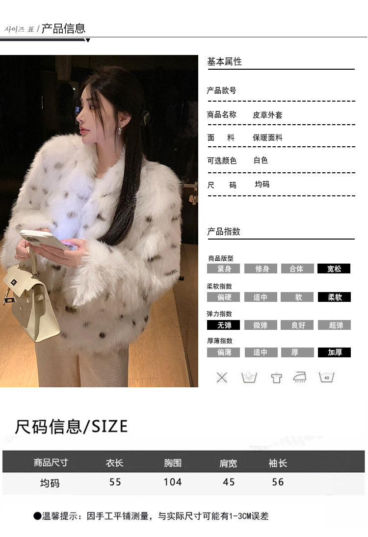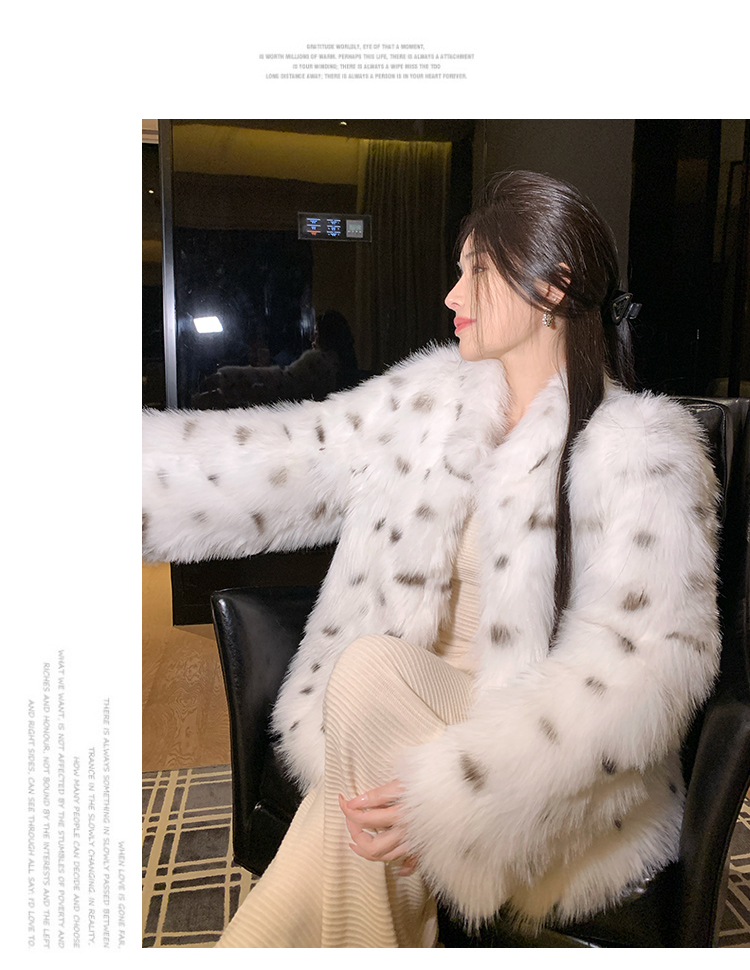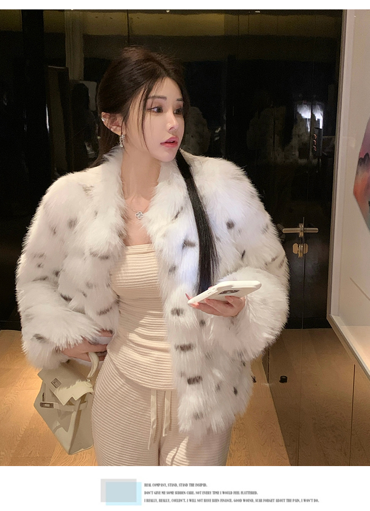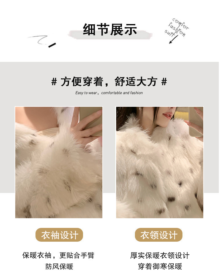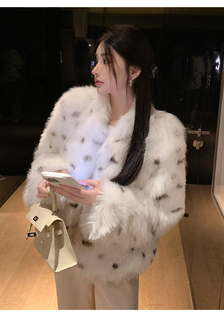 >> 实拍韩版环保皮草翻领仿狐狸毛重工豹纹皮草外套新款女毛毛年轻款