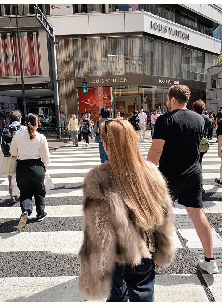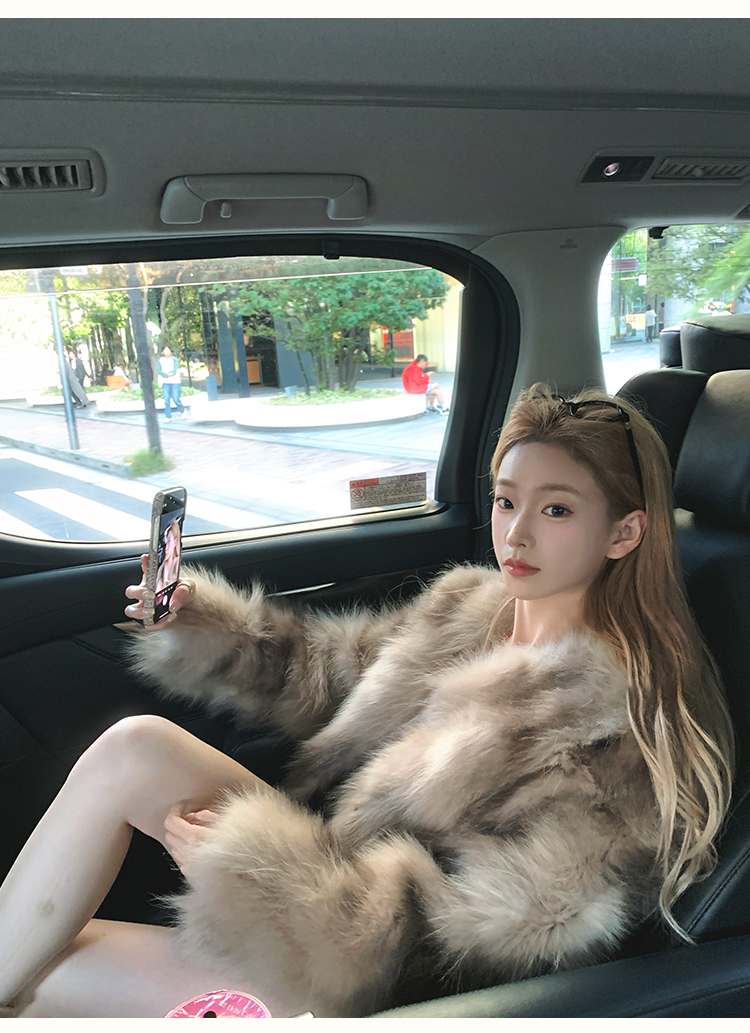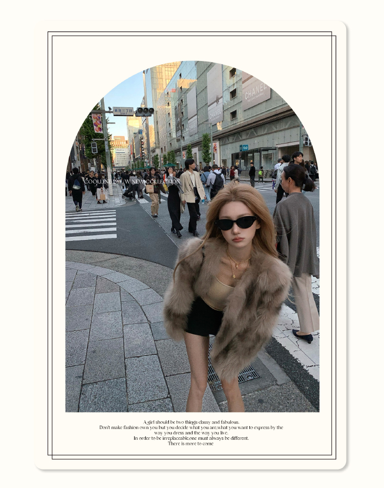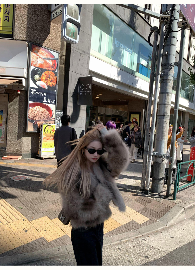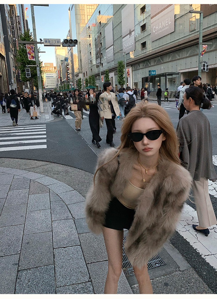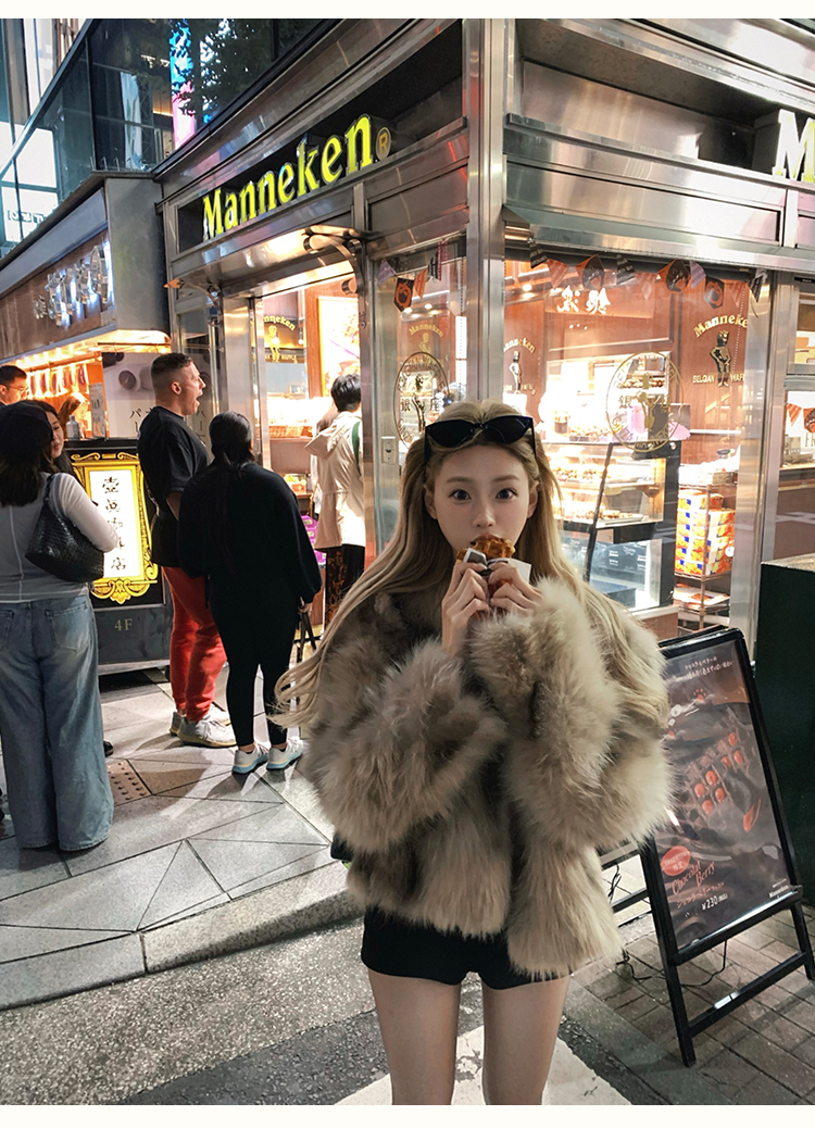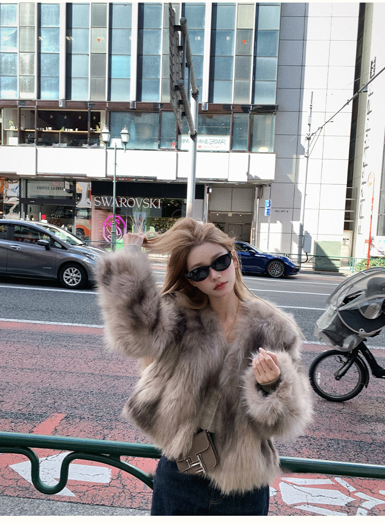 >> 实拍韩版环保皮草翻领仿狐狸毛重工豹纹皮草外套新款女毛毛年轻款