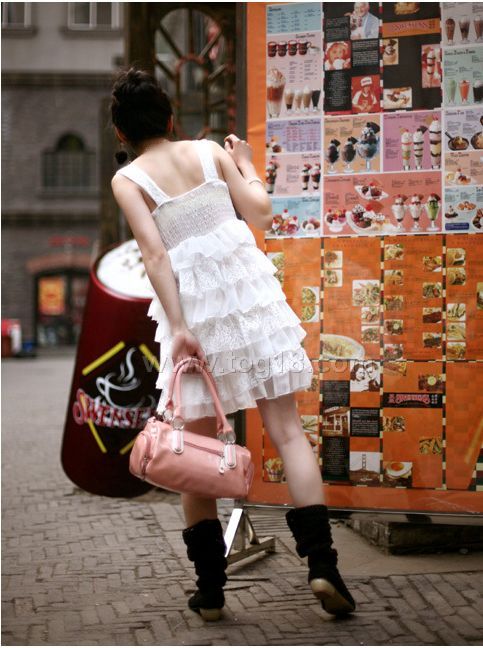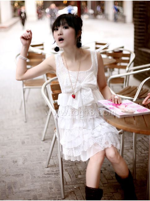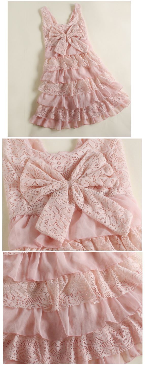 甜美公主大蝴蝶結層層雪紡蕾絲蛋糕裙