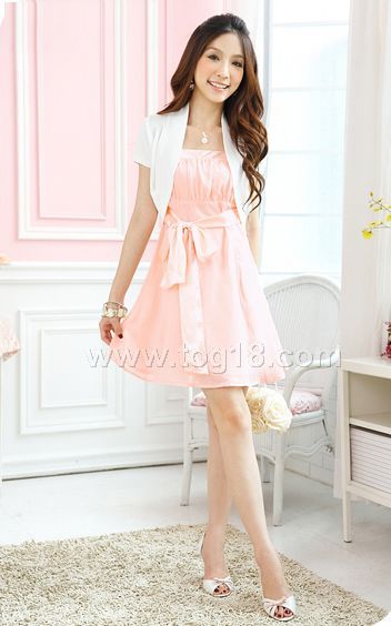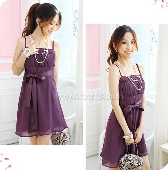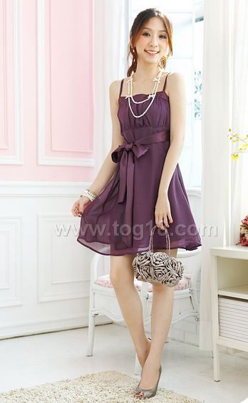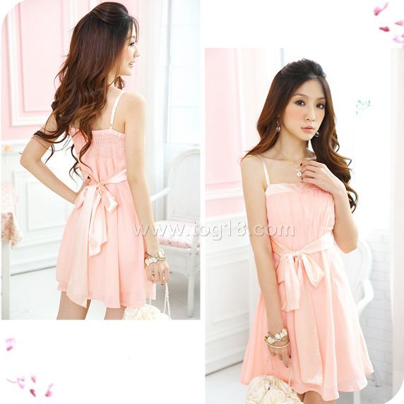 浪漫風潮小禮服☆腰緞帶細肩雪紡洋裝