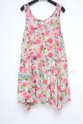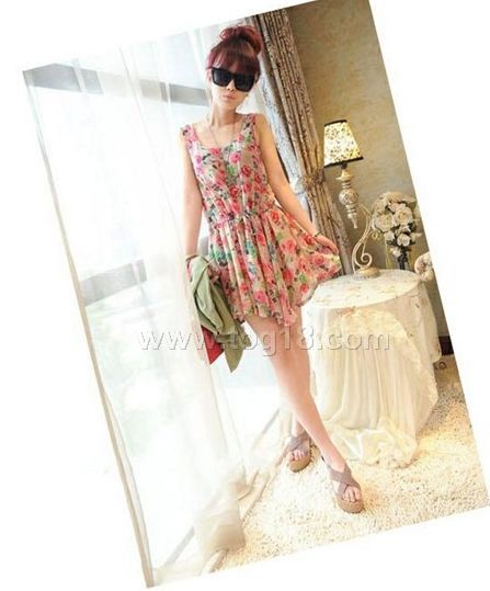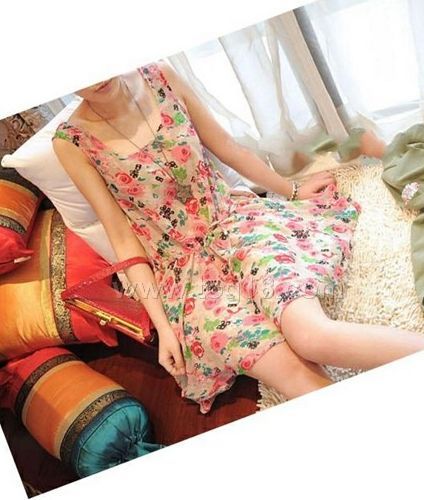 韓版新款 絢麗色彩 雪紡背心連衣裙
