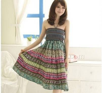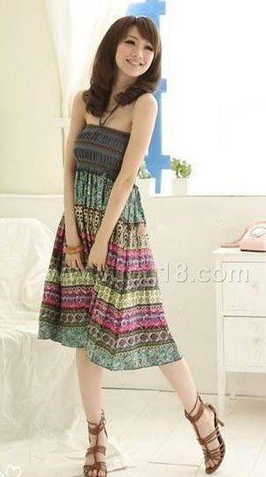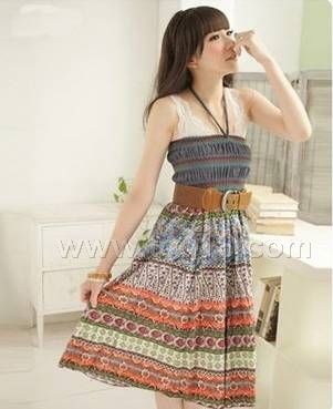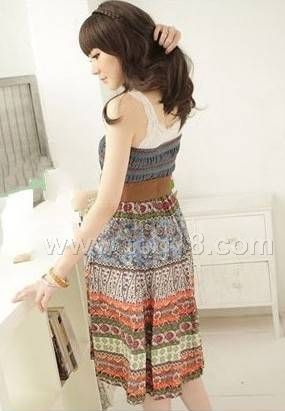 波西米亞長裙系列 繞脖民族風仿牛仔兩穿裙