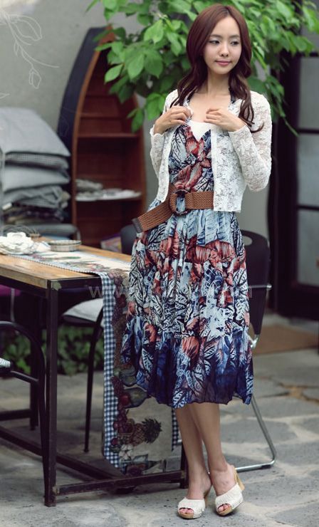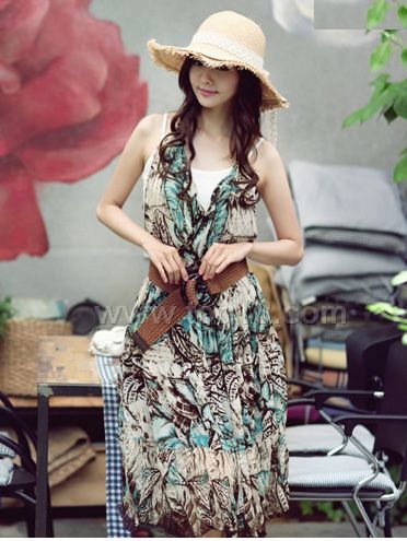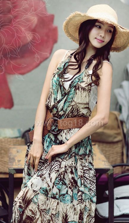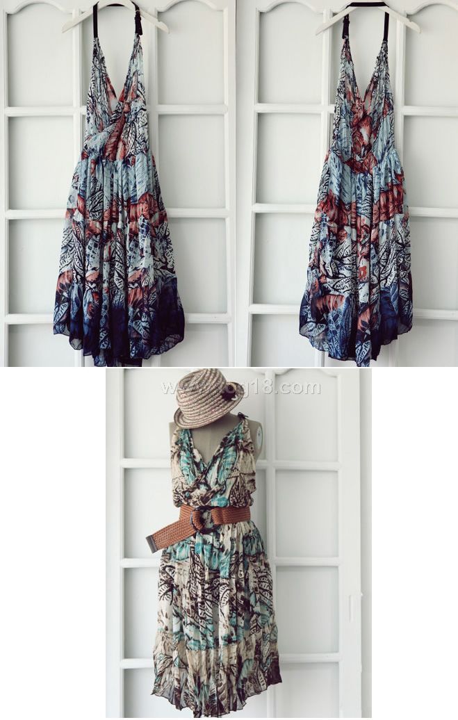 款式說明:輕盈的質感,人棉活性印花工藝,復古浪漫的花色.時尚的掛頸式背心裙,美麗的園田風格,飄逸迷人!!配腰帶哦~~