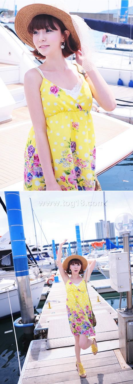 款式說明:浪漫的花朵吊帶裙,夏日清新的少女風.精美的定位印花工藝,立體感花朵婉如花仙子一般.圖案花色與圖片完全一致,毫無色差,夏日少女們人手必備的必殺品.