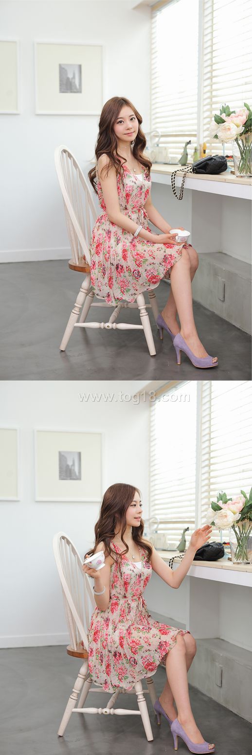 款式說明:特價跑量款,簡潔的花朵雪紡裙,百搭的褶皺設計.下擺波浪圈卷邊,均碼尺寸,胖瘦MM均可穿的連衣裙.
