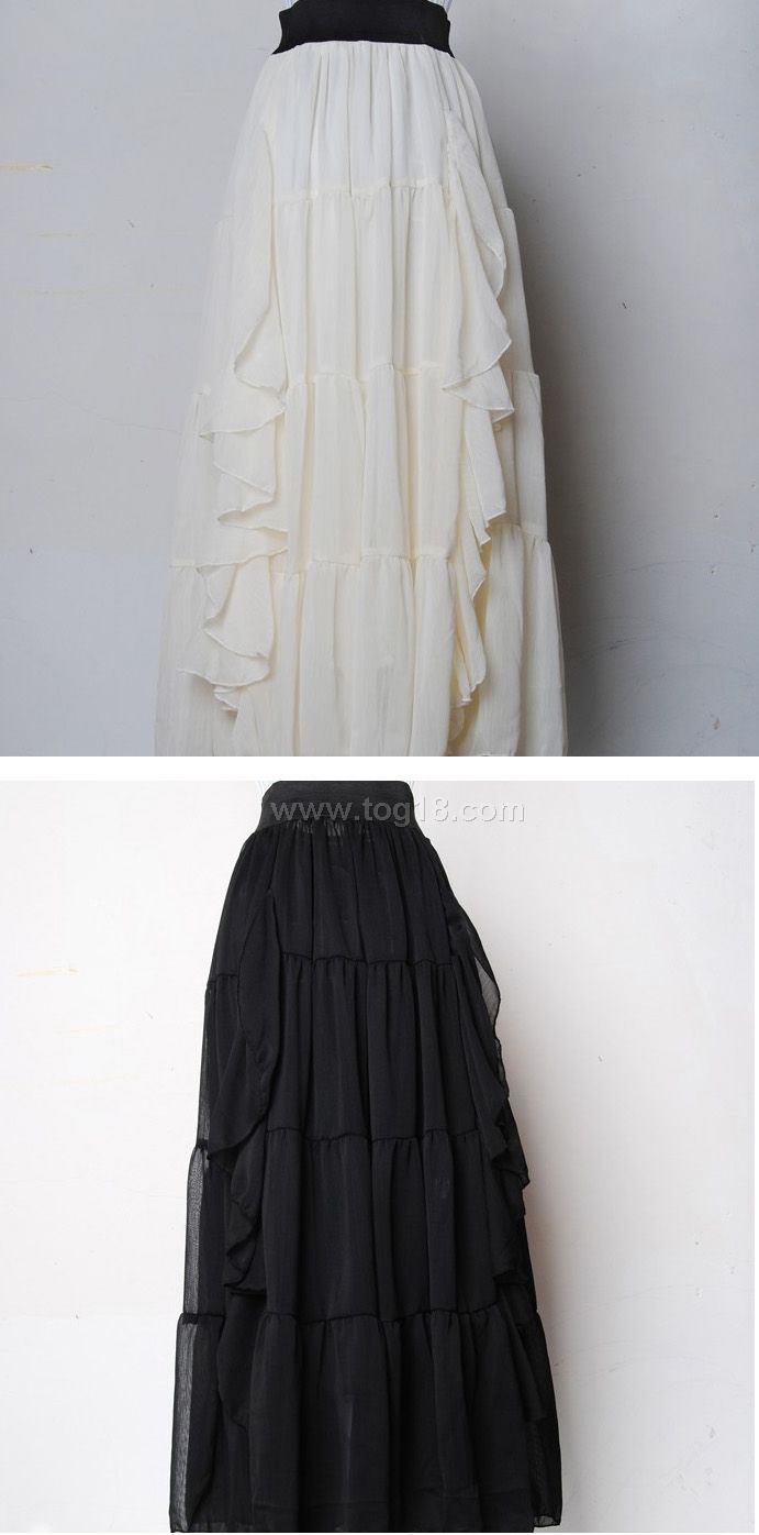 波西米亞長裙荷葉邊雪紡長裙米白色蓬蓬半身裙