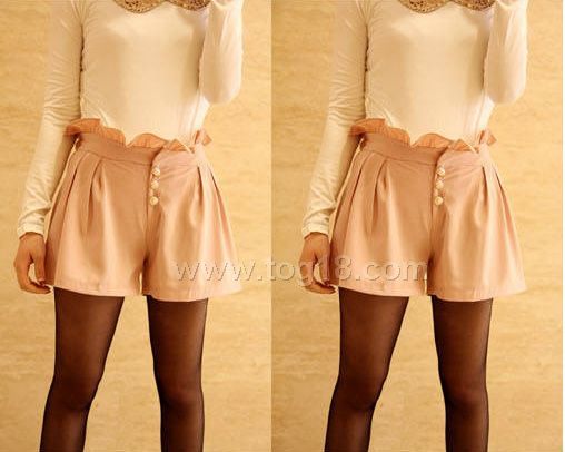 精緻木耳邊金屬扣高腰短褲