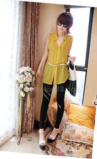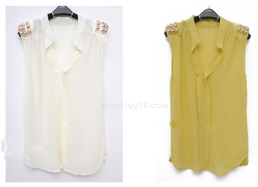 百搭一襲亮鑽肩雪紡長衫(無腰帶)
