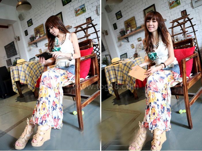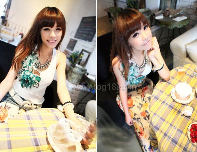 隨便搭一件串花背心T,就美到不行。