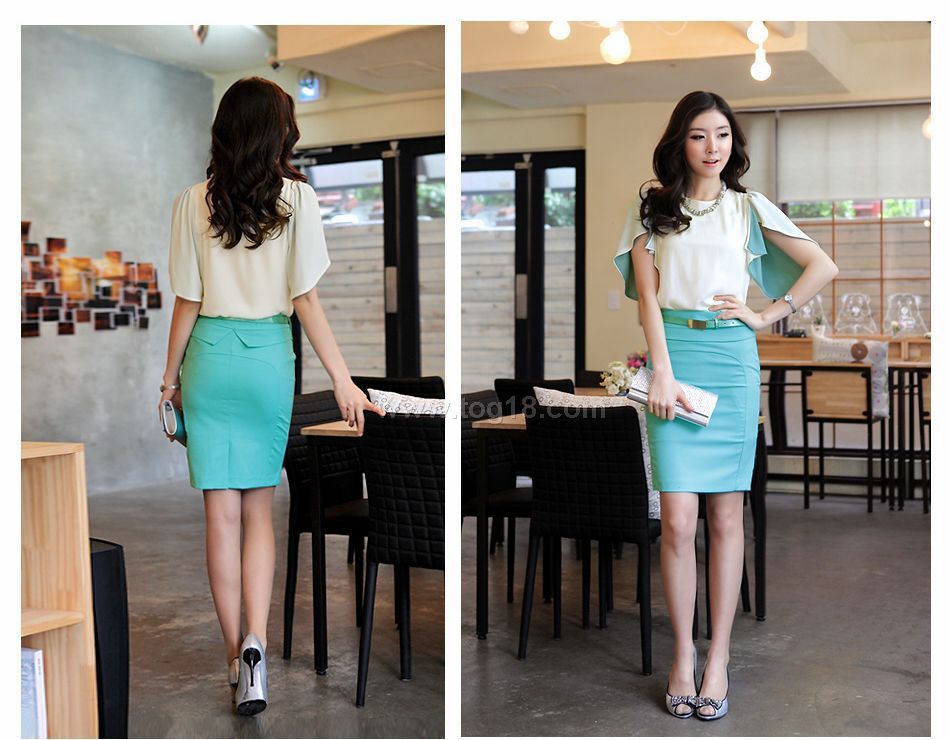款式說明:一款OL氣質的高貴套裙,上衣與下身裙可分開搭配,同色系的上下組合,色彩配搭得絕妙完美,上衣的袖型造型獨特.雙層剪栽.面料質感垂墜細膩.下身裙帶彈力,整體效果高貴逼人,OL風精緻女人的最愛.