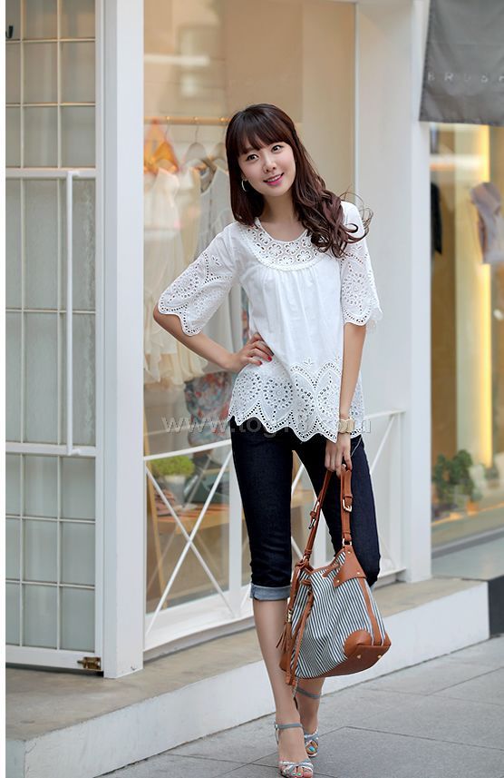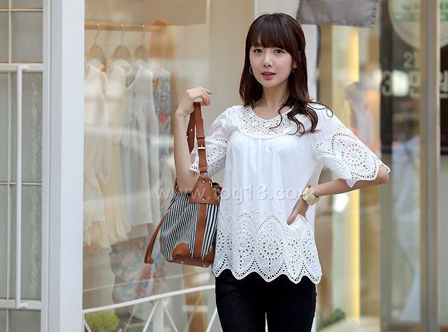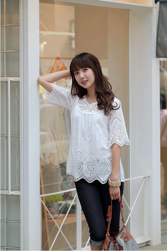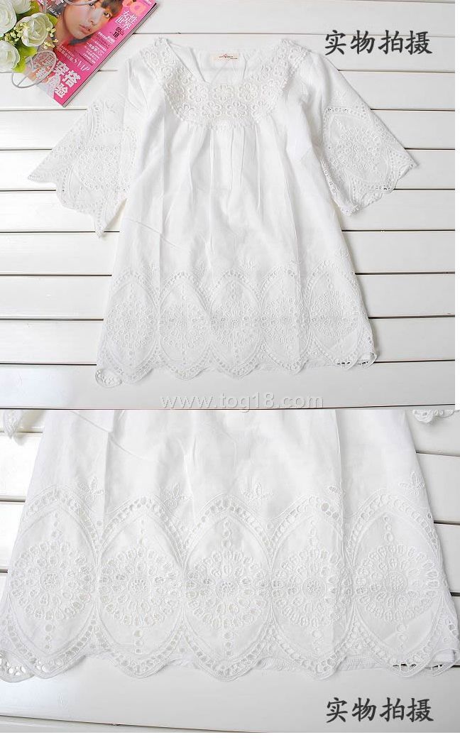 款式說明:簡潔大方的白色系,時下最流行的繡花系列,純棉質材,夏日穿上舒適涼爽,很淑女而休閒簡潔款式!!