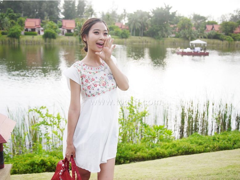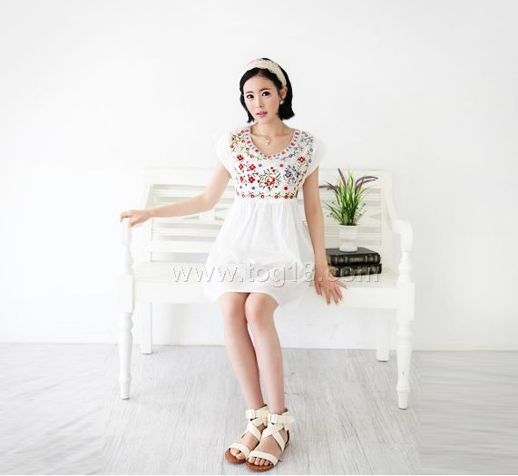 款式說明:簡潔的淑女風.民族風情的彩色繡花圖案,均碼設計,可當襯衫或裙穿,夏日混搭的一款簡潔淑女襯衫裙.