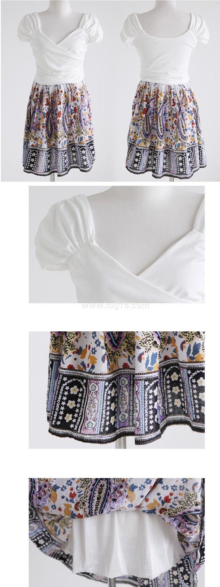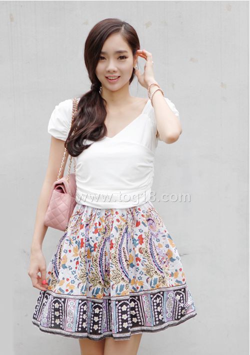 款式說明:流行的公主風,上身面料採用彈力針織棉.下身面料為純棉印花工藝,均碼尺寸,實物圖案花色與圖片完全一樣,領型與肩袖設計獨特.上身面料富超彈力.夏日淑女風的好收藏~~